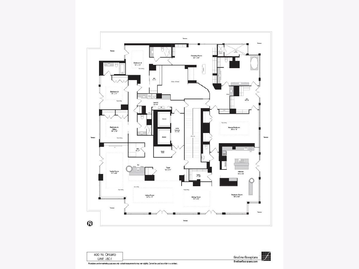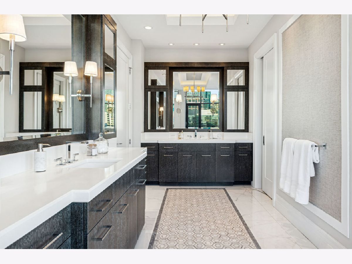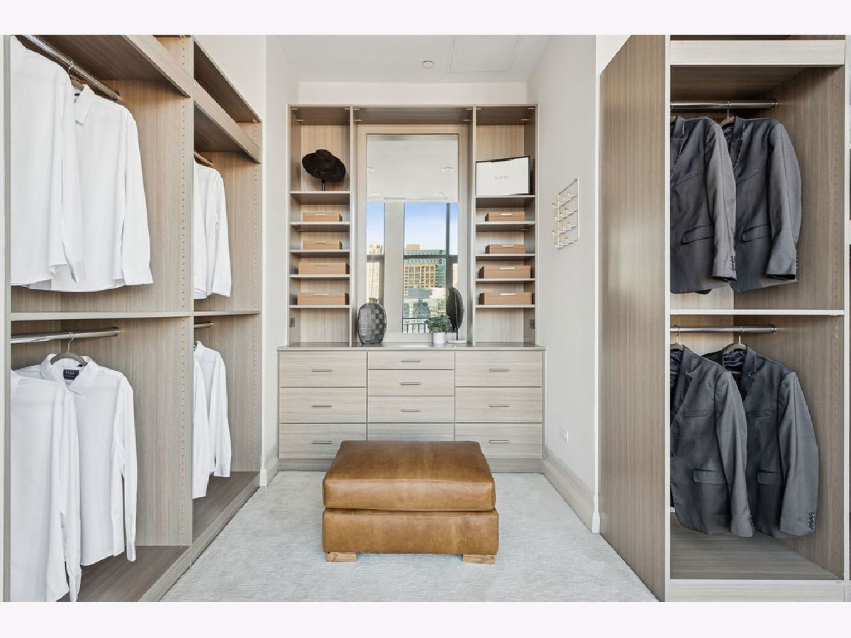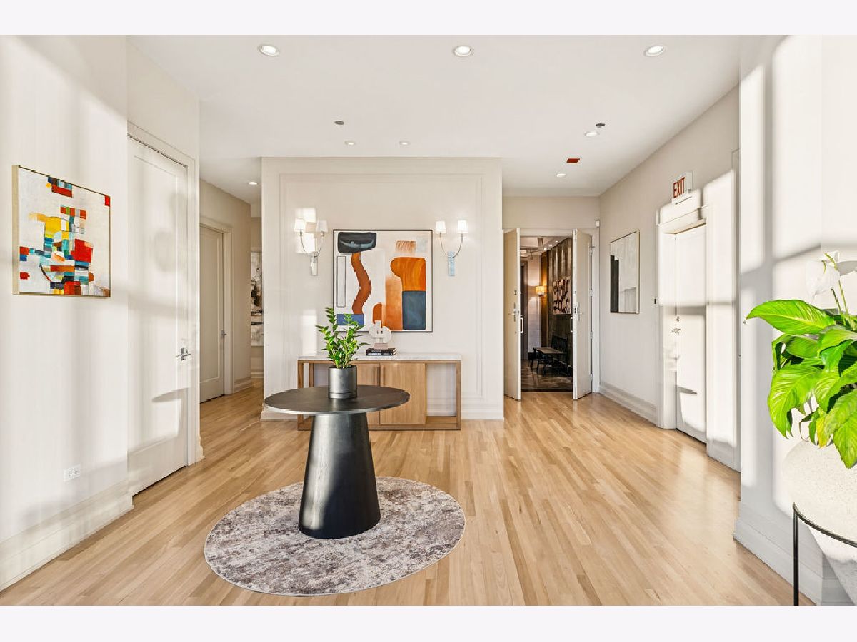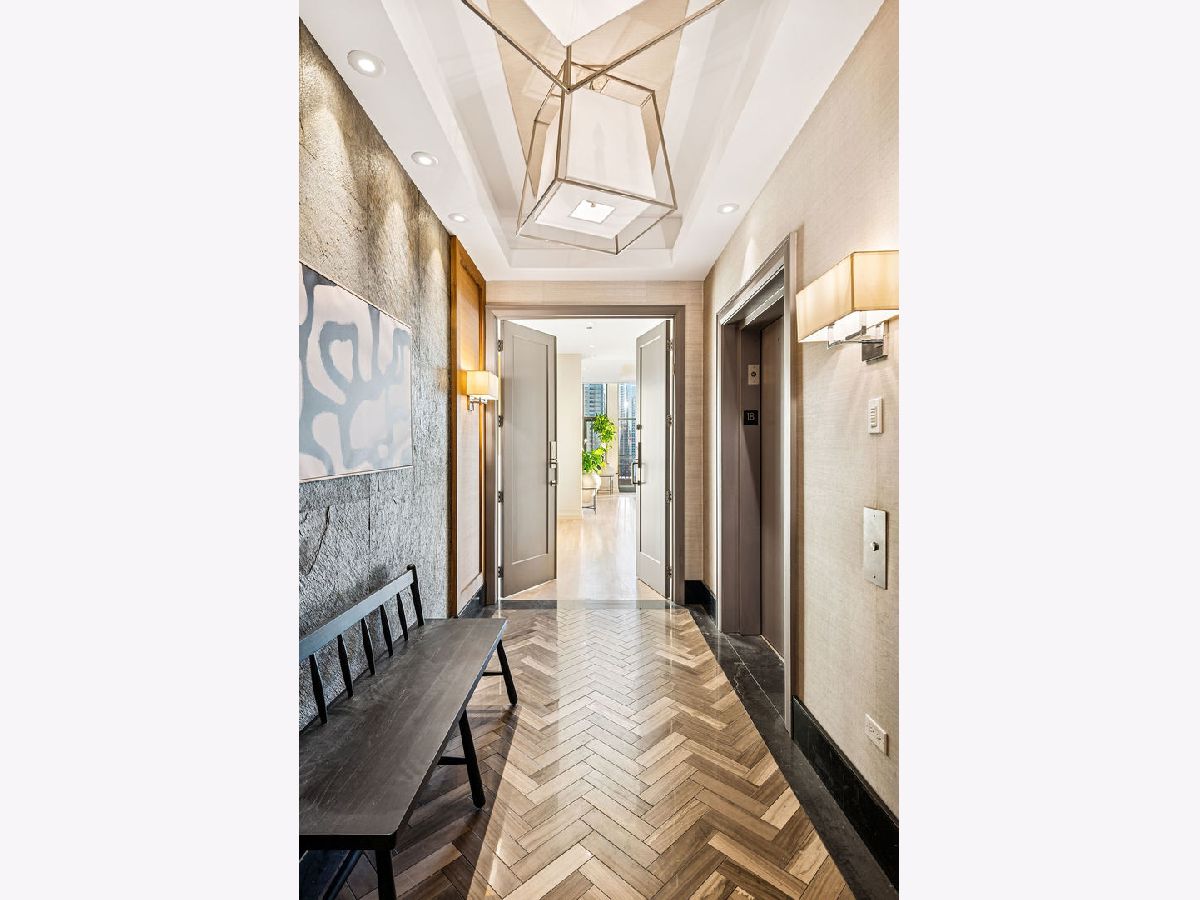 Fully furnished, turn-key full-floor penthouse in the heart of River North. Occupying the entire 18th floor of Gallery 400, this 6,800 SF, 4BD/4BA+1HB residence offers private elevator entry, sweeping open living spaces, and 2,400 SF of wraparound terrace with 360 skyline views. A gallery-style reception hall with herringbone hardwood floors leads to an expansive great room with coffered ceilings, design-forward lighting, and a living area anchored by a low-profile gas fireplace. The chef's kitchen features an oversized island with dine-up seating, seamless backsplash, custom cabinetry, and top-tier appliances. A chic wet bar with counter seating, glass display shelves, and wine fridge enhances the home's exceptional entertaining flow. World-class fixtures and finishes are showcased throughout. The light-filled primary suite includes framed designer wallcoverings, a drop chandelier, two custom walk-in closets (one with styling/accessories island, one with an owner's suite wet bar), and a five-star-caliber bath with dual vanities, soaking tub, walk-in shower, and steam closet. A sizable in-unit laundry room adds convenience. Nearly every room opens directly to the private terrace for rare single-level indoor/outdoor living. Building amenities include 24-hour door staff, fitness center, on-site management, bike storage, pet-friendly living, and two heated garage spaces. Steps to River North dining, galleries, shopping, East Bank Club, BIAN, parks, transit, and the riverfront.