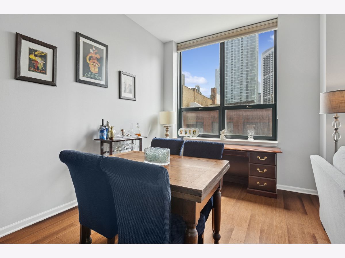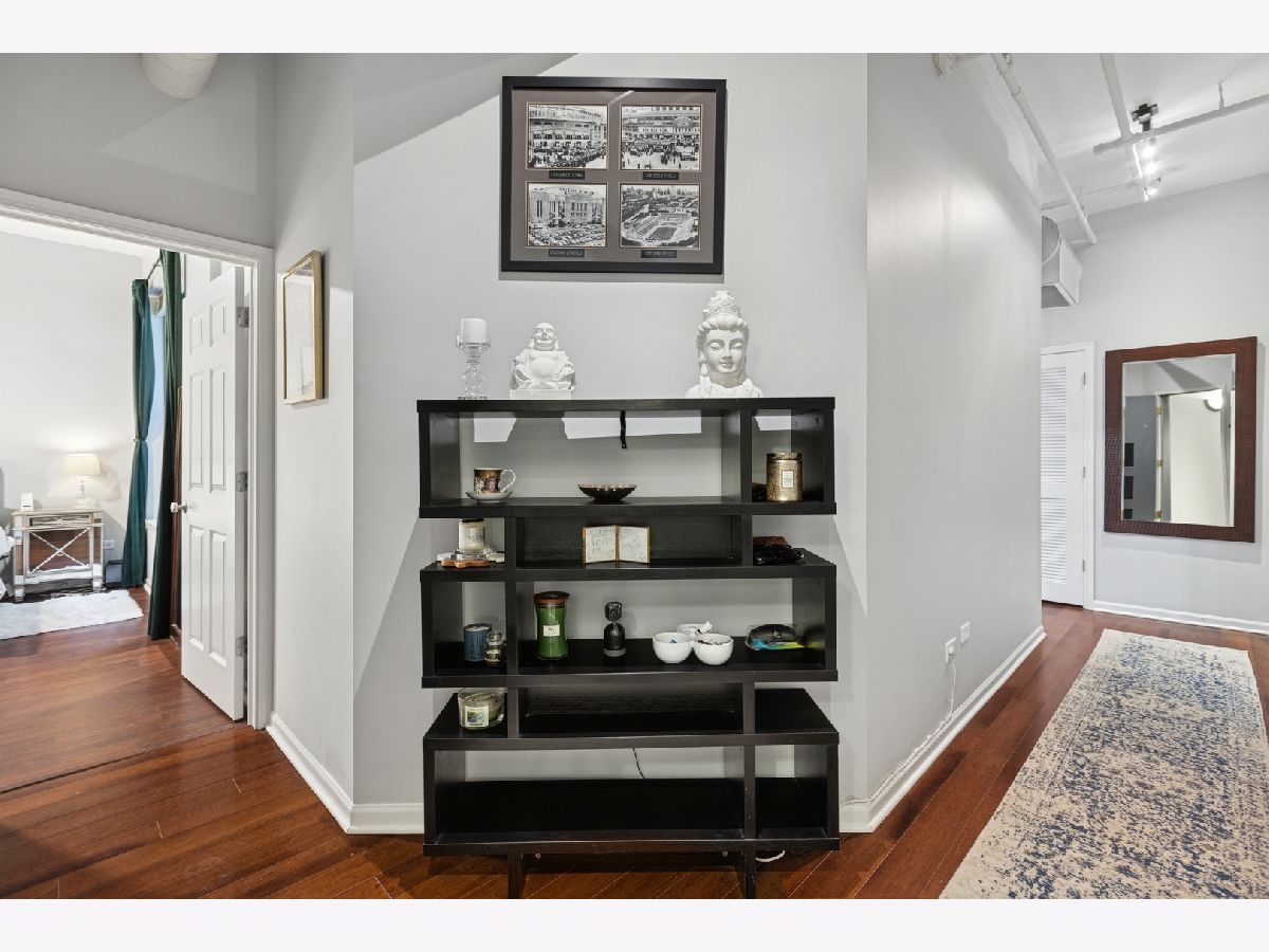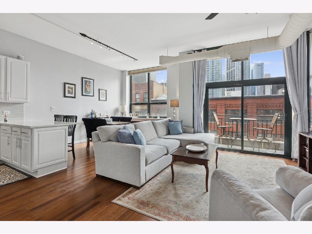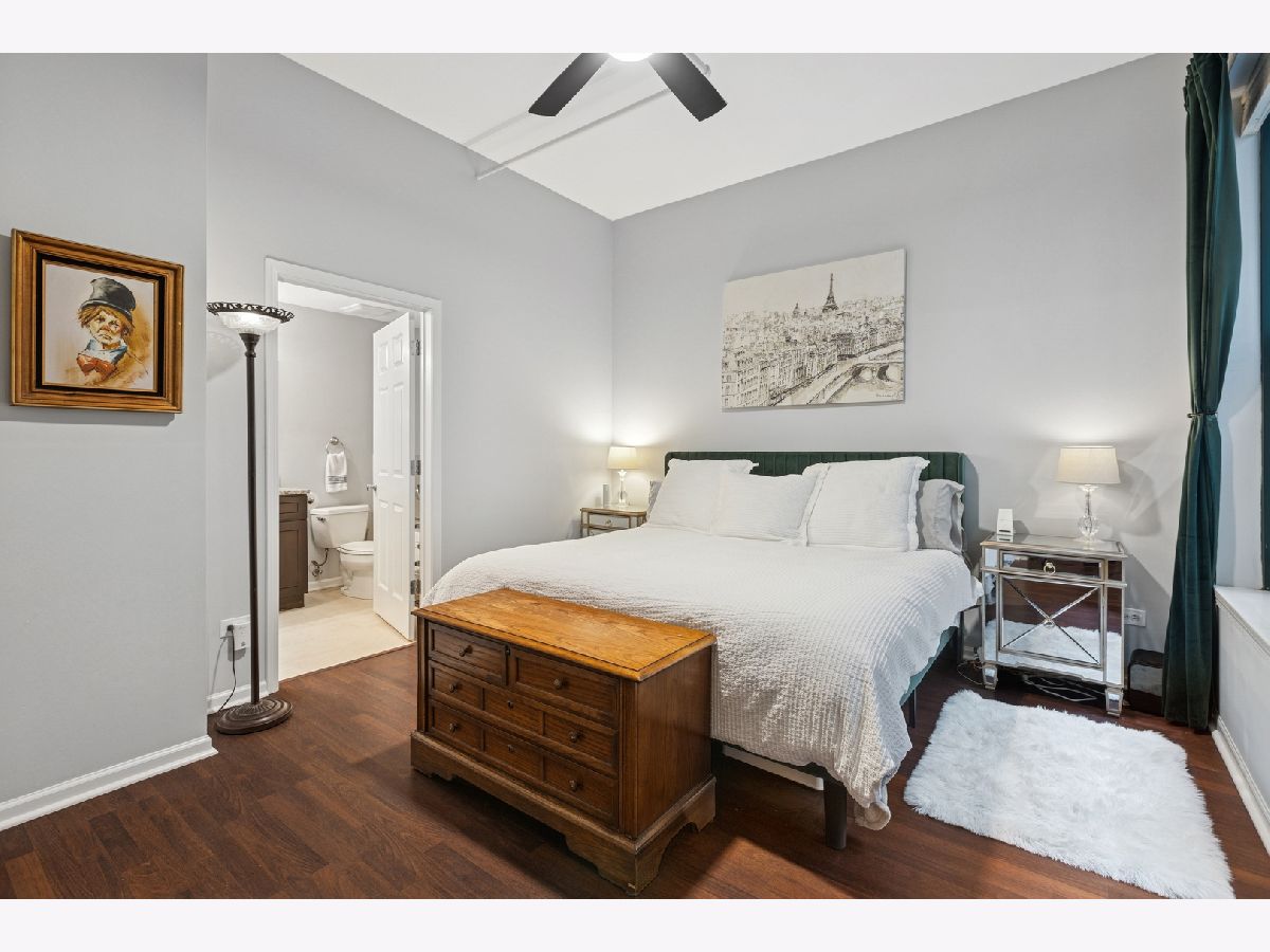 One of the largest floor plans at Gallery 400, this extra wide, two bedroom/ two bathroom residence offers stylish, modern, open concept living. Enjoy 11-foot ceilings, hardwood floors, and abundant natural light from south facing oversized windows. The spacious layout includes a private balcony and a contemporary kitchen with stainless steel appliances, granite countertops, breakfast bar, and separate dining area. Both bedrooms are fully enclosed for privacy, including a generous primary suite featuring a massive California walk-in closet and a luxurious en-suite bath with granite counters, dual vanity, soaking tub, and separate shower. Additional highlights include in-unit laundry, ample storage and an available deeded parking space. This home is located in a full service building with 24-hour door staff, fitness center, and on-site management. Steps to top tier dining, shopping, nightlife, the East Bank Club, Montgomery Ward Park, and easy access to public transit and highways.