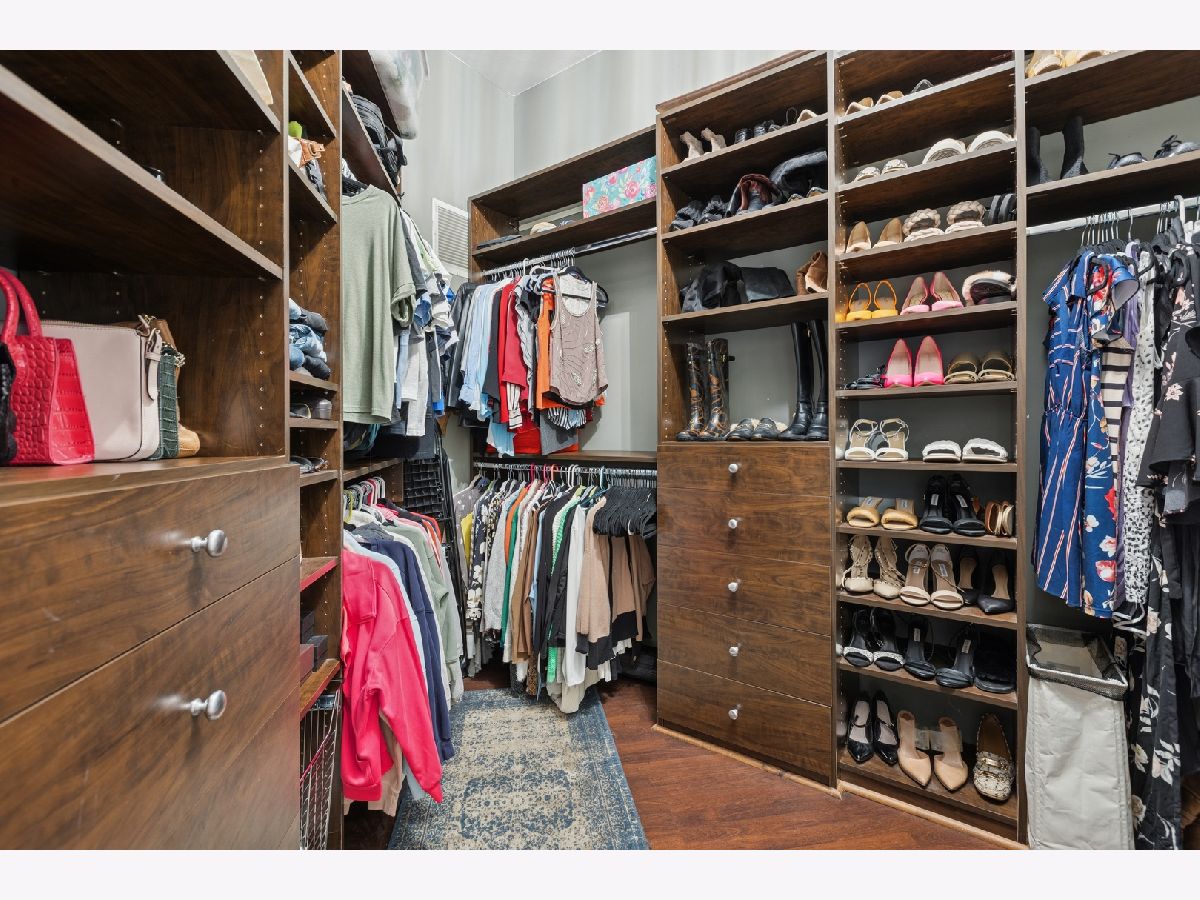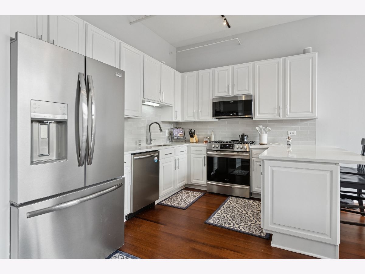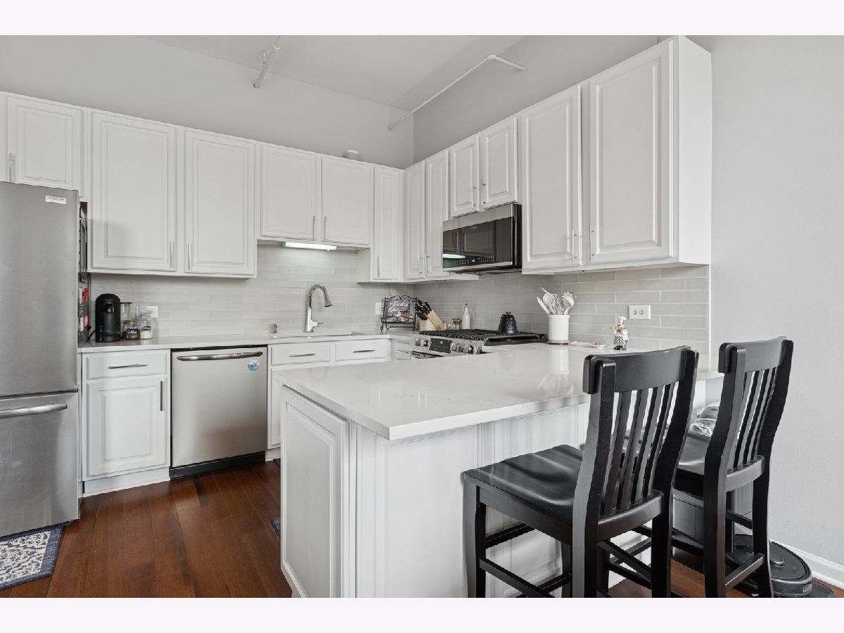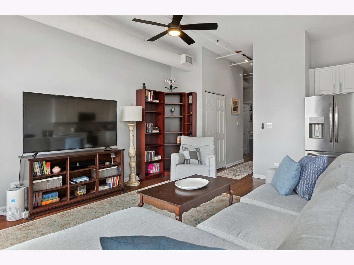 One of the largest floor plans at Gallery 400, this extra wide, two bedroom/ two bathroom residence offers stylish, modern, open concept living. Enjoy 11-foot ceilings, hardwood floors, and abundant natural light from south facing oversized windows. The spacious layout includes a private balcony and a contemporary kitchen with stainless steel appliances, granite countertops, breakfast bar, and separate dining area. Both bedrooms are fully enclosed for privacy, including a generous primary suite featuring a massive California walk-in closet and a luxurious en-suite bath with granite counters, dual vanity, soaking tub, and separate shower. Additional highlights include in-unit laundry, ample storage and an available deeded parking space. This home is located in a full service building with 24-hour door staff, fitness center, and on-site management. Steps to top tier dining, shopping, nightlife, the East Bank Club, Montgomery Ward Park, and easy access to public transit and highways.