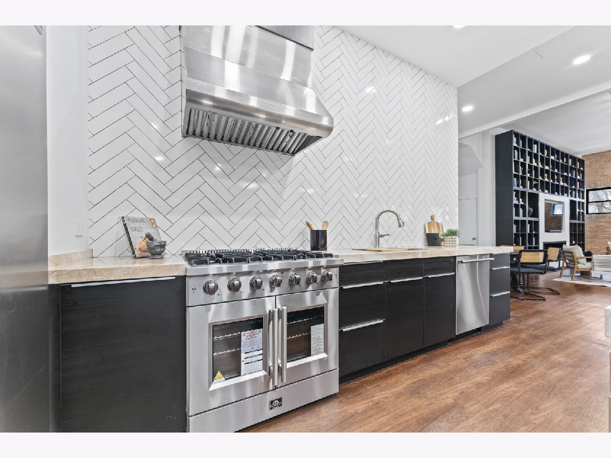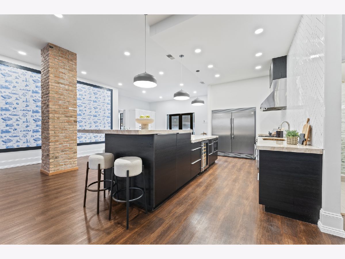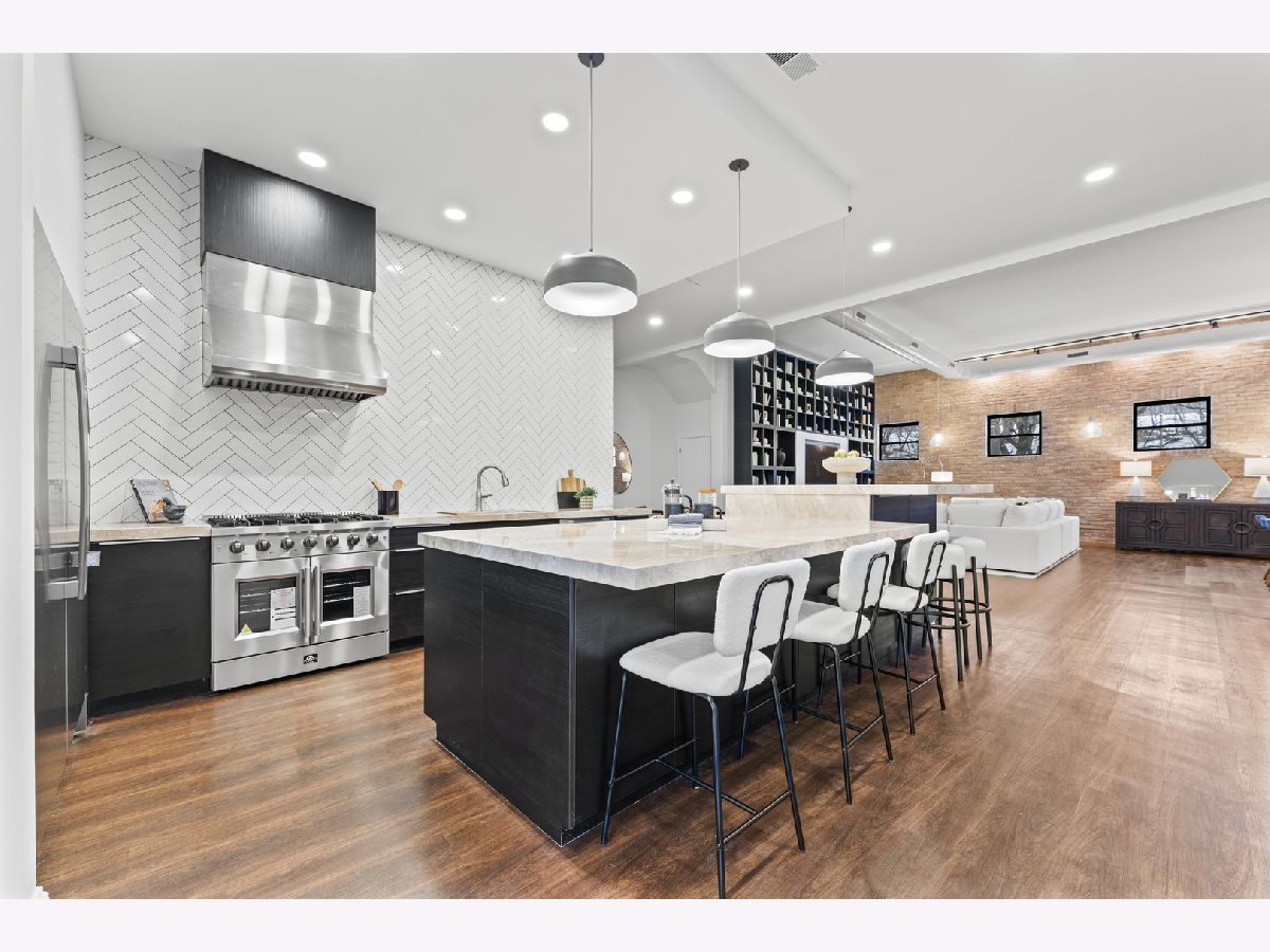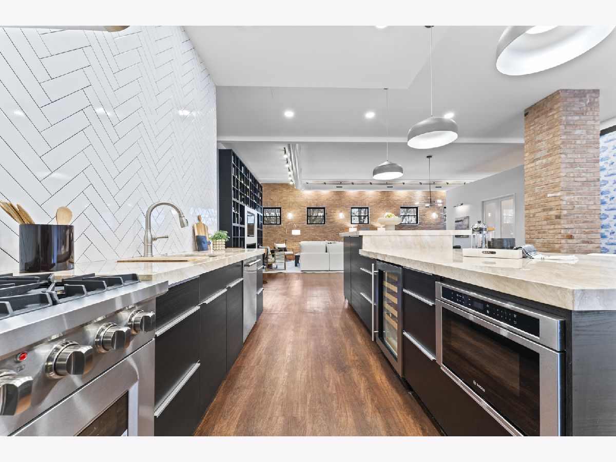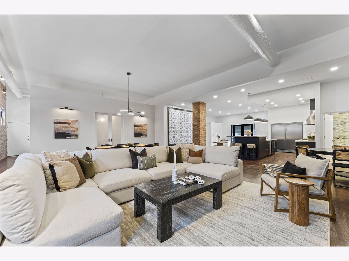 Masterfully reimagined, this statement-making loft sits at the crossroads of two of Chicago's most electric neighborhoods; footsteps from the historic Grand Avenue dining scene and minutes from the energy of Fulton Market. Spanning over 2,600 square feet, the home lives on a truly grand scale with soaring 13ft ceilings, exposed brick walls, and expansive open concept living spaces that feel more like a private gallery than a residence. The living and dining areas are massive yet intentionally designed for unforgettable entertaining, oversized furniture and art forward living. Natural light pours through oversized windows, amplifying the loft's raw character while keeping the aesthetic polished and refined. Anchoring the space is a chef caliber kitchen featuring marble countertops, professional commercial grade appliances, and a dramatic 12ft island with double sided cabinetry; equal parts functional centerpiece and architectural statement. The primary suite delivers true wow factor, highlighted by a spa level bath with a striking 10ft illuminated shower, and a brand new custom walk-in closet complete with its own island, eliminating any compromise on storage or style. This home also includes two gated parking spaces and a private outdoor grilling area, an exceptional luxury in the city. Bold, expansive, and unapologetically cool, this is loft living at its most elevated and rare form.