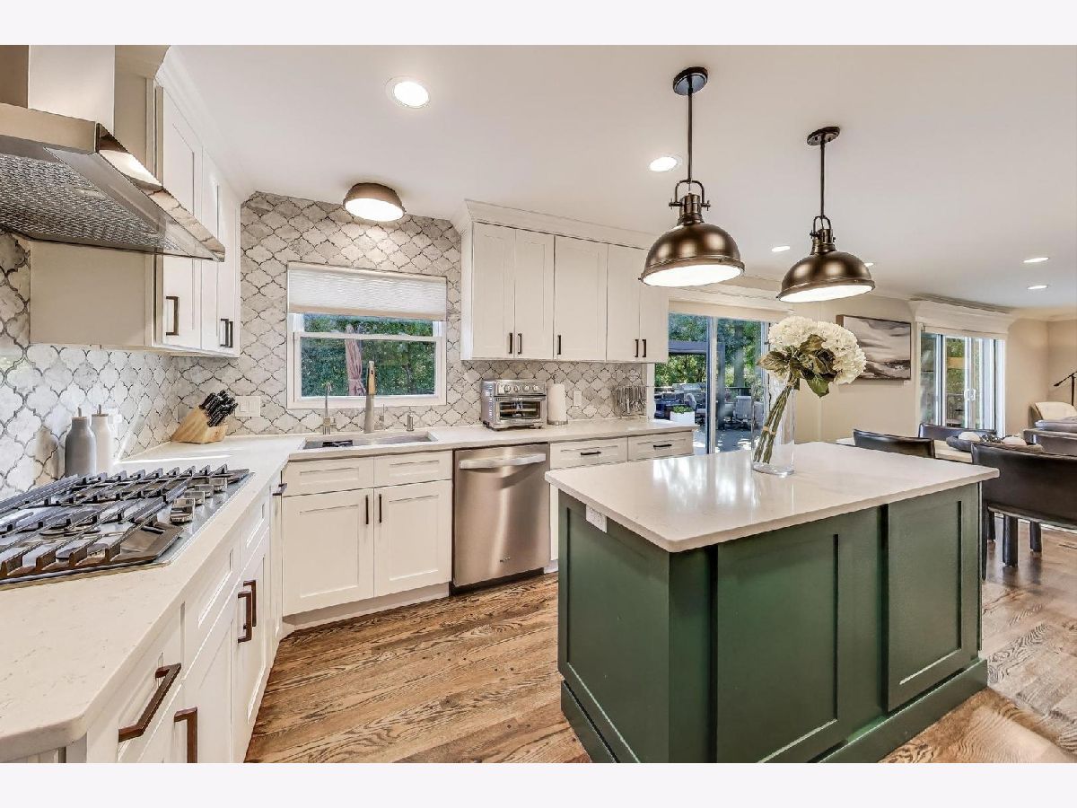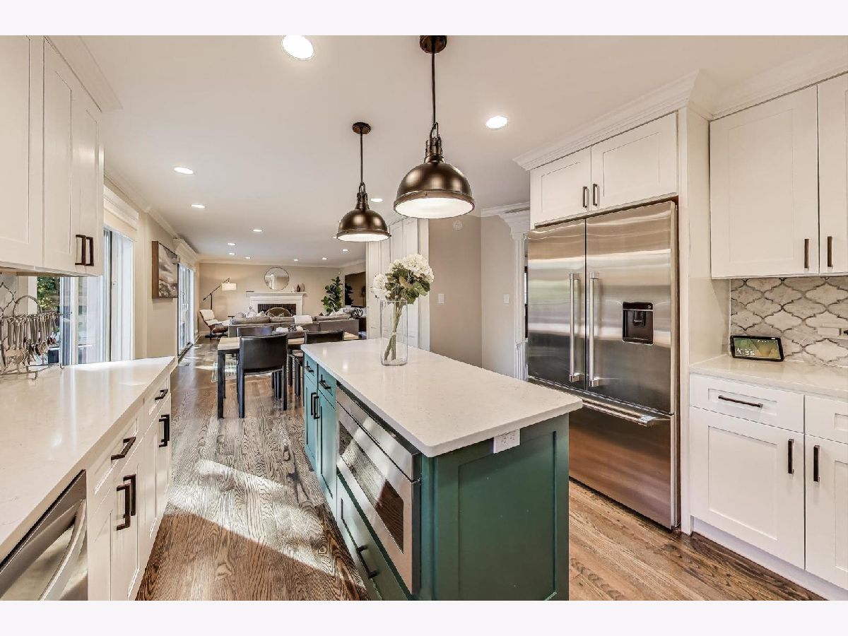 Tucked away on a quiet cul-de-sac, this very elevated, MOVE IN READY home blends everyday comfort with MODERN TECH and STYLISH updates. Fresh landscaping, a new SLEEK FRONT DOOR combined with new OUTDOOR LIGHTING, NEW WINDOWS, and NEW DOWNSPOUTS create timeless, polished, curb appeal. Both inside and out, the entire home is WIRED FOR SMART HOME LIVING -voice-activated and app-enabled for lights, climate, music, and more. Across the entire home, ALL WOOD FLOORS lead you through an easy, flexible layout that shifts from formal to casual in a snap. A newer kitchen shines with LUXURY stainless-steel appliances, a DOUBLE OVEN, ample cabinetry, and a LARGE ISLAND for prep and gathering. Two sets of sliding glass doors open to the backyard for effortless indoor-outdoor flow. The formal living room flows to the dining room which connects to the kitchen, and the cozy family room features a FIREPLACE. There is a true mudroom with laundry facilities, tons of storage, a side entry, and access to the garage, simply keeping everyone's daily life organized. There is also a convenient first-floor half bath which can be accessed from the side door - allowing for easy access from the pool. Upstairs, you'll find FIVE BEDROOMS and THREE FULL BATHROOMS. The serene primary suite offers a large walk-in closet and a new SPA-STYLE BATHROOM with a standing shower, separate soaking tub, dual vanities, and beautiful lighting. Down the hall, an additional suite includes its own generous bath with a ZERO-GRAVITY SHOWER and a large closet-perfect for guests or multigenerational living. The hall bathroom is a modern oasis with beautiful lighting, custom shelving and a combined tub-shower. The remaining bedrooms feature sophisticated decor and fantastic closet space. An entertainers dream appealing to both indoor and outdoor gatherings. The backyard has a NEW COMPOSITE DECK, a fully ELECTRIC PERGOLA, outdoor sink and large grill. The POOL is fully surrounded with a clear glass fence and the yard has a shed to keep all the pool toys and items tucked away. Plus, there is a FULL DOG RUN with grass that is enclosed for your dogs delight. The lower level of the home is made for fun: a true HOME THEATER with comfortable recliners for movie nights, plus a HIDDEN ROOM tucked behind bookcases-ideal as a play area, speakeasy, or exercise room. There is a large crawl space with a concrete floor with great light to store anything you need, This home has it all. Located in award winning DISTRICT 27 and Glenbrook North High School is minutes from restaurants, schools, shopping and I 294. It's simply the BEST HOME there is today.