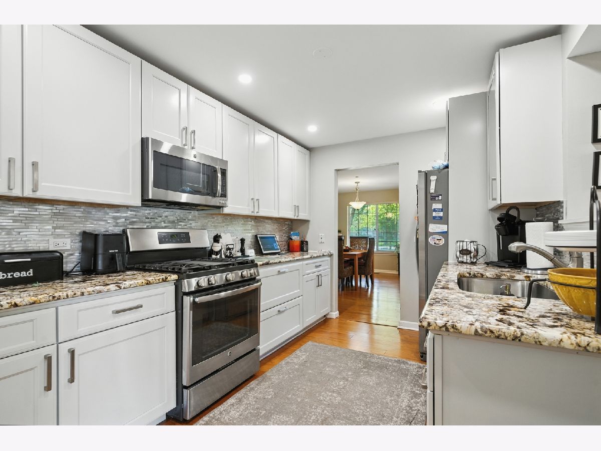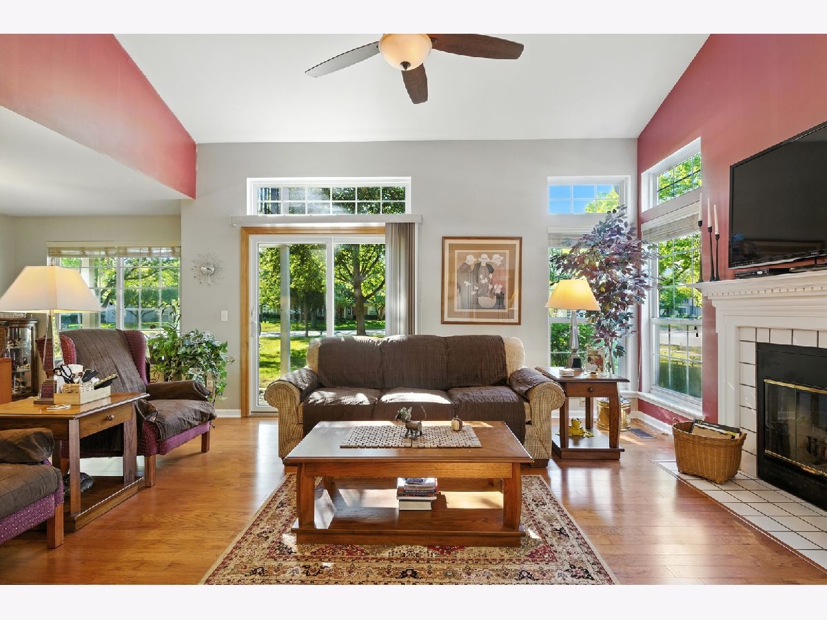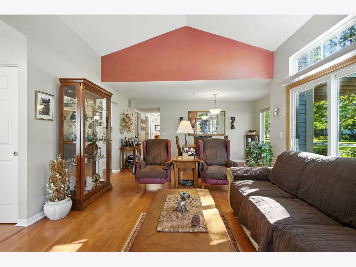 Welcome to this gorgeous 2-bedroom, 2-bath end-unit ranch offering desirable ground-level living with no stairs inside-perfect for comfort and accessibility! Step inside to vaulted ceilings, a spacious open floor plan, and a wall of windows that brighten the living and dining areas. Large sliding doors lead to a private patio, perfect for your morning coffee or winding down in the evening. The kitchen is fully equipped with Custom 42 inch cabinets, a generous walk-in pantry, plenty of counter space, and a cozy eat-in area. The master suite features a full bath, walk-in closet, and bright natural light. Additional highlights include in-unit laundry, an attached 2-car garage with extra storage, a private front entrance, newer roof and gutters, and all main living on one level for ultimate convenience. Located in the low-maintenance Fairfax community, this home is ideal for anyone looking to simplify without sacrificing space or comfort. Nearby attractions include Bartlett Nature Center, Hawk Hollow Forest Preserve, Villa Olivia Golf & Ski Resort, and convenient access to Metra, shopping, restaurants, and major highways.