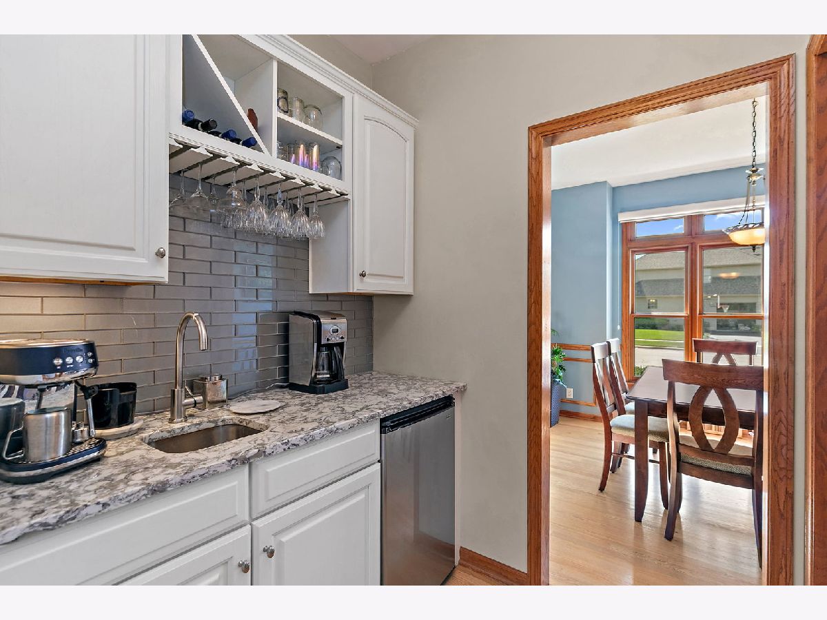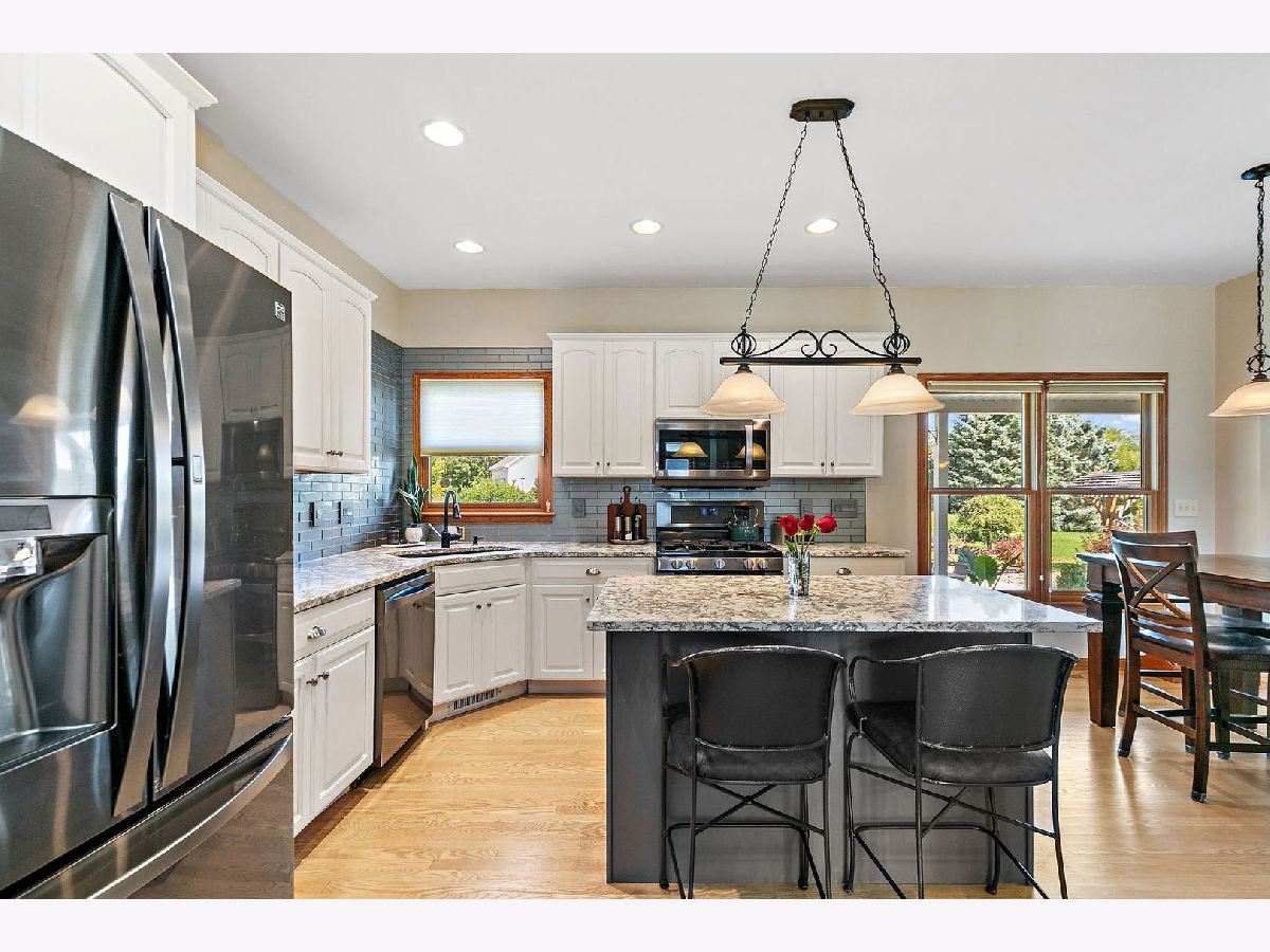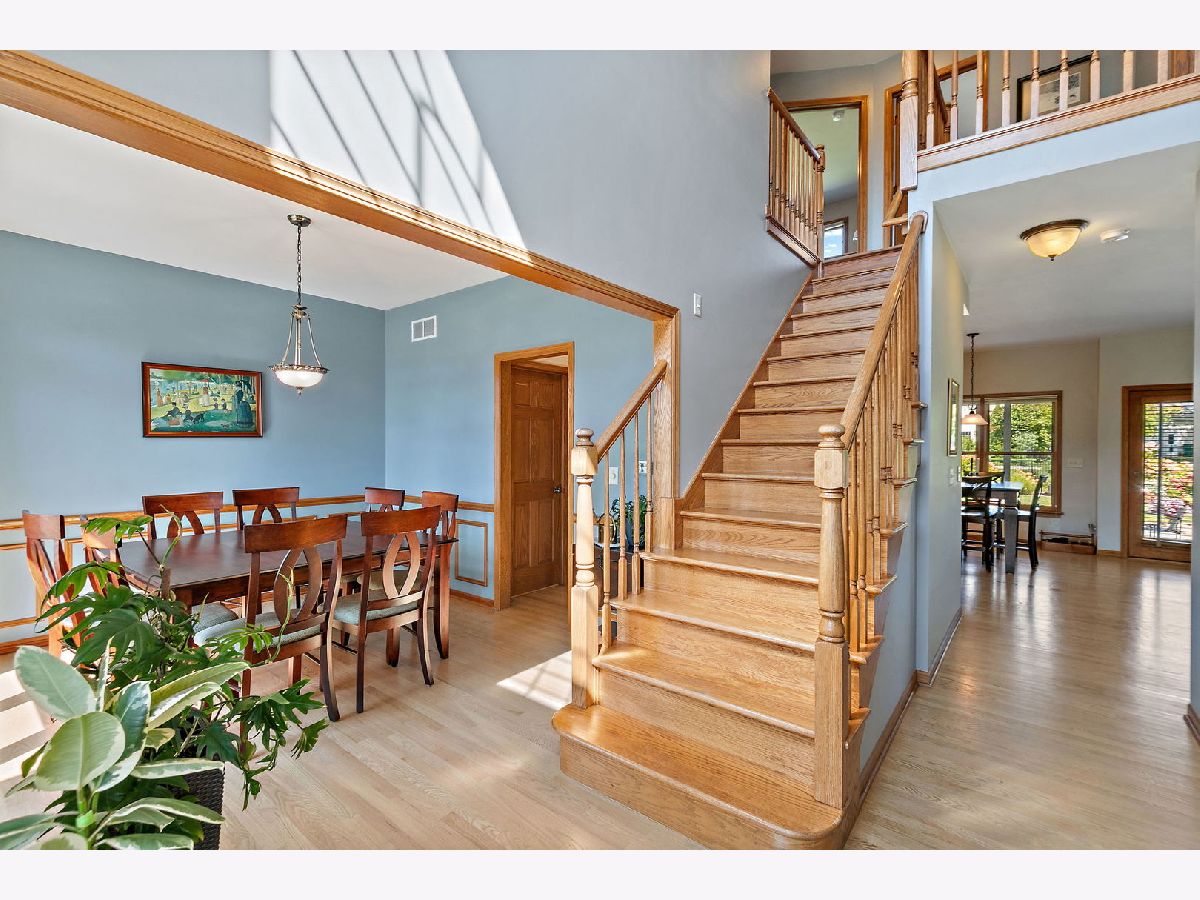 Welcome to this beautifully maintained 4-bedroom, 2.5-bath home with a 2.5-car garage and finished basement, ideally situated on a corner lot in the desirable Heron Creek subdivision. Step inside to an inviting open entry that flows seamlessly into the formal dining room, family room, and updated kitchen. The main floor boasts gleaming hardwood floors throughout, enhancing the elegance of each space. The kitchen is thoughtfully designed with a separate wet bar, island, pantry, and updated cabinetry featuring 42" upper cabinets with crown molding. Quartz countertops, a subway tile backsplash, and stainless-steel appliances complete this stylish and functional space. The adjoining family room is the perfect gathering spot, featuring a cozy wood-burning fireplace with an oak mantel and view to the beautiful backyard. A well-equipped laundry room offers a laundry shoot, wash sink, shower, and built-in coat rack for added convenience. Upstairs, the spacious master suite is a true retreat with abundant natural light, dual closets, and an updated bath showcasing double sinks, a soaker tub, and a beautifully tiled shower. Three additional generously sized bedrooms, a second office, and a hall bath with double sinks and a separate tub/toilet room complete the upper level. The finished basement extends the living space with a workout room, large family area, and recreational room-perfect for entertaining or relaxing. Step outside to your private backyard oasis, featuring a covered patio, stamped concrete patio, raised planting beds, and a hammock stand-all within a fully landscaped setting. This home offers the perfect combination of comfort, style, and functionality in a sought-after neighborhood. Don't miss the opportunity to make it yours!