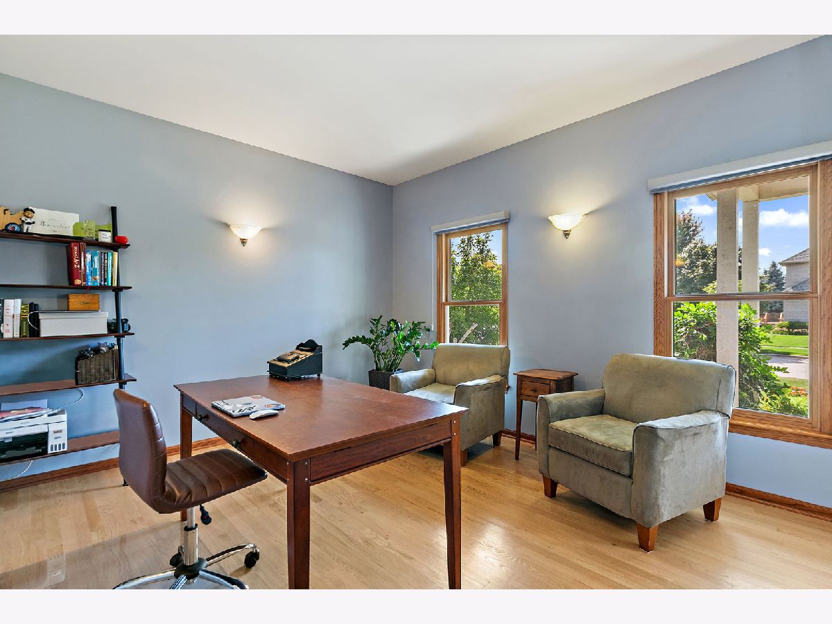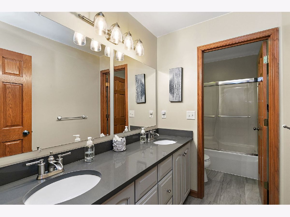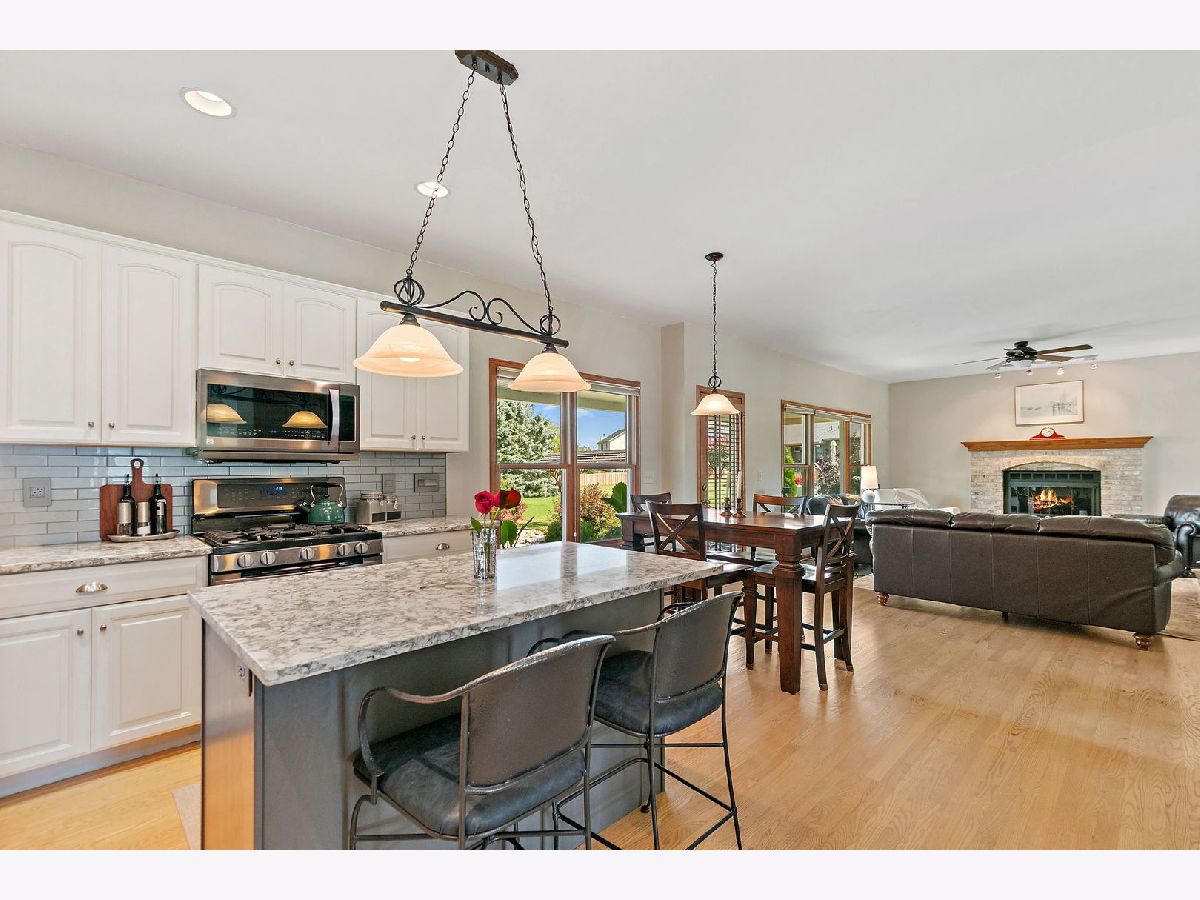 Welcome to this beautifully maintained 4-bedroom, 2.5-bath home with a 2.5-car garage and finished basement, ideally situated on a corner lot in the desirable Heron Creek subdivision. Step inside to an inviting open entry that flows seamlessly into the formal dining room, family room, and updated kitchen. The main floor boasts gleaming hardwood floors throughout, enhancing the elegance of each space. The kitchen is thoughtfully designed with a separate wet bar, island, pantry, and updated cabinetry featuring 42" upper cabinets with crown molding. Quartz countertops, a subway tile backsplash, and stainless-steel appliances complete this stylish and functional space. The adjoining family room is the perfect gathering spot, featuring a cozy wood-burning fireplace with an oak mantel and view to the beautiful backyard. A well-equipped laundry room offers a laundry shoot, wash sink, shower, and built-in coat rack for added convenience. Upstairs, the spacious master suite is a true retreat with abundant natural light, dual closets, and an updated bath showcasing double sinks, a soaker tub, and a beautifully tiled shower. Three additional generously sized bedrooms, a second office, and a hall bath with double sinks and a separate tub/toilet room complete the upper level. The finished basement extends the living space with a workout room, large family area, and recreational room-perfect for entertaining or relaxing. Step outside to your private backyard oasis, featuring a covered patio, stamped concrete patio, raised planting beds, and a hammock stand-all within a fully landscaped setting. This home offers the perfect combination of comfort, style, and functionality in a sought-after neighborhood. Don't miss the opportunity to make it yours!
