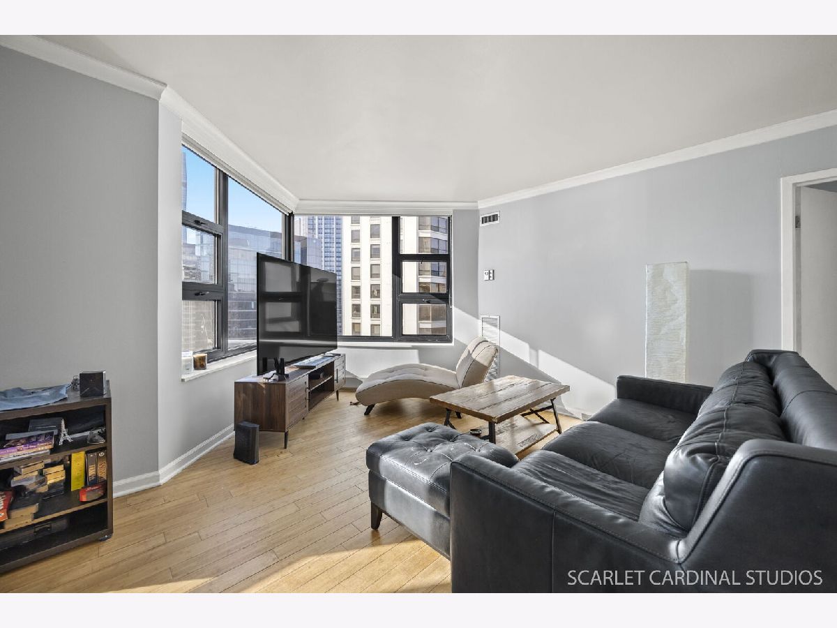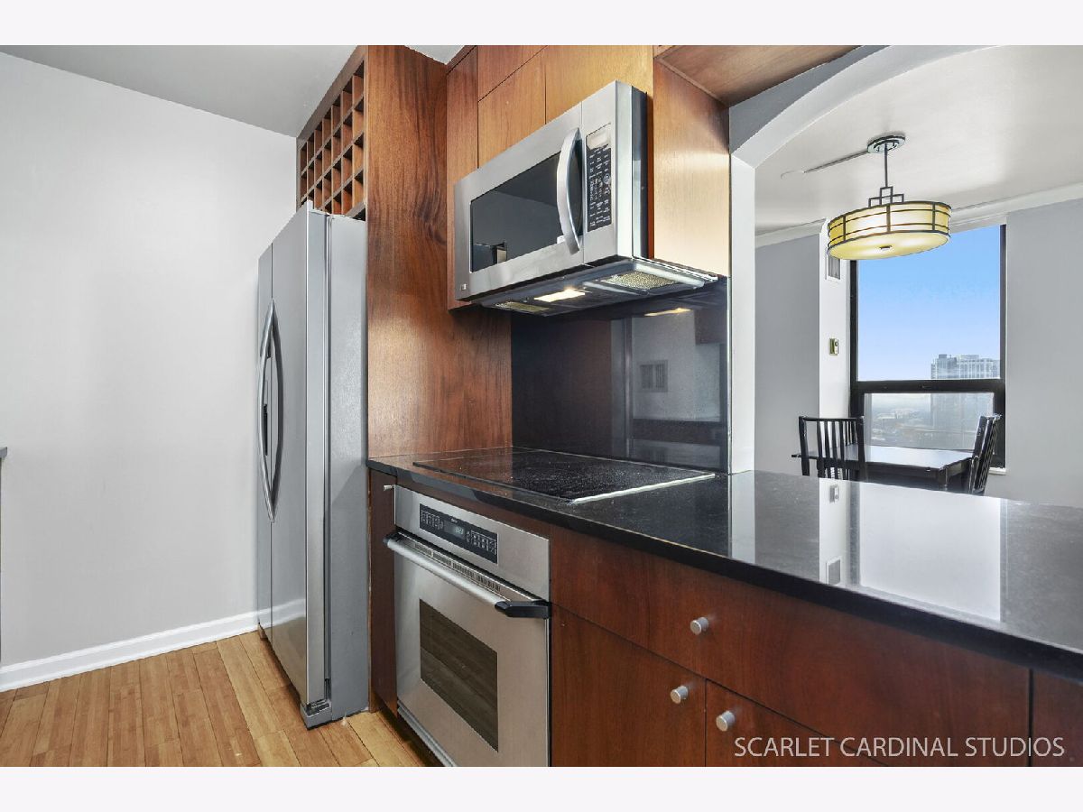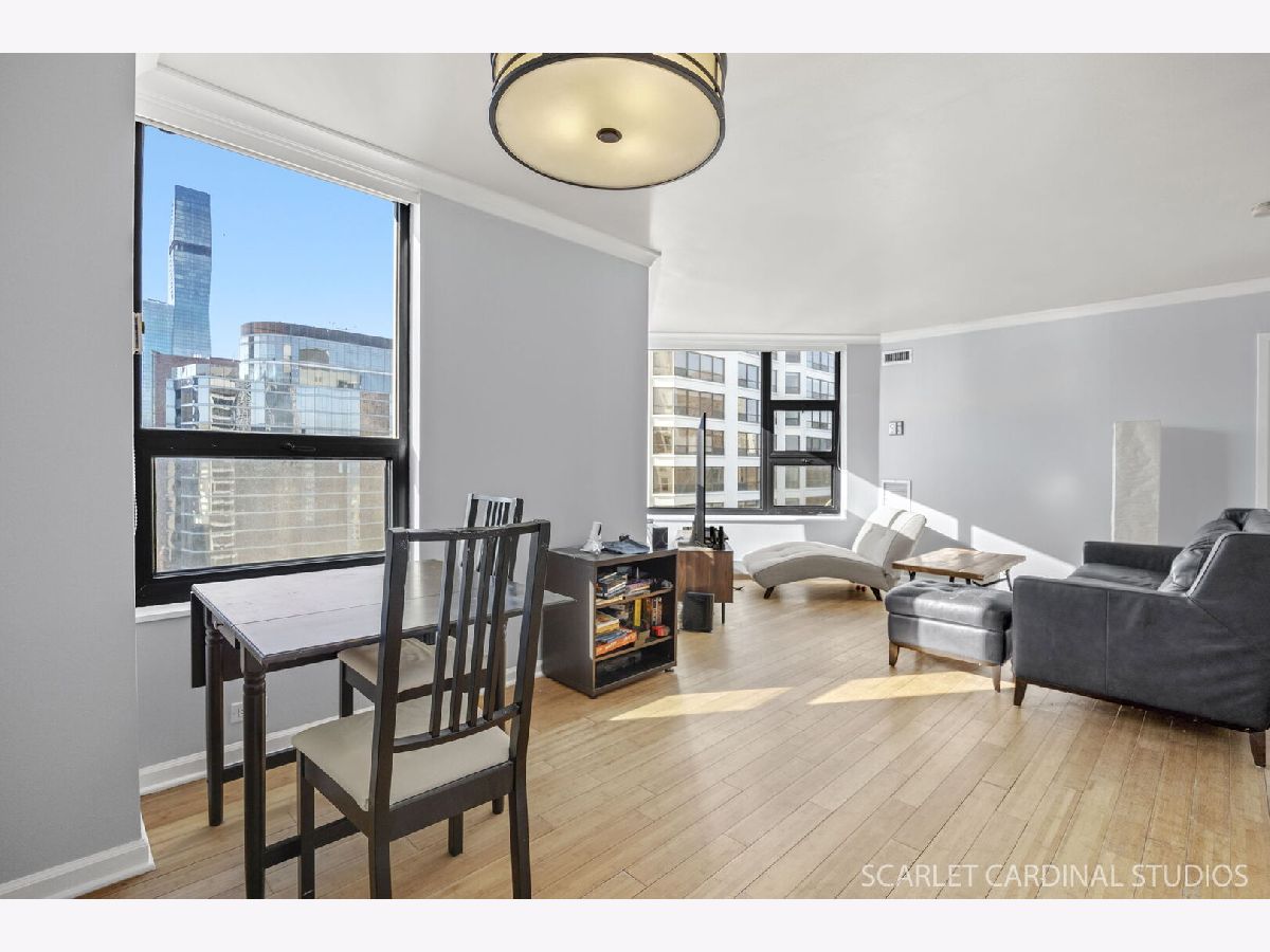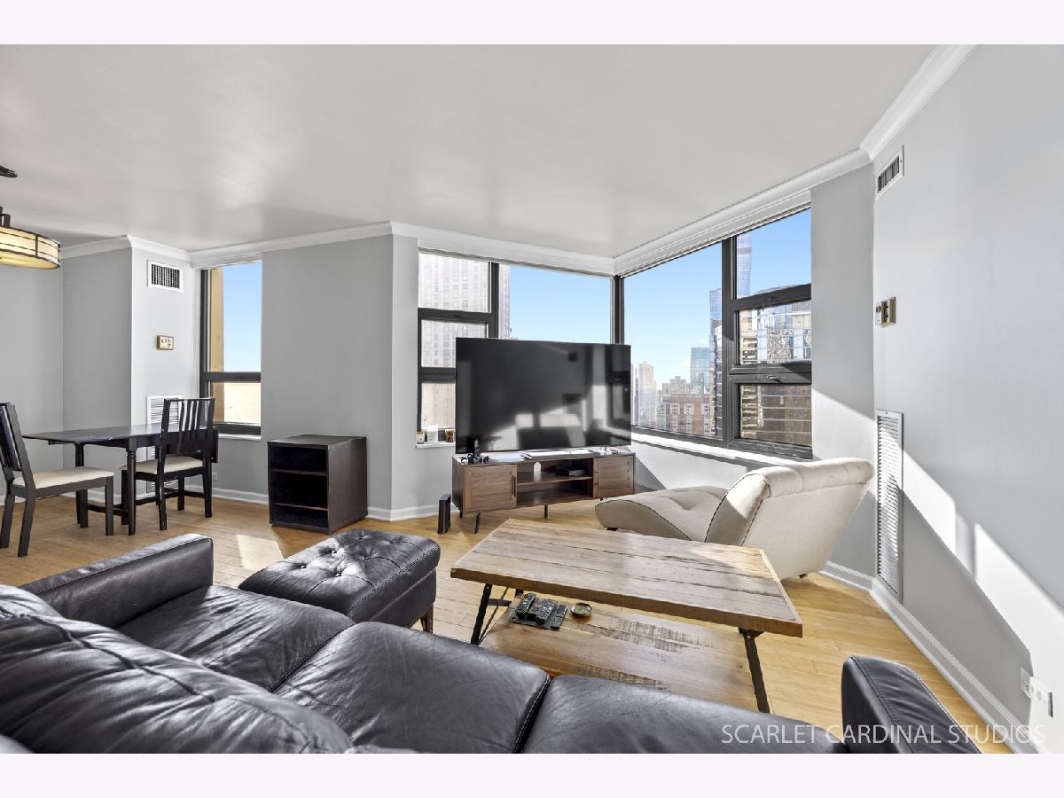 Enjoy breathtaking views of the city and Lake Michigan from this 44th floor condo located in the heart of Streeterville. This prime Near Northside location is conveniently situated near numerous attractions and amenities, such as the lakefront trail and beaches, Riverwalk, Navy Pier, Magnificent Mile, as well as dining options, shopping venues, Northwestern University and Hospital, parks, theaters, and much more! This sunlit, south-facing condo boasts an open floor plan, featuring a combined living and dining space with large windows offering beautiful views of the skyline and lakefront. The kitchen comes equipped with stainless steel appliances, granite countertops, mahogany cabinetry, and a custom wine rack. The bathroom has been upgraded, and there are two generous walk-in closets with custom organizers. An exceptionally well-maintained building with outstanding amenities, includes an indoor pool, sauna, hot tub, party room, gym, and two outdoor sundecks providing panoramic views, along with a 24-hour doorman. Commuters will appreciate the easy access to public transportation and expressways. The unit does not come with parking, but there are typically spaces available for lease in the building's parking garage.