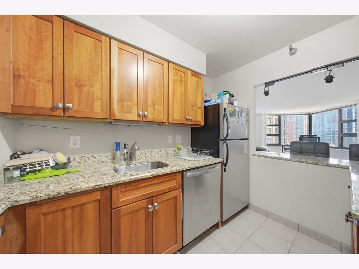 Nicely updated and spacious one-bedroom, one-bath residence in the heart of Streeterville, offering exceptional value and an unbeatable location. This well-designed home features expansive bay windows, natural light, a generous walk-in closet, and a comfortable layout ideal for both everyday living. The kitchen is appointed with cherry wood cabinetry, granite countertops, and stainless steel appliances, while the bathroom has been tastefully updated with a modern vanity and ceramic tile shower. The unit is fully carpeted, creating a warm and inviting living space. Included in the price is a prime first-floor garage parking space and a dedicated storage unit. Parking is not deeded, resulting in no additional real estate taxes. Full-amenity building with 24-hour door staff, indoor pool, fully equipped fitness center, sauna, jacuzzi, sundecks, and party room. Pet-friendly building. Ideally situated in Streeterville, just steps from the lakefront, beaches, parks, Navy Pier, and Michigan Avenue shopping and dining. Close proximity to Northwestern Memorial Hospital, Northwestern Pritzker School of Law, and Kellogg School of Management.