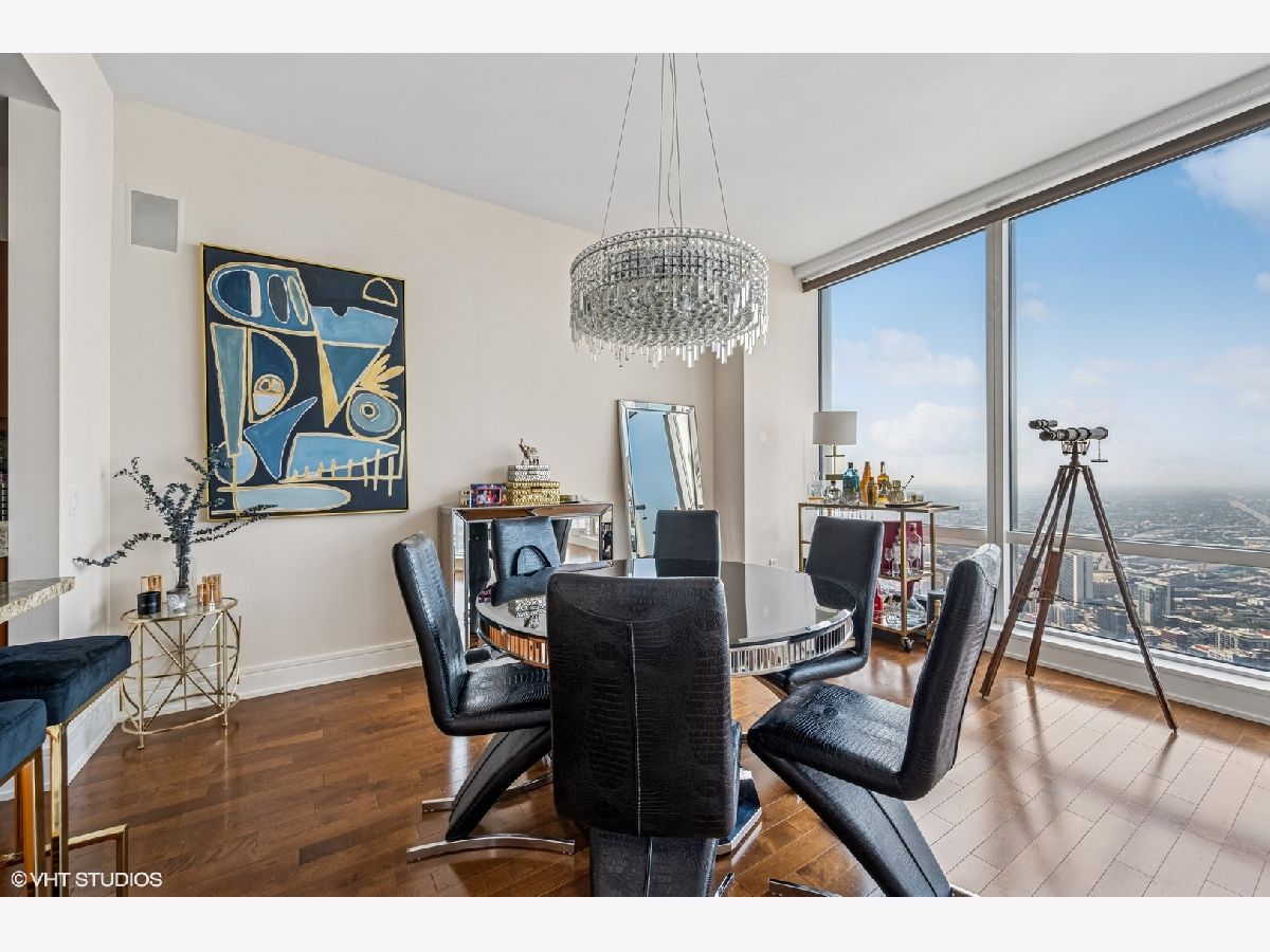 Experience breathtaking lake and city skyline views from this spectacular two-bedroom, two-and-a-half-bathroom residence perched on the 77th floor of Trump Tower. The expansive living and dining area features a beautiful gas fireplace, perfect for relaxing or entertaining against Chicago's dramatic backdrop. The gourmet open kitchen is outfitted with Snaidero cabinetry and top-of-the-line Miele, Wolf, and Subzero appliances. The luxurious primary suite offers double walk-in closets and an elegant spa-inspired bathroom with a whirlpool tub, separate shower, and dual vanities. Parking is included. Residents enjoy five-star amenities including a 24-hour concierge, world-class spa and health club, room service, and more.