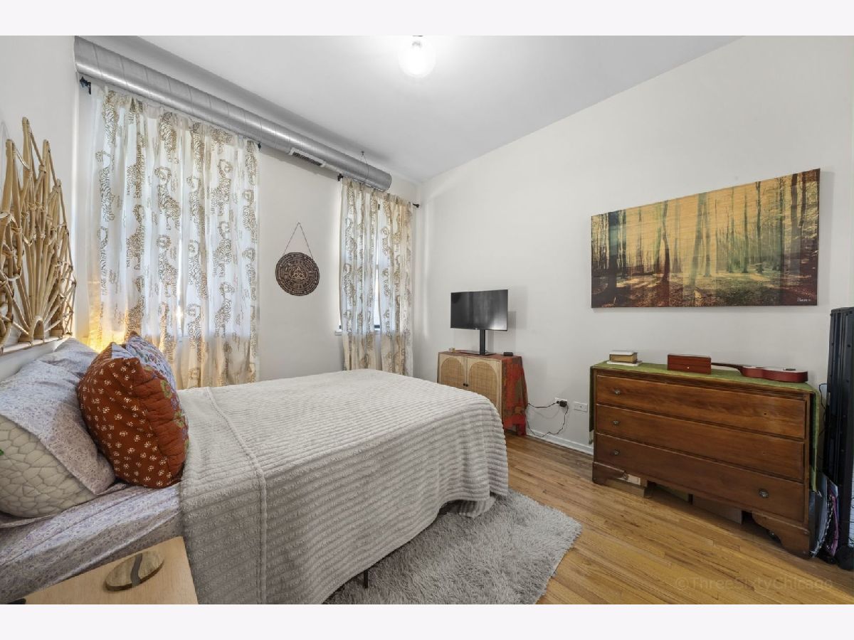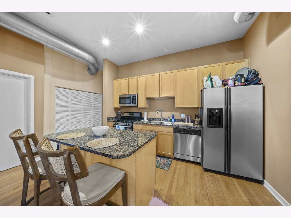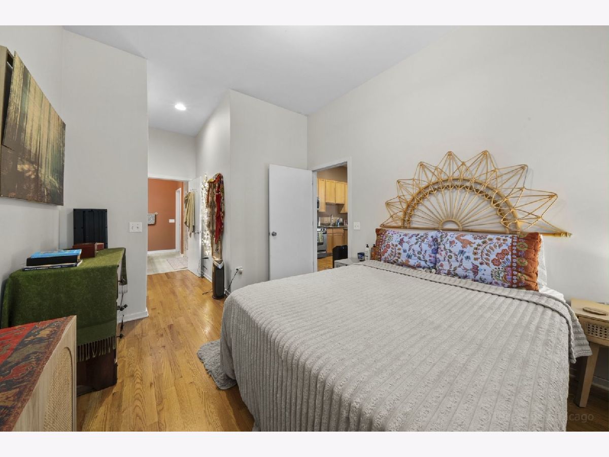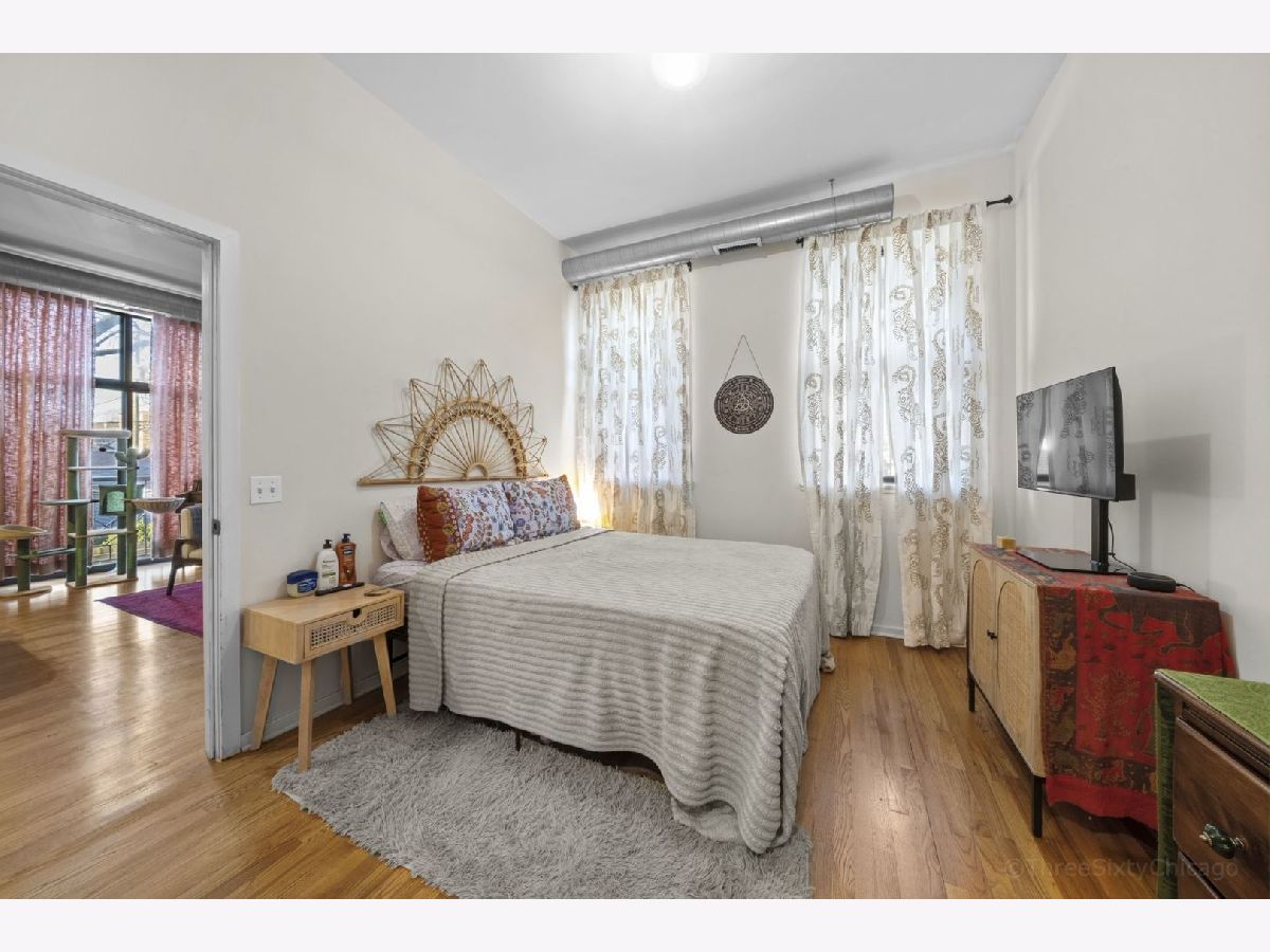 Spacious and stylish 1-bedroom corner-unit in a boutique, newer-construction elevator building in Irving Park. This move-in-ready home features hardwood floors throughout, soaring ceilings, and a welcoming entry with an oversized storage closet. The bright living space is complemented by a charming Juliette balcony and an open layout ideal for both relaxing and entertaining. The kitchen offers 42" cabinetry, stainless steel appliances, and a large breakfast bar/island. The generously sized bedroom includes a walk-through closet area leading to a dual-entry bath with a double vanity and an oversized tub/shower. Enjoy the convenience of in-unit full-size laundry, central heat and A/C, plus an exterior deeded parking space is included in the price! Low monthly HOA and a beautifully landscaped garden entrance add to the appeal. Unbeatable Irving Park location just steps to Horner Park, dog park, fitness center, summer farmers market, and the scenic riverwalk.