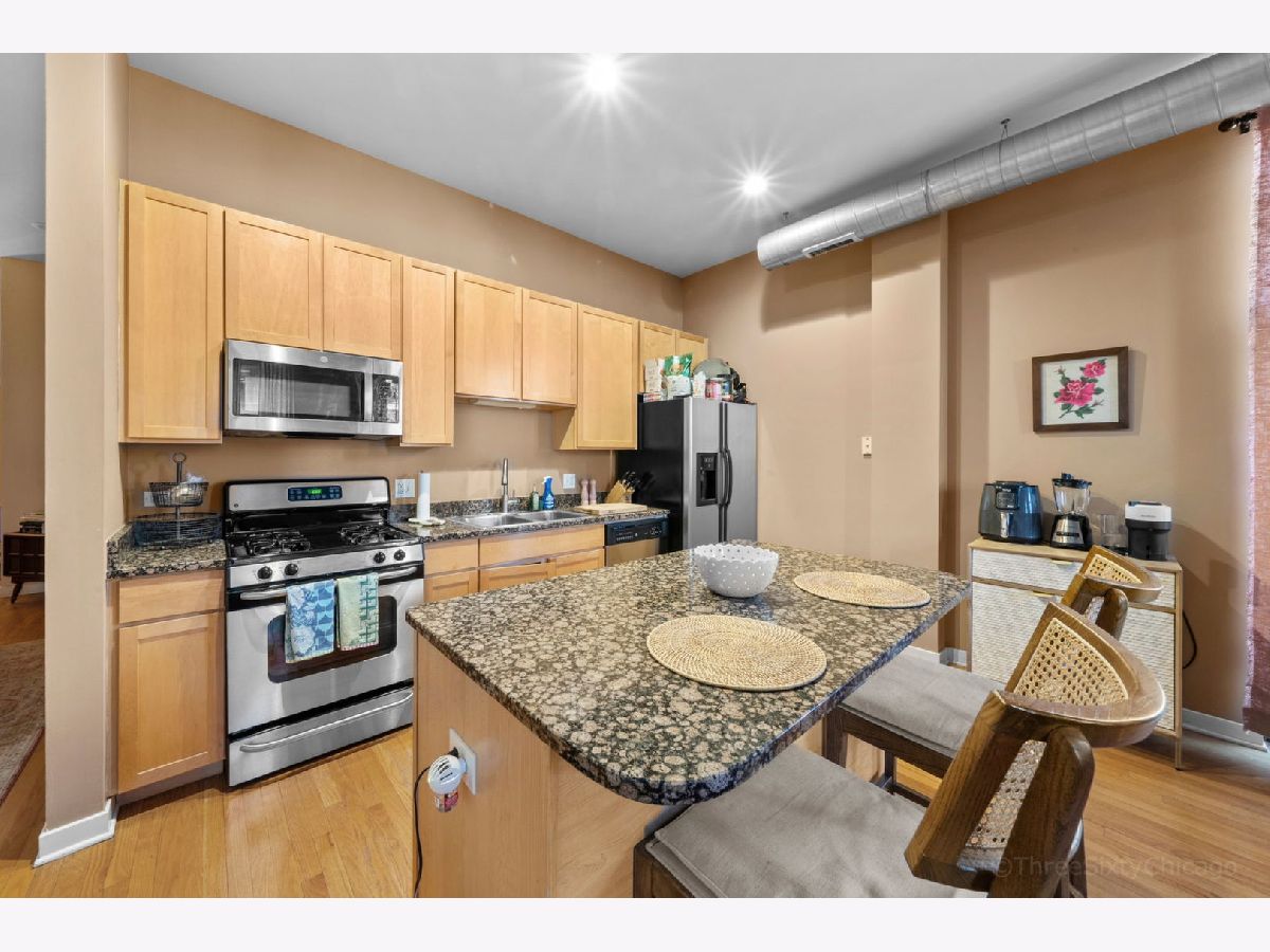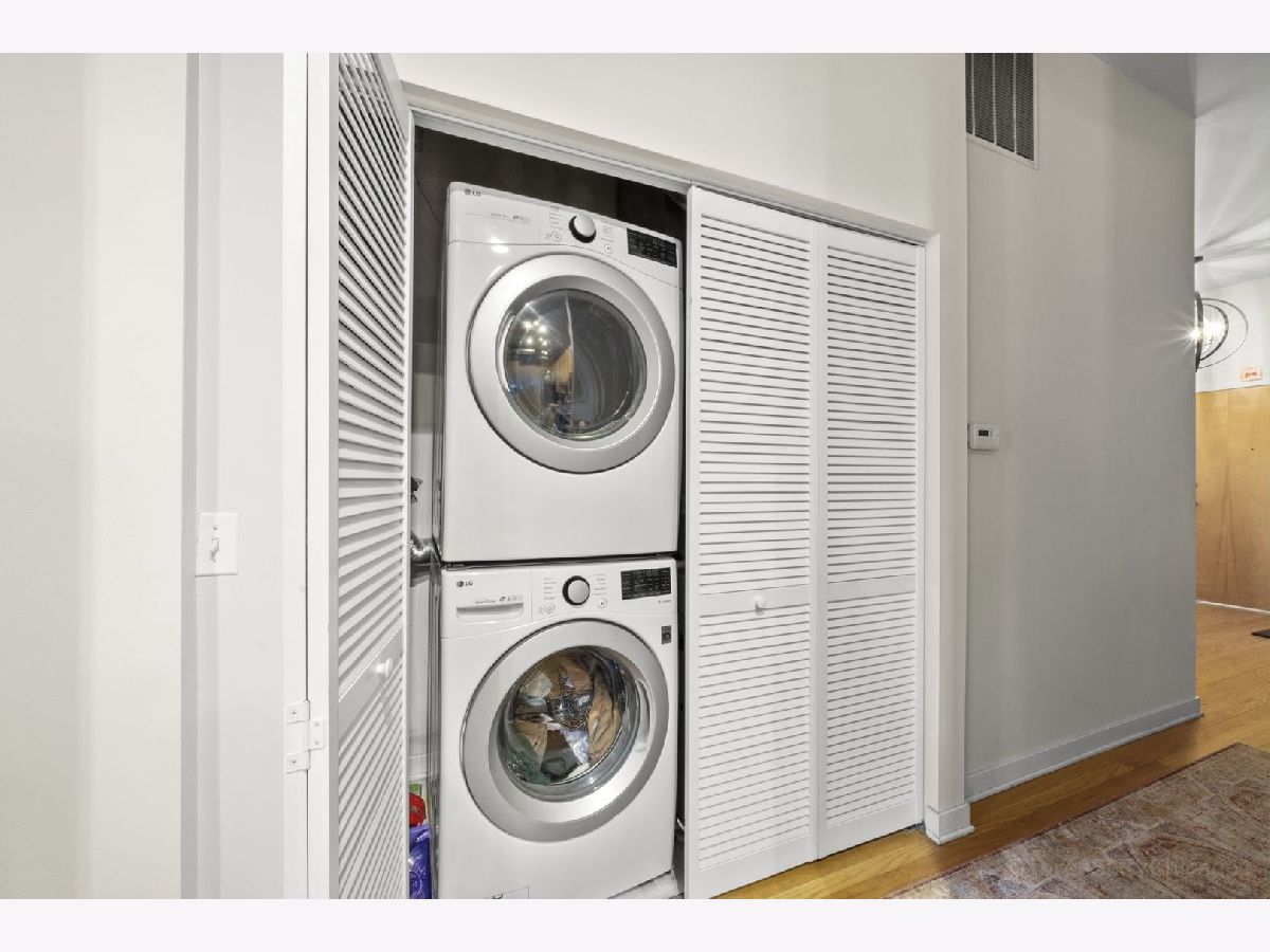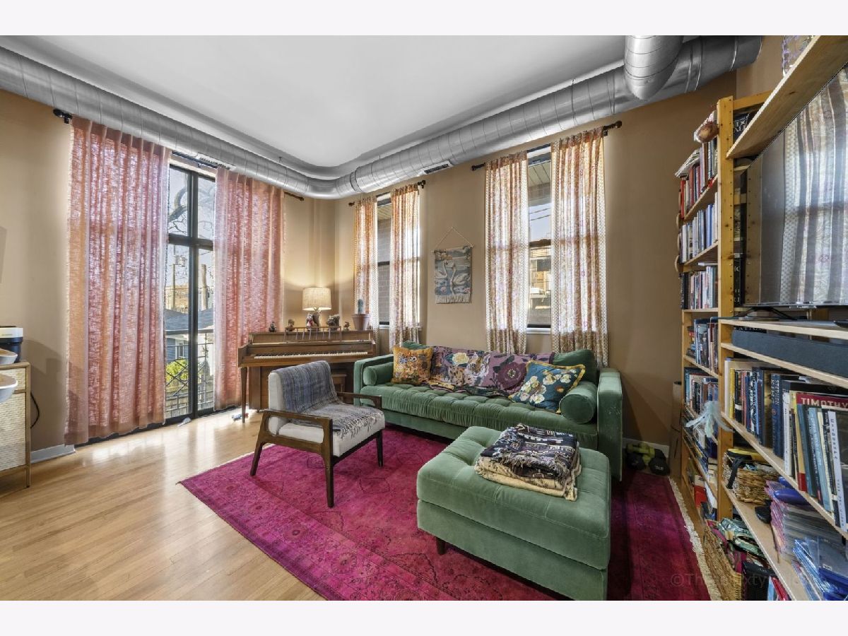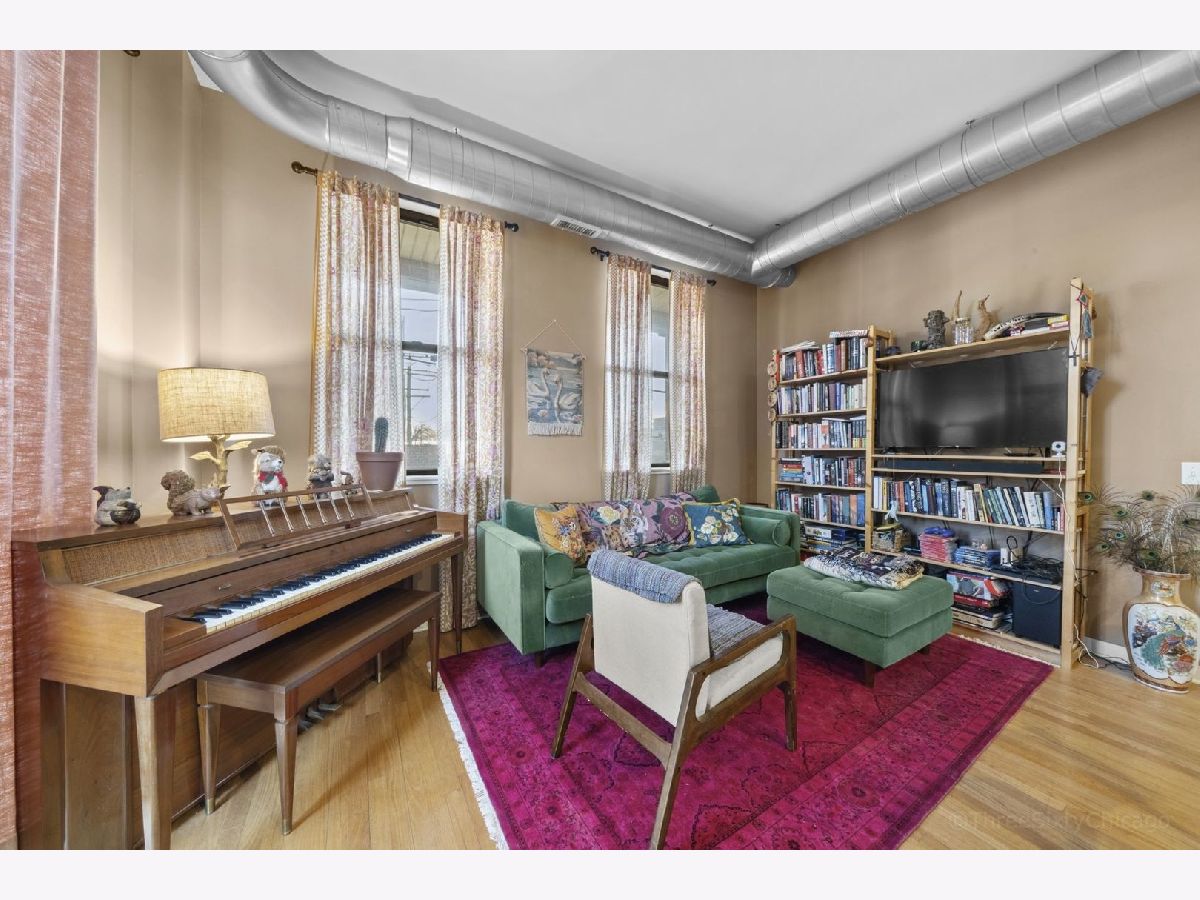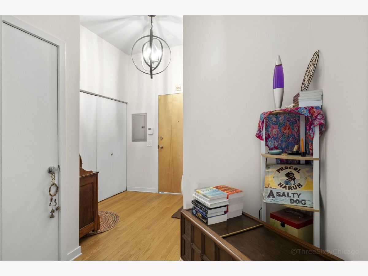 Spacious and stylish 1-bedroom corner-unit in a boutique, newer-construction elevator building in Irving Park. This move-in-ready home features hardwood floors throughout, soaring ceilings, and a welcoming entry with an oversized storage closet. The bright living space is complemented by a charming Juliette balcony and an open layout ideal for both relaxing and entertaining. The kitchen offers 42" cabinetry, stainless steel appliances, and a large breakfast bar/island. The generously sized bedroom includes a walk-through closet area leading to a dual-entry bath with a double vanity and an oversized tub/shower. Enjoy the convenience of in-unit full-size laundry, central heat and A/C, plus an exterior deeded parking space is included in the price! Low monthly HOA and a beautifully landscaped garden entrance add to the appeal. Unbeatable Irving Park location just steps to Horner Park, dog park, fitness center, summer farmers market, and the scenic riverwalk.
