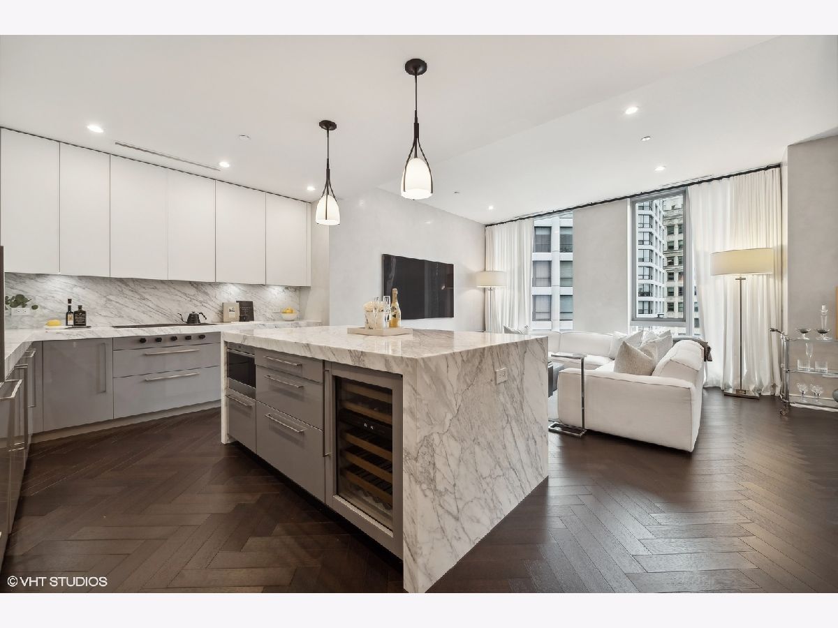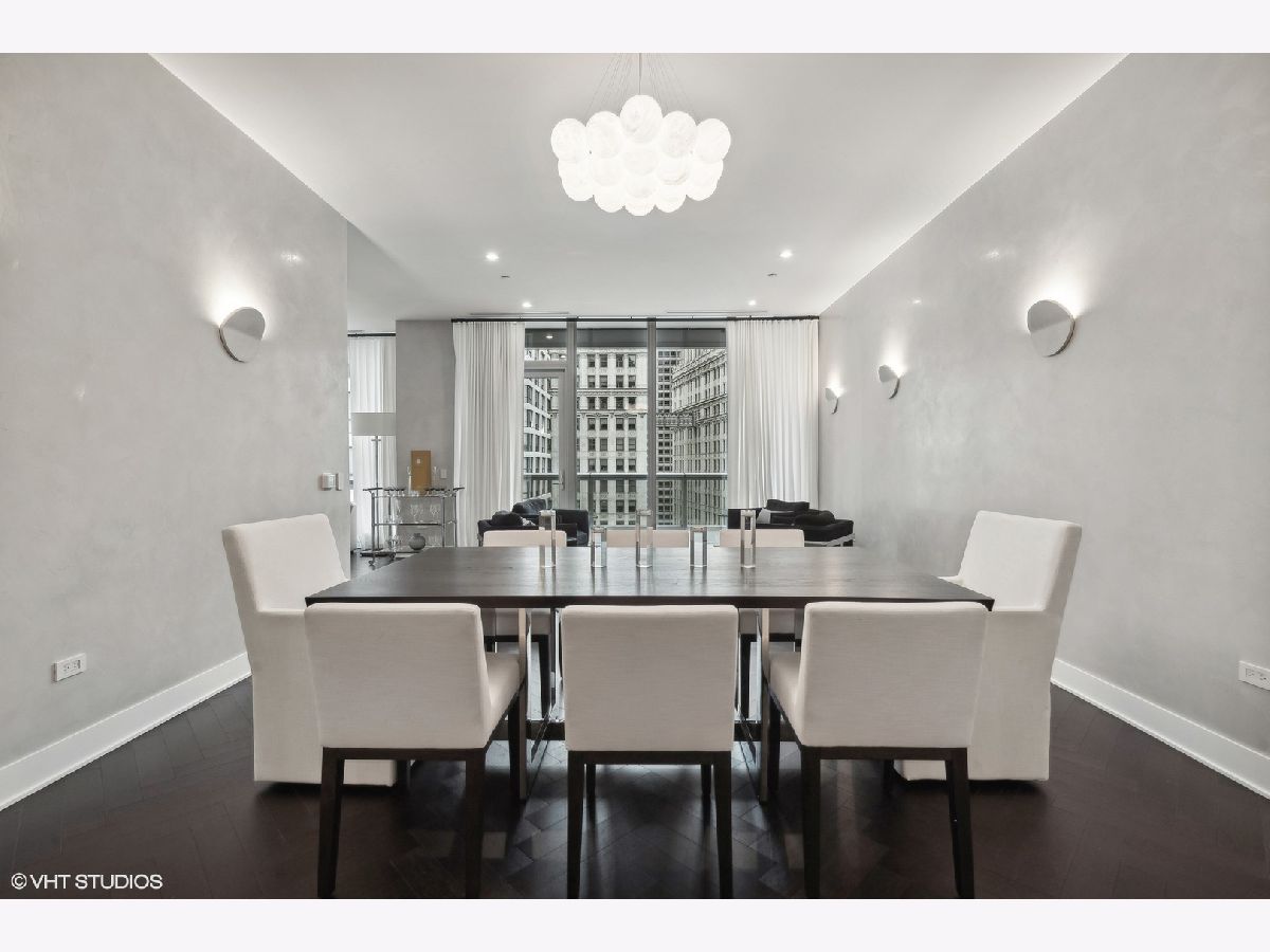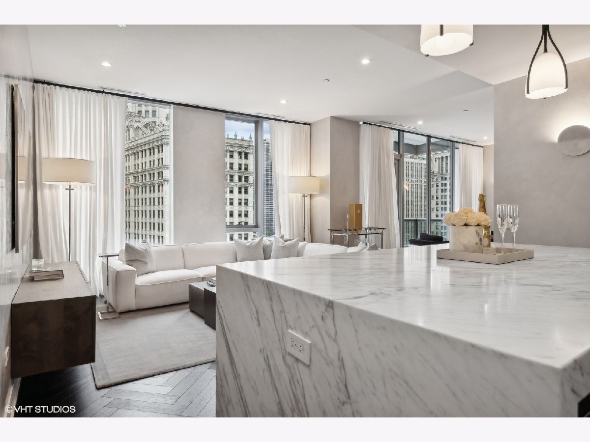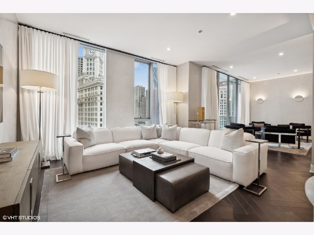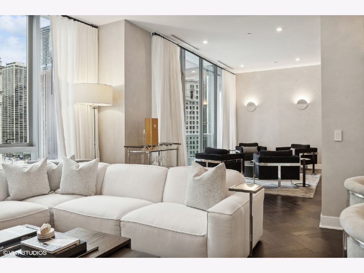 Exquisite Riverfront Residence with Unparalleled Upgrades. Every inch of this highly upgraded residence has been meticulously curated for the discerning homeowner. Elegant Venetian plaster walls, bespoke wall coverings, custom-designed closets, and sophisticated lighting create a refined ambiance throughout. Perfectly positioned along the river and surrounded by Chicago's most iconic architecture, this enviable address offers walkability to the finest dining, shopping, and cultural experiences downtown has to offer. The gracious three-bedroom, three-bath floor plan showcases sweeping city and river views from every room and the private terrace. Art enthusiasts will appreciate the expansive gallery-style walls, while design connoisseurs will admire details such as Waterworks fixtures, a spa-inspired primary bath with a Victoria + Albert freestanding tub, and a sleek Snaidero kitchen appointed with Wolf and Sub-Zero appliances. Residents enjoy world-class amenities, including 24-hour door staff, a state-of-the-art fitness center with a private yoga studio, bicycle storage, and a dedicated dog run. The penthouse-level club is an entertainer's dream, featuring a rooftop lounge with game and media rooms, indoor and outdoor kitchens, and a terrace with a fireplace overlooking Chicago's magnificent skyline and river. One garage parking space is included. The residence may also be purchased fully furnished for a truly turnkey experience.
