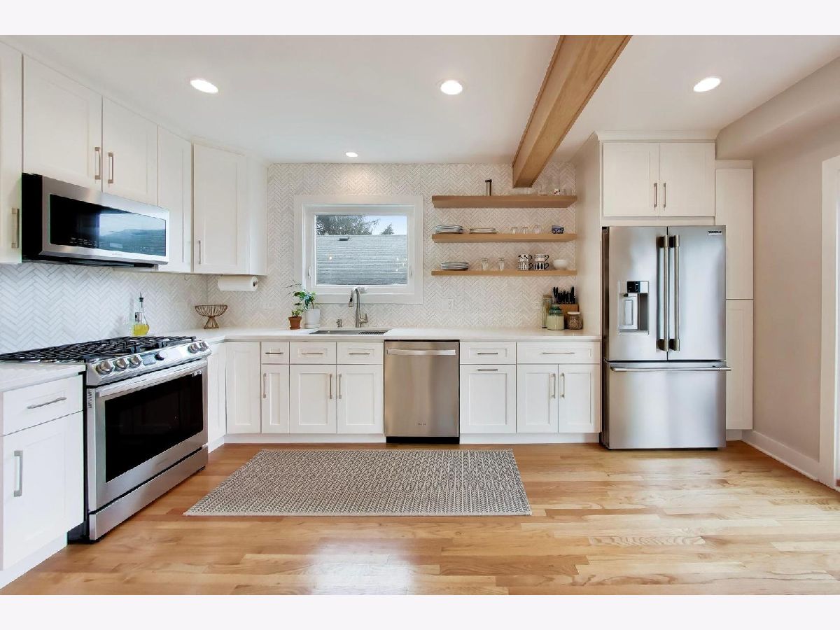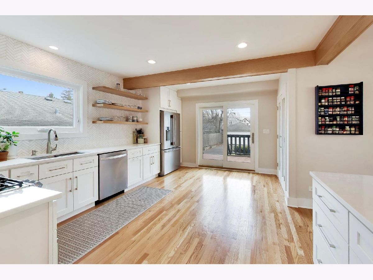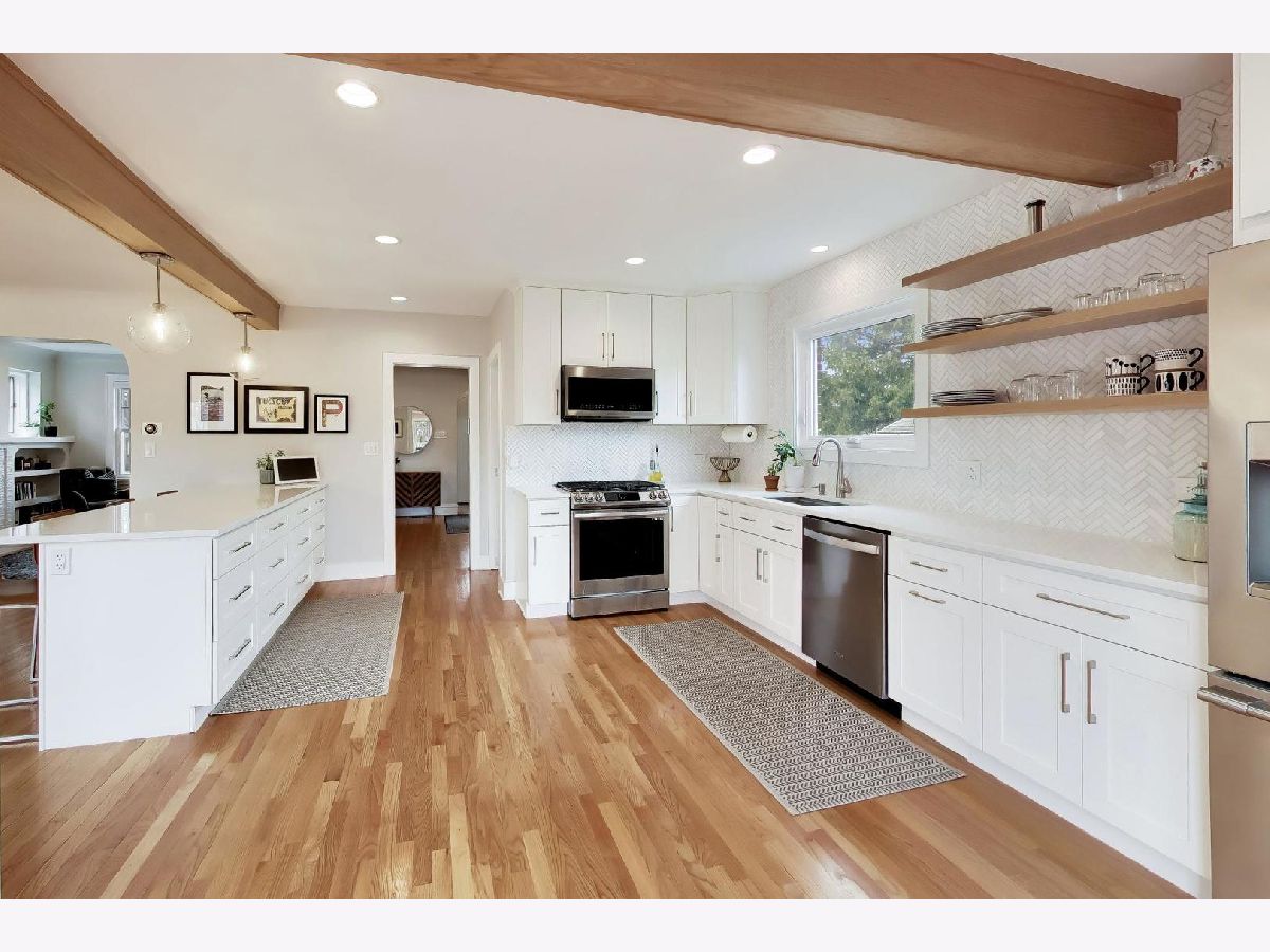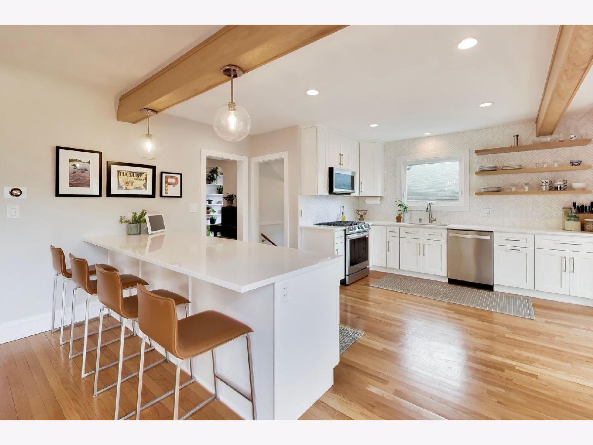 This charming Tudor offers the perfect blend of character, thoughtful design, and surprisingly expansive living space, all filled with an abundance of natural light throughout. Featuring 3 bedrooms and 3 1/2 baths, the home is filled with stylish updates, including a stunning fully renovated open kitchen (2024) with quartz countertops, stainless steel appliances, a dramatic peninsula with seating for four, open shelving, and a beautifully designed double door pantry with custom shelving and electric for effortless appliance storage. The inviting living room is centered around a charming gas fireplace, while upstairs the primary suite offers a walk-in closet, Juliet balcony, and beautifully finished full bath. A fully appointed hall bath with tub and double vanity serves the secondary bedrooms, and the third level with new hardwood flooring and skylights provide exceptional flexibility as a family room, office, additional bedroom or lounge space with easy access storage. The finished basement adds even more versatility with a full bathroom, work nook, and an impressive laundry room complete with counter space, cabinetry, modern shelving, and Speed Queen washer and dryer. A generous deck accessible from two sets of sliding glass doors overlooking a fully fenced backyard featuring raised garden beds and mature fruit trees-an inviting setting designed for effortless outdoor entertaining and everyday enjoyment. Thoughtfully updated throughout, the sellers made improvements with the intention of staying long-term, creating a home that is both functional and beautifully finished at every turn. A change in plans now presents a rare opportunity for the next owner to enjoy the care and investment already made. Ideally located just a short distance from schools, vibrant downtown Mount Prospect, and the Metra, this home offers both convenience and lifestyle. With timeless Tudor curb appeal and far more space than expected from the exterior, this is a home that truly stands out.