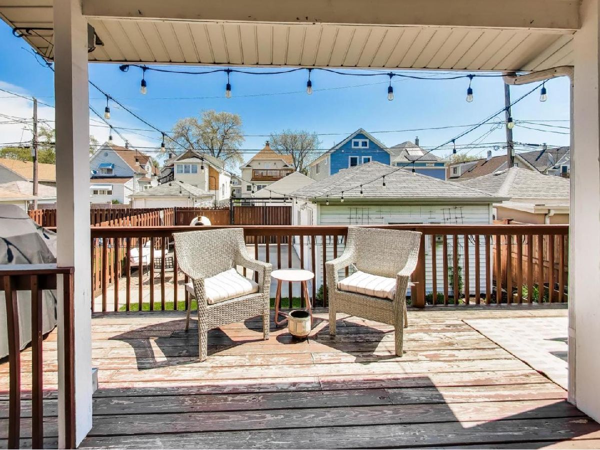 Portage Park stunner. Home has been thoughtfully redesigned with bright fresh finishes throughout. You are greeted with huge mudroom/foyer. Large open living and dining rooms and 2 generous bedrooms on the first floor. Spectacular eat-in kitchen features Thermador appliances, new cabinetry, quartz counters, coffee bar with beverage fridge, and loads of storage. Second floor offers king sized primary bedroom with separate dressing area and closet, 2nd bedroom, and side by side laundry. 2nd floor bathroom has double vanity and a walk-in shower. Lower level has office, play -room, rec room, 2nd laundry, and loads of additional storage. New kitchen has french-doors to deck, patio, and sunny backyard. 1 car garage with extra storage space and parking pad for 2nd car. Short walk to coveted Portage Park with 38 acres of green space complete with pool, playgrounds, fieldhouses, and loads of park district courses and activities.