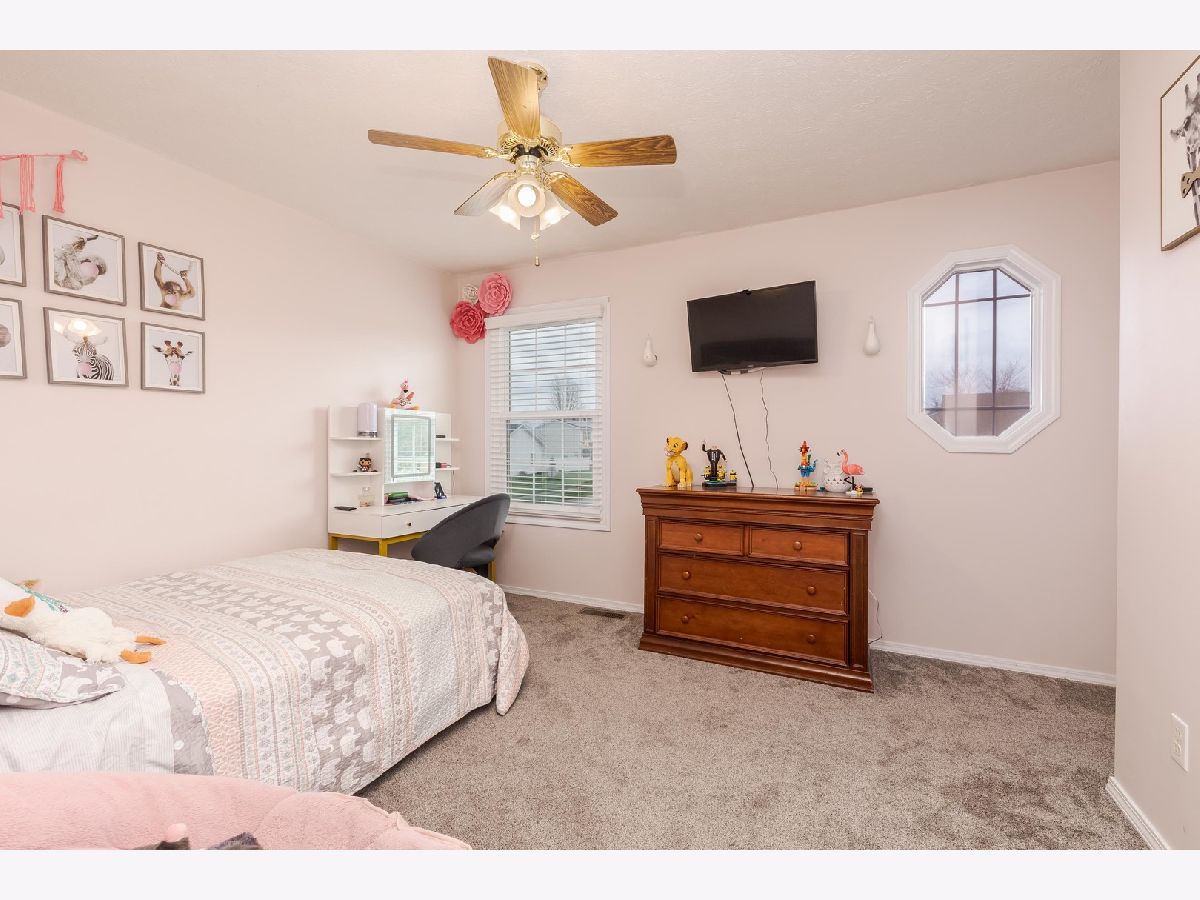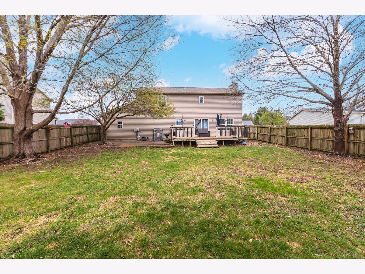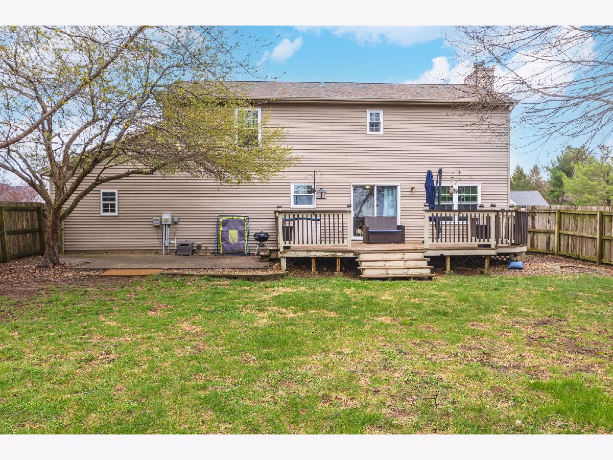 Nicely updated two-story home in the desirable Cobblecreek subdivision in Heyworth-no backyard neighbors! This spacious property features 4 bedrooms, 2.5 bathrooms, and a fully finished basement. The open, updated eat-in kitchen includes stainless steel appliances (new in 2025), abundant cabinet space, and a center island-perfect for everyday living and entertaining. The main level also offers a family room with a fireplace, a formal dining room, and convenient main-floor laundry. Upstairs, you'll find four bedrooms, including a large primary suite with a beautifully tiled walk-in shower and a generous closet space. Three additional bedrooms share a well-appointed hall bathroom. The recently renovated basement adds even more living space, featuring a large family room with an impressive theater setup, a versatile bonus room currently used as a gym, and a cozy office nook. Additional highlights include an oversized two-car garage with a substantial bump-out for extra storage, and a fully fenced 0.33-acre yard with no rear neighbors for added privacy. Recent updates include: all new windows 2025, new appliances 2025, main level flooring 2025, second level carpet 2025, new roof 2020/2021 ish, complete basement remodel 2021. Information deemed reliable but not guaranteed.