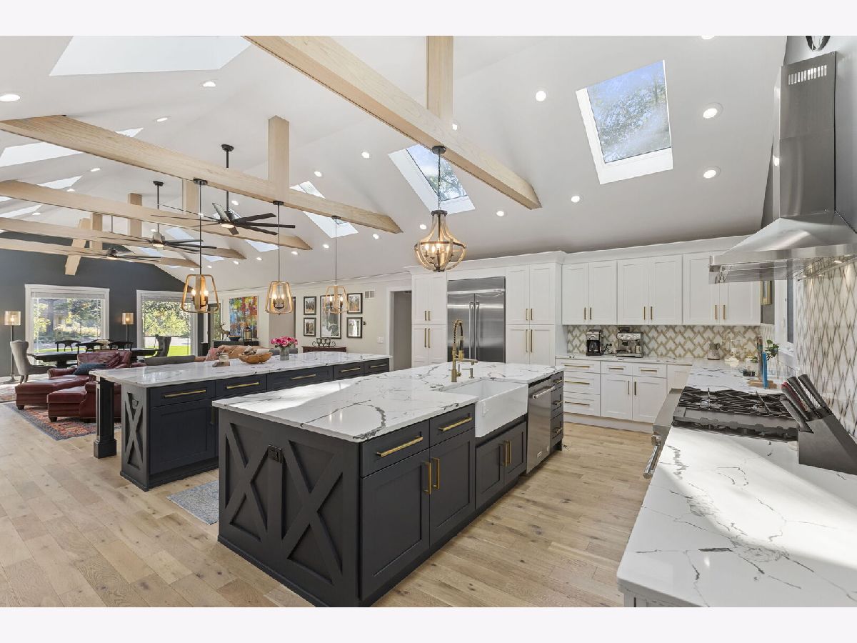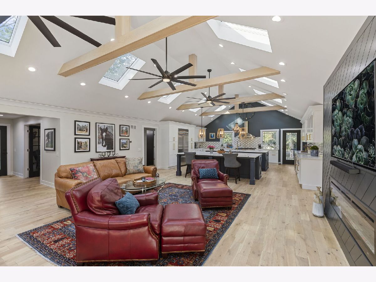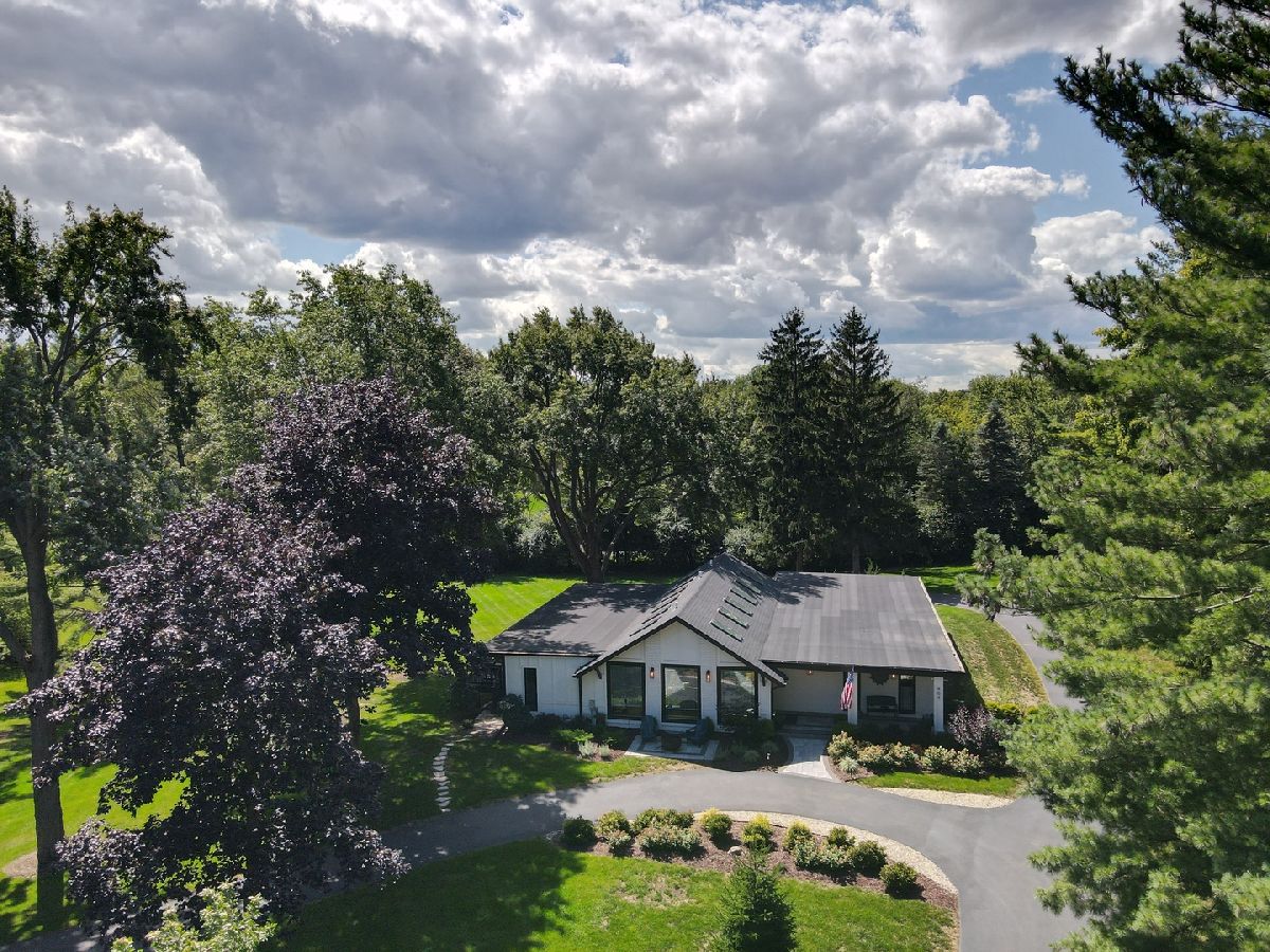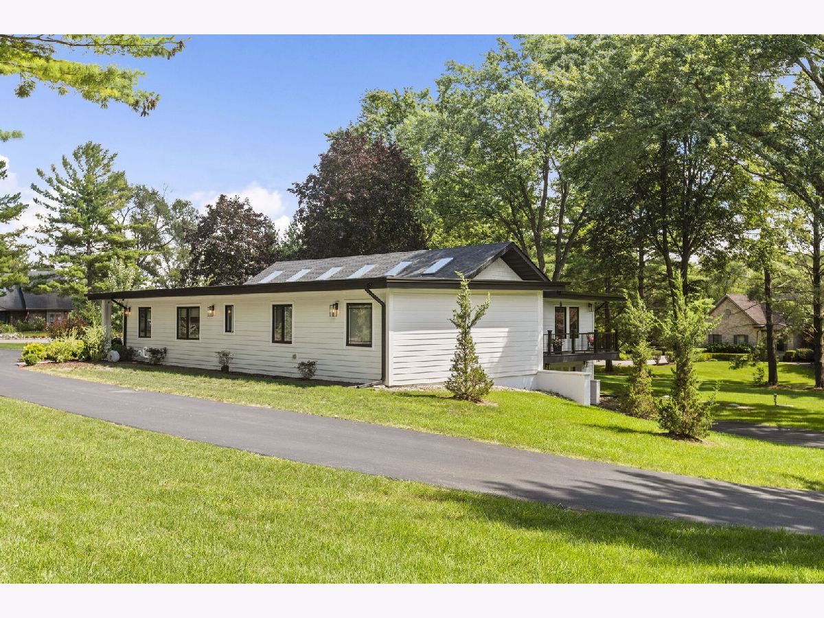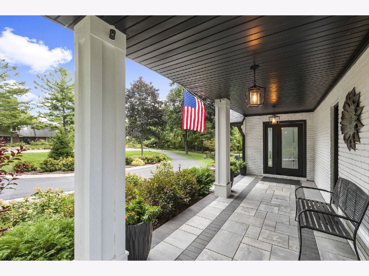 Introducing a level of opulence Inverness has been yearning for, a discrete tree lined street leads to a cul-de-sac where a prominent custom designed ranch with a new circle drive outlines the parameter of 1.27 acres. Guests are greeted with a charming front patio ideal for a courtyard ambiance and a covered front porch that can write its own song. Upon entering there is an overwhelming emotional attraction to the expansive open footprint with vaulted ceilings, skylights, exposed beams and floors that have a white oak with character appearance carried throughout. The dining room is elegant in nature with a full glass visual of the front yard. Open to the dining room is a stunning family room with a modern flush mount fireplace and a recessed TV embraced by shiplap. The brilliantly designed kitchen is one that a top chef can get behind with 2 sprawling islands purposely finished with one being a breakfast bar and the second as a prep area while hosting dinners and or guests. Each island is complimented with a gorgeous selection of quartz counters, and contrasting cabinets. The perimeter of the kitchen is customized with 42" shaker and glass facade cabinets, stunning back splash, farm sink with additional vegetable sink, phenomenal stainless-steel appliances and exterior access to a balcony. Adjacent to the kitchen on one side are 3 generous bedrooms each with hardwood floors, 1 is a primary suite with an incredible view of the yard, expansive walk-in closet with custom organizers and primary bath that puts spas to shame. The primary is finished with double vanities, independent soaking tub and separate shower complimented by a gorgeous tile selection. The remaining 2 bedrooms on the same side of the home share a chic hallway bathroom with a double vanity and shower/tub combination. On the opposing side of the home is the 4th bedroom with charming views of the yard and an incredible full bathroom with double vanities and separate shower. The main floor also offers a distinguished office with wainscoting, French doors and views of the side yard. Across from the office is a show piece laundry room with bran doors, 42" shaker cabinets, quartz counters and sink. Down the hallway is access to a composite deck on the side of the home. Finished lower level with media area, powder room and an extraordinary amount of storage. 3-car attached garage! Serene yard with unobstructed views! Near the park!