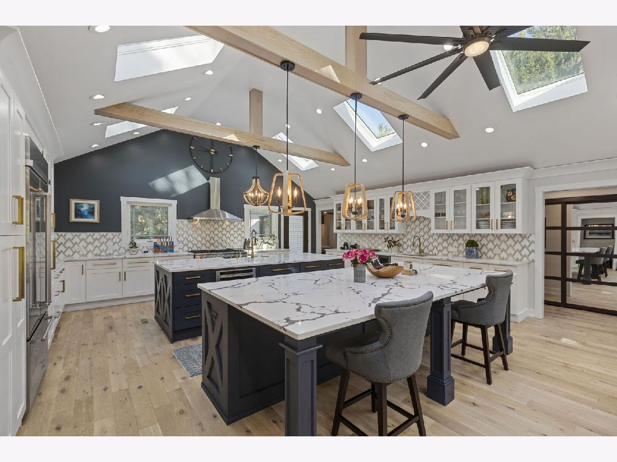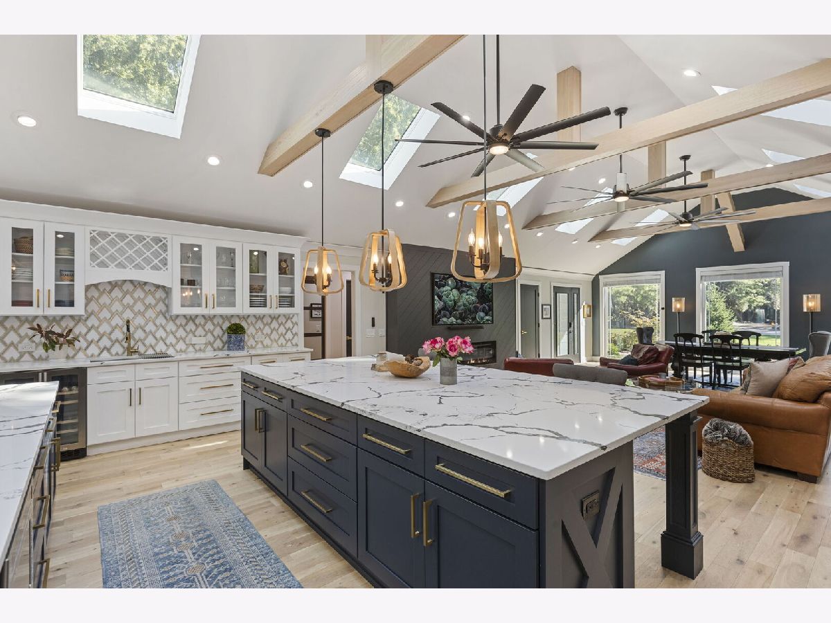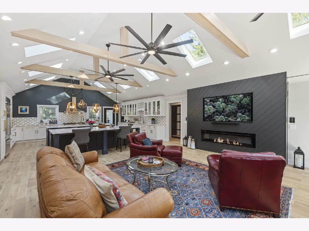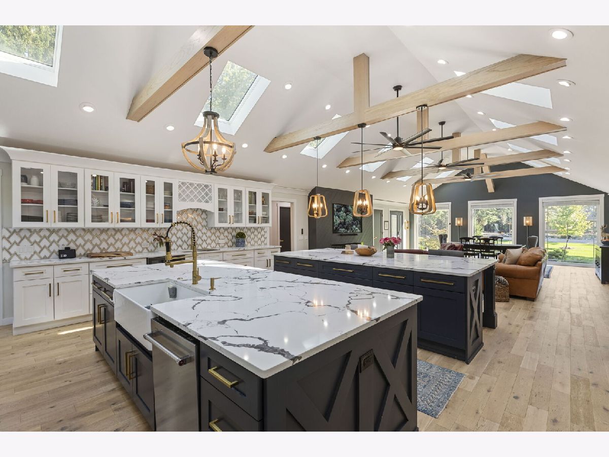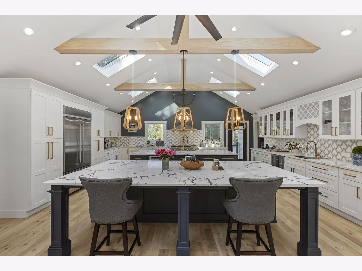 Introducing a level of opulence Inverness has been yearning for, a discrete tree lined street leads to a cul-de-sac where a prominent custom designed ranch with a new circle drive outlines the parameter of 1.27 acres. Guests are greeted with a charming front patio ideal for a courtyard ambiance and a covered front porch that can write its own song. Upon entering there is an overwhelming emotional attraction to the expansive open footprint with vaulted ceilings, skylights, exposed beams and floors that have a white oak with character appearance carried throughout. The dining room is elegant in nature with a full glass visual of the front yard. Open to the dining room is a stunning family room with a modern flush mount fireplace and a recessed TV embraced by shiplap. The brilliantly designed kitchen is one that a top chef can get behind with 2 sprawling islands purposely finished with one being a breakfast bar and the second as a prep area while hosting dinners and or guests. Each island is complimented with a gorgeous selection of quartz counters, and contrasting cabinets. The perimeter of the kitchen is customized with 42" shaker and glass facade cabinets, stunning back splash, farm sink with additional vegetable sink, phenomenal stainless-steel appliances and exterior access to a balcony. Adjacent to the kitchen on one side are 3 generous bedrooms each with hardwood floors, 1 is a primary suite with an incredible view of the yard, expansive walk-in closet with custom organizers and primary bath that puts spas to shame. The primary is finished with double vanities, independent soaking tub and separate shower complimented by a gorgeous tile selection. The remaining 2 bedrooms on the same side of the home share a chic hallway bathroom with a double vanity and shower/tub combination. On the opposing side of the home is the 4th bedroom with charming views of the yard and an incredible full bathroom with double vanities and separate shower. The main floor also offers a distinguished office with wainscoting, French doors and views of the side yard. Across from the office is a show piece laundry room with bran doors, 42" shaker cabinets, quartz counters and sink. Down the hallway is access to a composite deck on the side of the home. Finished lower level with media area, powder room and an extraordinary amount of storage. 3-car attached garage! Serene yard with unobstructed views! Near the park!