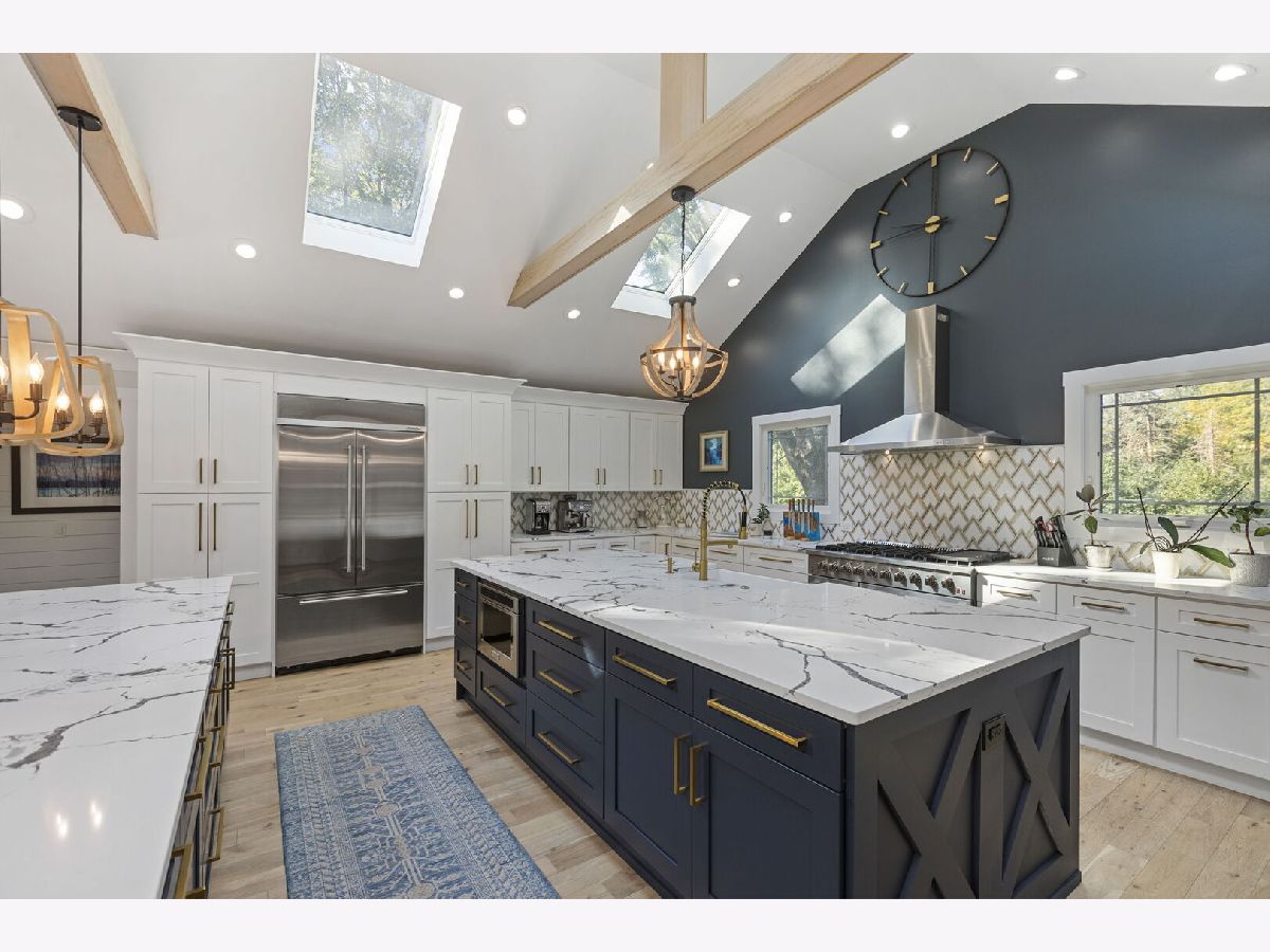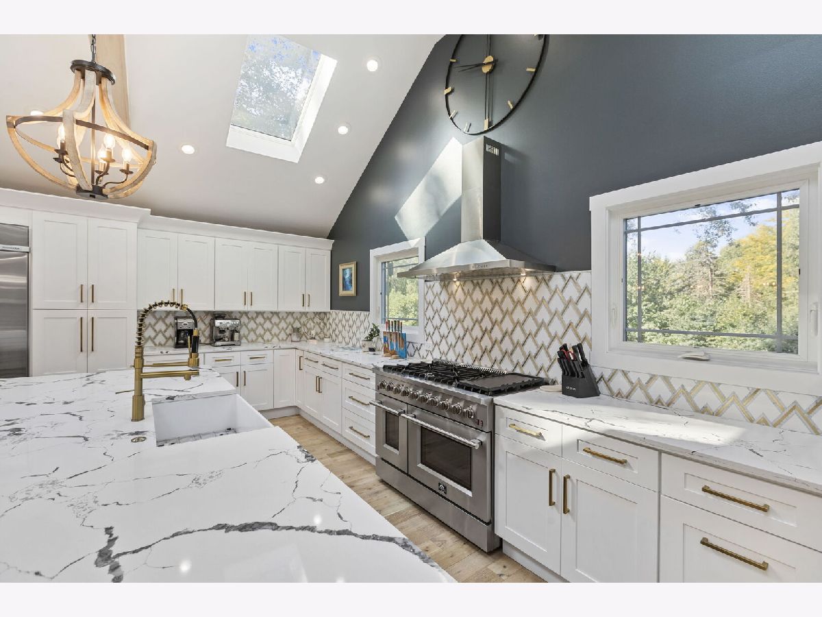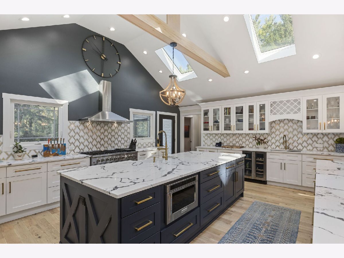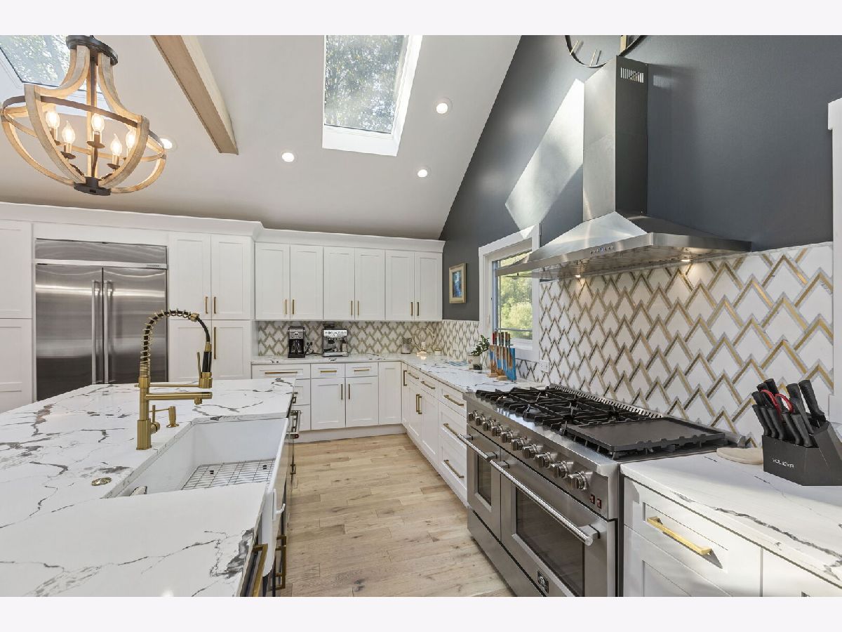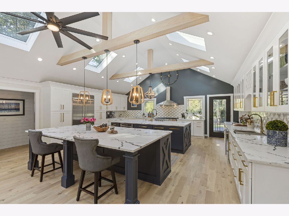 Introducing a level of opulence Inverness has been yearning for, a discrete tree lined street leads to a cul-de-sac where a prominent custom designed ranch with a new circle drive outlines the parameter of 1.27 acres. Guests are greeted with a charming front patio ideal for a courtyard ambiance and a covered front porch that can write its own song. Upon entering there is an overwhelming emotional attraction to the expansive open footprint with vaulted ceilings, skylights, exposed beams and floors that have a white oak with character appearance carried throughout. The dining room is elegant in nature with a full glass visual of the front yard. Open to the dining room is a stunning family room with a modern flush mount fireplace and a recessed TV embraced by shiplap. The brilliantly designed kitchen is one that a top chef can get behind with 2 sprawling islands purposely finished with one being a breakfast bar and the second as a prep area while hosting dinners and or guests. Each island is complimented with a gorgeous selection of quartz counters, and contrasting cabinets. The perimeter of the kitchen is customized with 42" shaker and glass facade cabinets, stunning back splash, farm sink with additional vegetable sink, phenomenal stainless-steel appliances and exterior access to a balcony. Adjacent to the kitchen on one side are 3 generous bedrooms each with hardwood floors, 1 is a primary suite with an incredible view of the yard, expansive walk-in closet with custom organizers and primary bath that puts spas to shame. The primary is finished with double vanities, independent soaking tub and separate shower complimented by a gorgeous tile selection. The remaining 2 bedrooms on the same side of the home share a chic hallway bathroom with a double vanity and shower/tub combination. On the opposing side of the home is the 4th bedroom with charming views of the yard and an incredible full bathroom with double vanities and separate shower. The main floor also offers a distinguished office with wainscoting, French doors and views of the side yard. Across from the office is a show piece laundry room with bran doors, 42" shaker cabinets, quartz counters and sink. Down the hallway is access to a composite deck on the side of the home. Finished lower level with media area, powder room and an extraordinary amount of storage. 3-car attached garage! Serene yard with unobstructed views! Near the park!