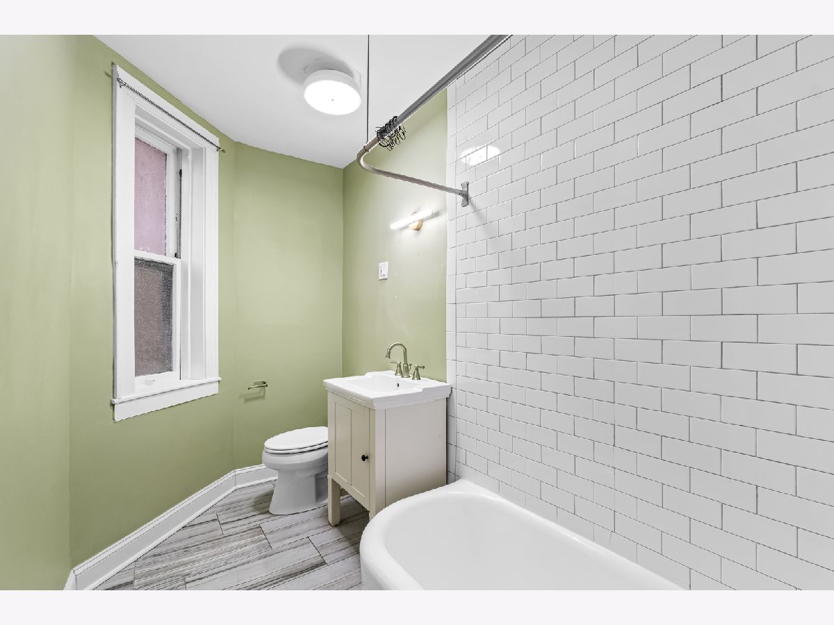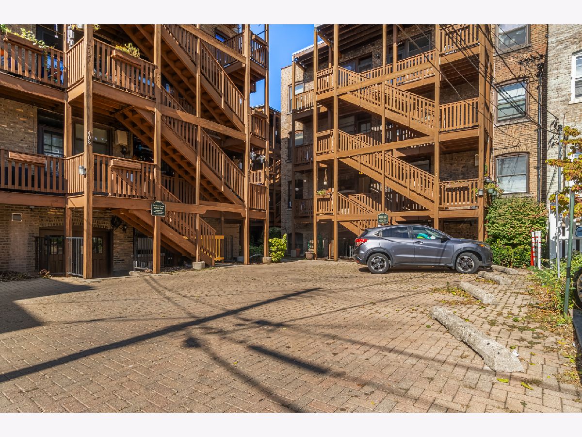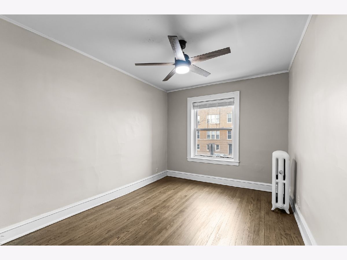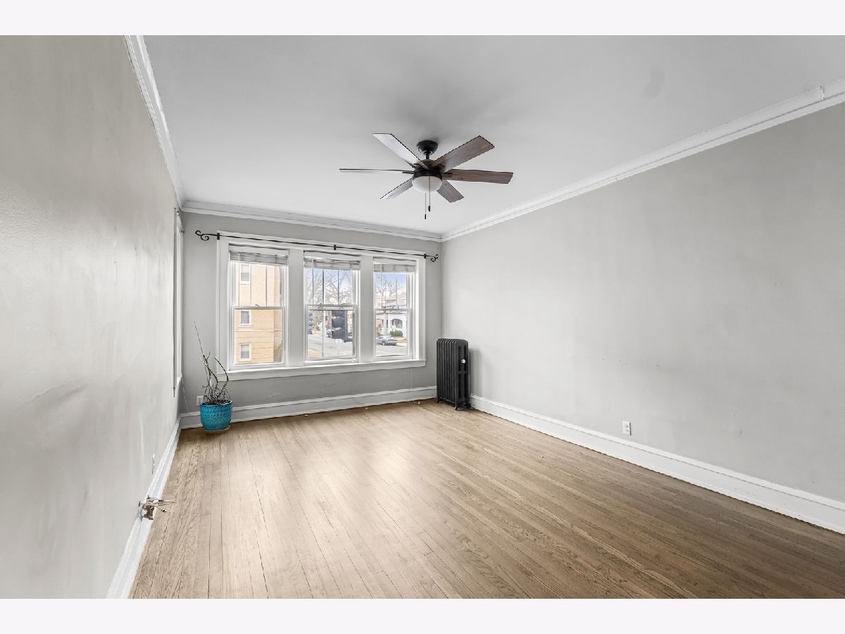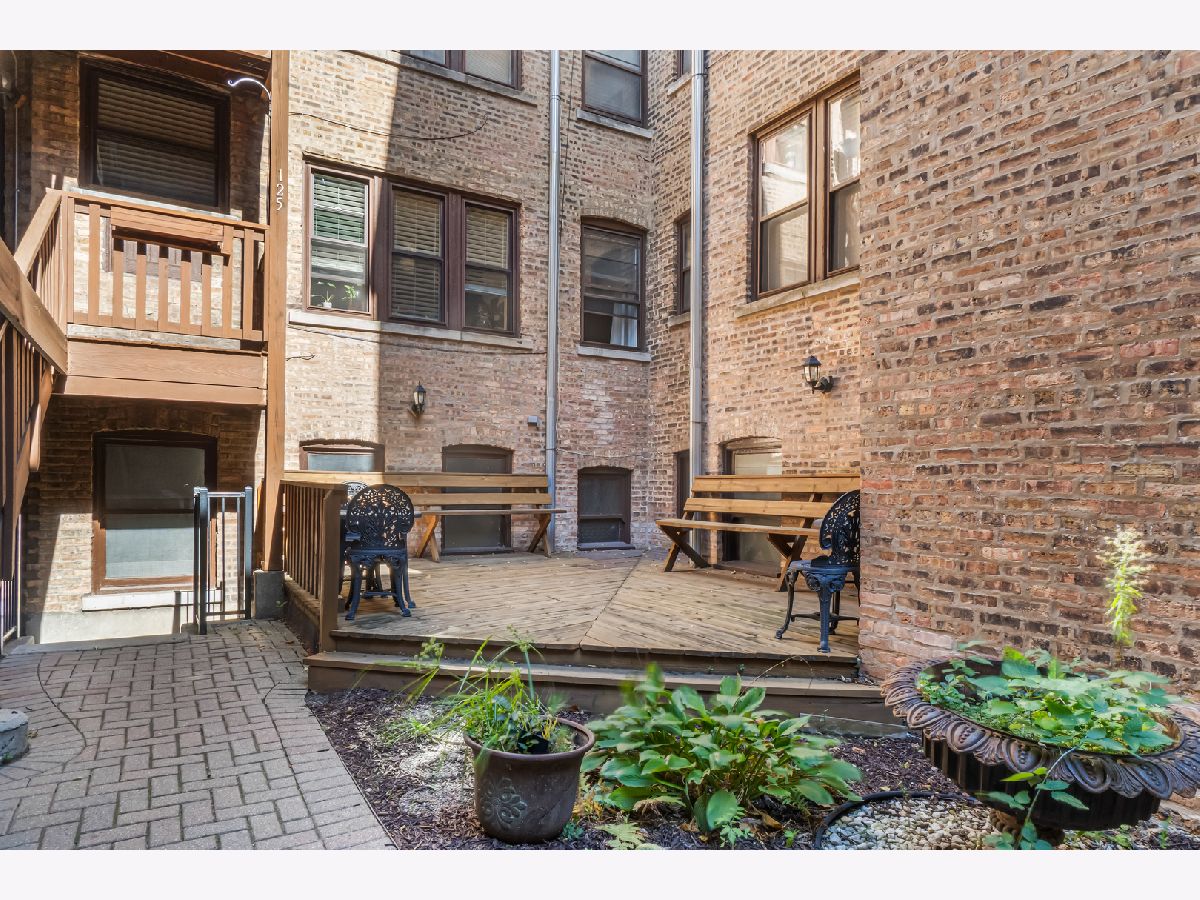 Updated raised first-floor vintage condo featuring a refreshed bathroom, new front windows, and fresh paint throughout. The kitchen offers white cabinetry, stainless steel appliances, butcher block countertops, subway tile backsplash, under-cabinet lighting, and a washer/dryer combo. Spacious living room, dining room, and bedroom with ample closet space. Classic architectural details including arched doorways and natural light from both east and west exposures. Enjoy outdoor space on the rear deck with room for seating or relax on the community patio. Additional features include a large storage unit, coin laundry, and an exercise room in the basement. FHA-approved and professionally managed building with low taxes. Conveniently located near both the Green and Blue Line trains.