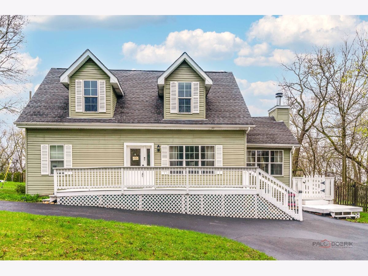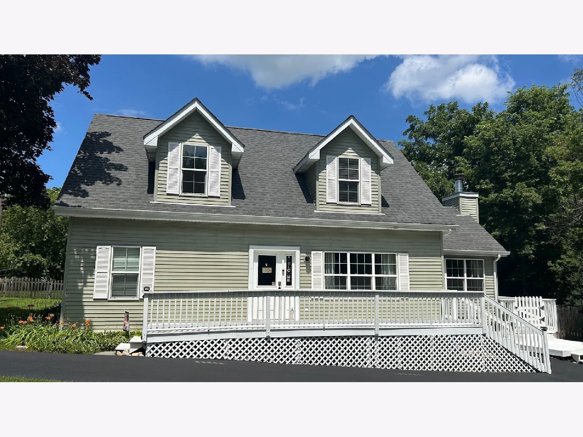 LAKE RIGHTS, PRIVATE PIER & SHORE STATION ON THE CHAIN O'LAKES | FULLY FENCED YARD | CAPE COD CHARM. Picture your weekends starting with coffee on the expansive front porch, then heading out for a morning cruise, fishing off your private pier, or spending the day boating across Bluff Lake and the connected Chain O'Lakes. Just minutes from your front door, this is the lake lifestyle you are searching for, where every day feels like a getaway. Inside, beautiful hardwood flooring spans the main level, creating a warm and cohesive feel while enhancing the bright, open-concept layout. Natural light pours in, highlighting the seamless flow between the dining area and the kitchen, making both everyday living and entertaining feel effortless. The kitchen is thoughtfully designed with a large breakfast bar for casual seating, granite countertops, a classic subway tile backsplash, quality appliances, and an abundance of cabinetry to keep everything organized. Whether you're preparing a quick breakfast before heading out on the water or hosting friends after a full day on the lake, this space easily adapts to your lifestyle. The kitchen opens directly to the family room, where soaring cathedral ceilings add volume and character, while a charming stone wood-burning fireplace serves as a stunning focal point, creating a warm and inviting space to relax and unwind. The main-level primary bedroom offers a comfortable and private retreat, complete with a spacious walk-in closet. A full bath and a convenient laundry/mudroom on this level add everyday functionality. Upstairs, two additional bedrooms and a second full bath provide flexible living options, perfect for guests, family members, or a home office. The unfinished basement presents valuable storage and the opportunity to expand your living space over time, whether you envision a recreation room, home gym, or additional entertaining space. Outside, the tree-lined, fully fenced backyard creates a private outdoor escape with a spacious deck and playset, perfect for summer BBQs, outdoor dining, and relaxing evenings. With lake rights, a private pier, and shore station on Bluff Lake, you can enjoy boating, jet skiing, kayaking, and fishing whenever you choose. A 2-car detached garage with attached shed completes the package, making it easy to store all your lake gear and toys.