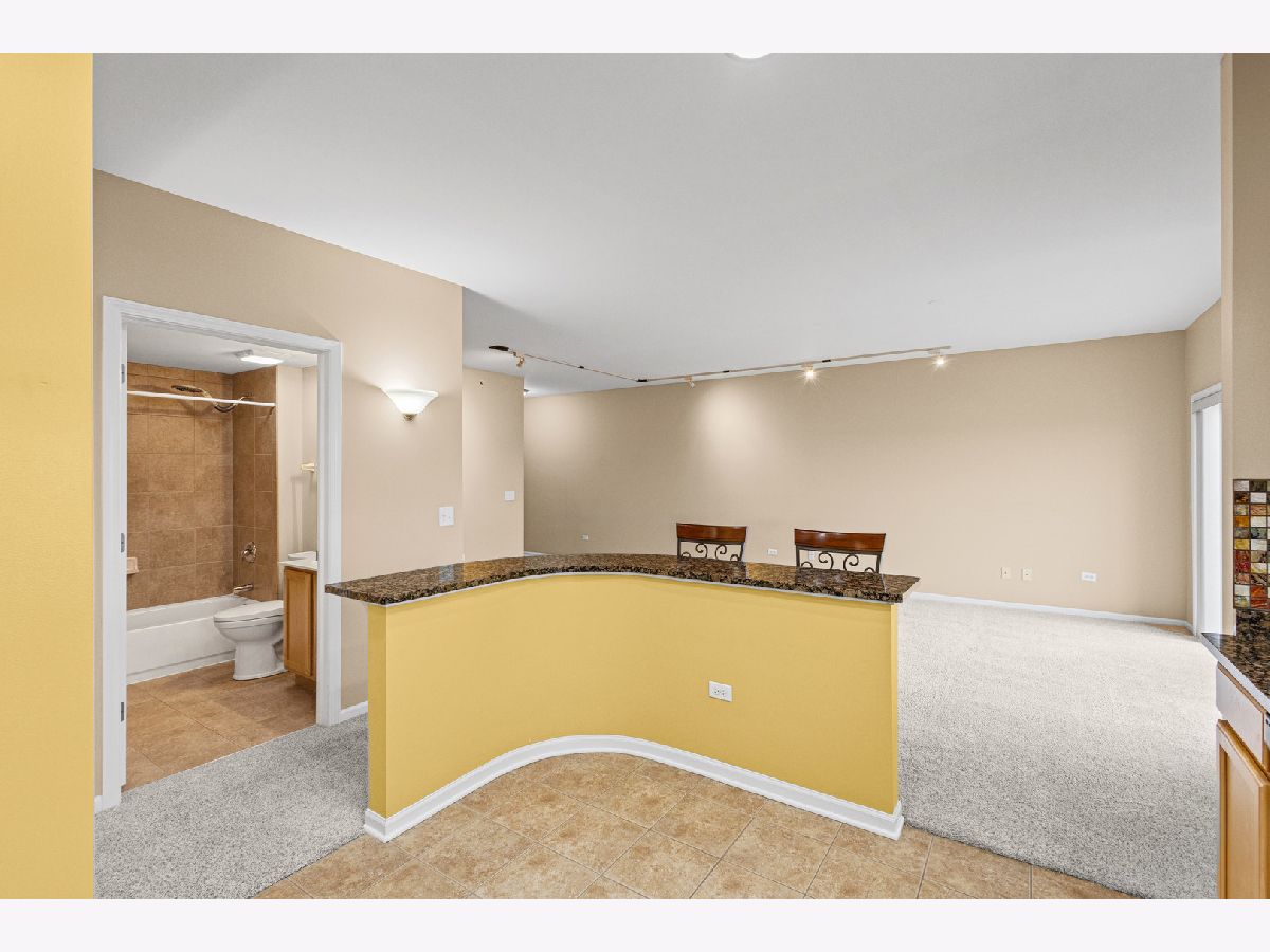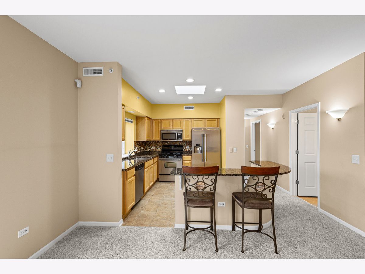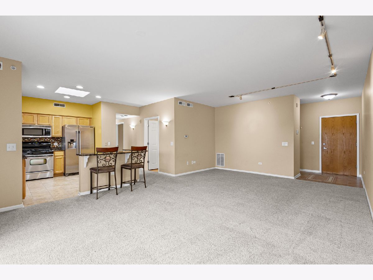 Prepare to be impressed by the exceptional quality and thoughtful details throughout this stunning top-floor corner unit. Bathed in natural light, the spacious open-concept layout offers sweeping views and an inviting atmosphere perfect for both everyday living and entertaining. The expansive living and dining area seamlessly connects to a beautifully updated kitchen, featuring a skylight, granite countertops, breakfast bar, stainless steel appliances, canned lighting and a designer tile backsplash. The primary suite provides a private retreat with a walk-in closet complete with a custom organization system and a well-appointed ensuite bath with a walk-in shower with a seat for convenience. Additional highlights include in-unit laundry including a full size stackable washer and gas dryer, a ceiling fan, indoor sprinklers, custom shower door, and a wall-mounted TV in the primary bedroom. This unit also includes one heated garage space conveniently located near the entry (space #2) and a storage unit (#28) located on the second floor of the building. Ideally situated near schools, parks, a golf course, Route 53, and Twin Lakes/Salt Creek Park District, this location offers both convenience and lifestyle. Walking distance to the train and possibly where the Bears will be playing in their new stadium! Rentals are permitted, though currently subject to a waitlist. Taxes do not reflect a homeowner exemption and may be lower if owner-occupied.