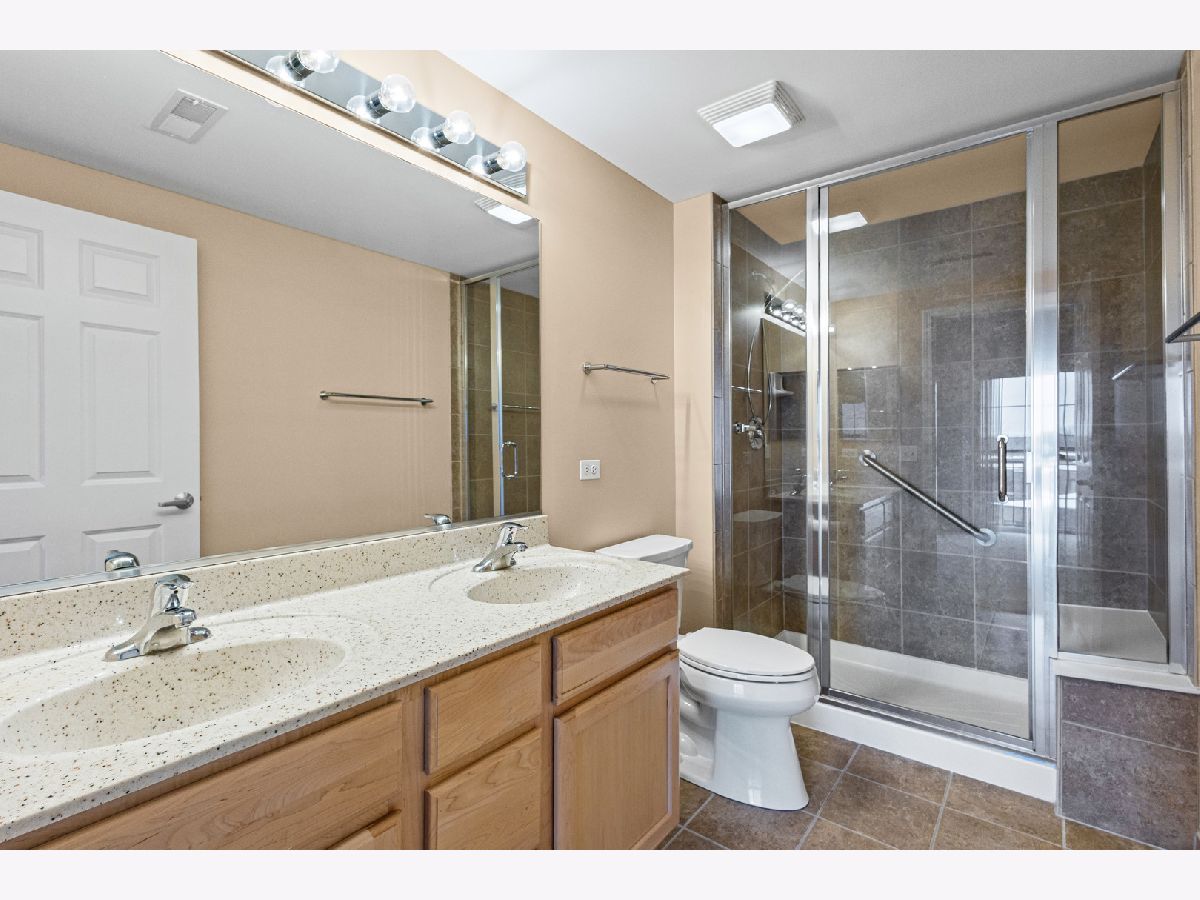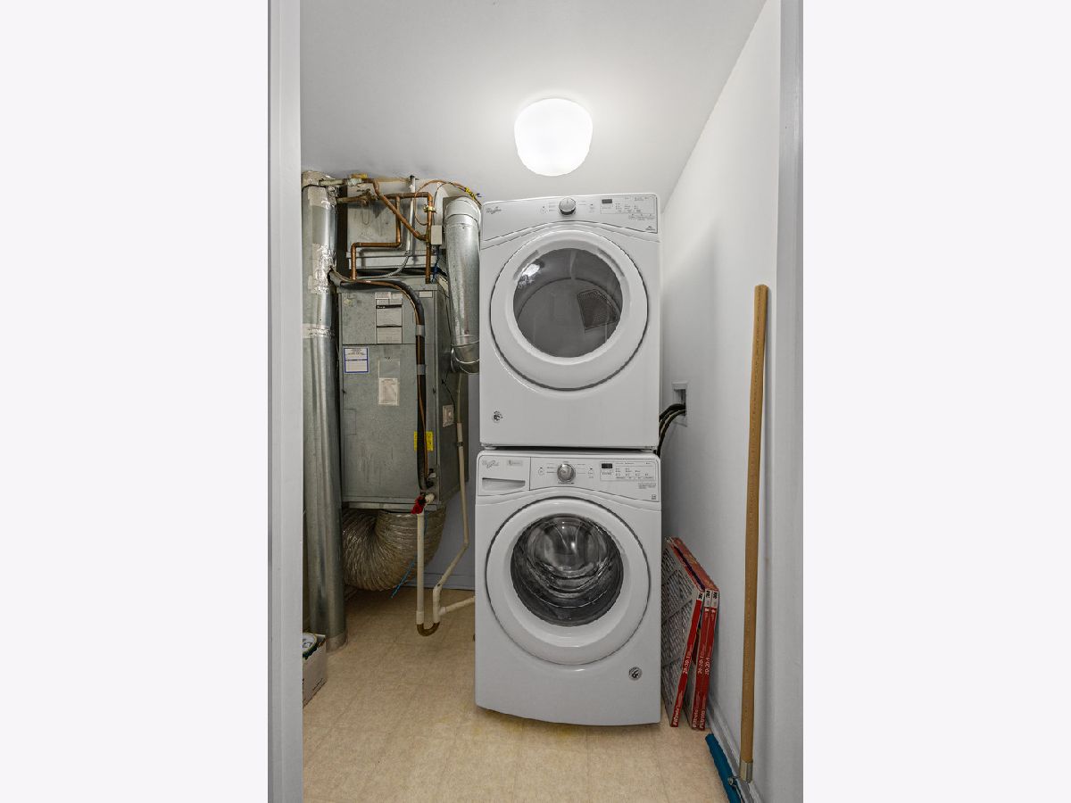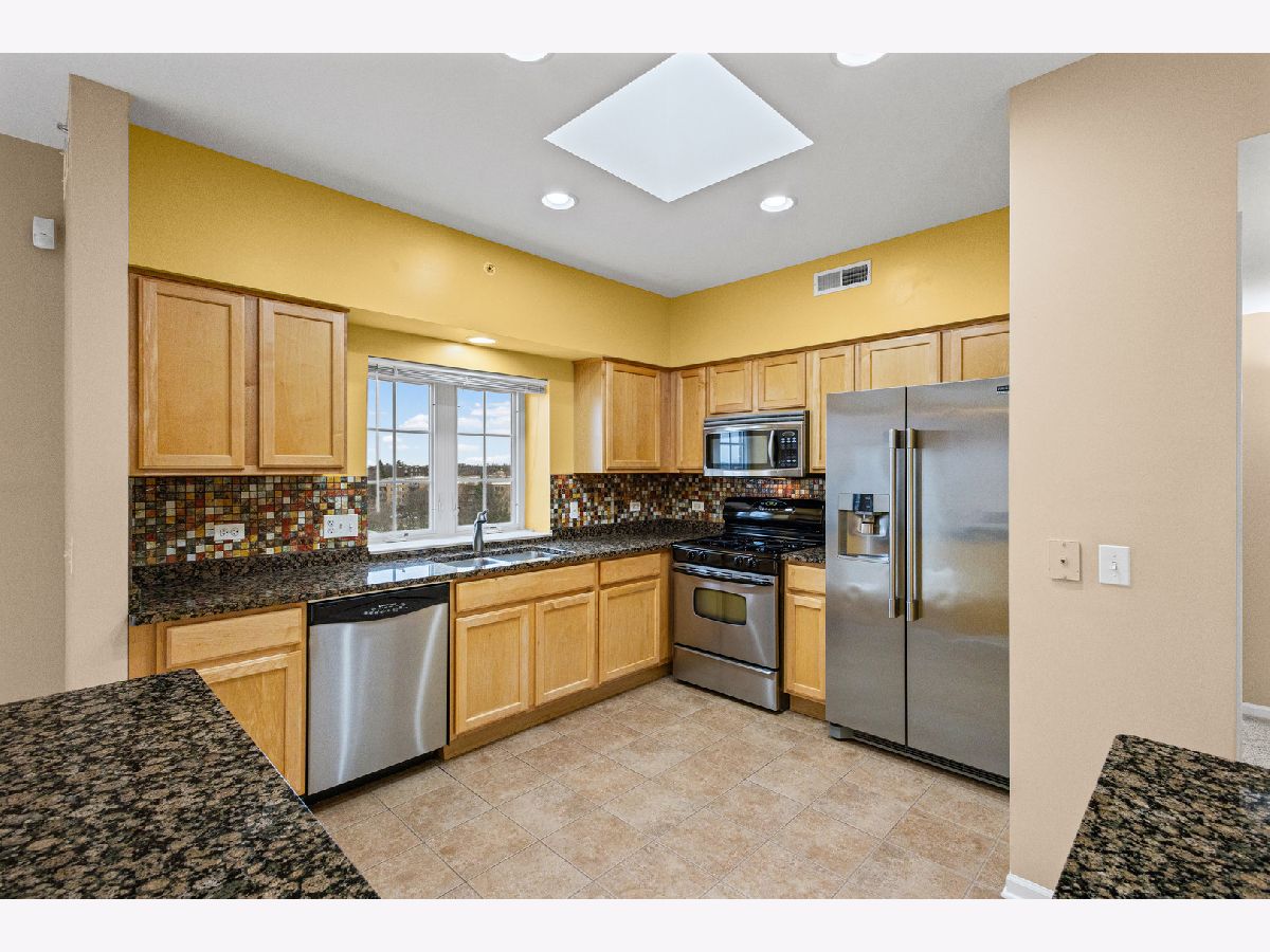 Prepare to be impressed by the exceptional quality and thoughtful details throughout this stunning top-floor corner unit. Bathed in natural light, the spacious open-concept layout offers sweeping views and an inviting atmosphere perfect for both everyday living and entertaining. The expansive living and dining area seamlessly connects to a beautifully updated kitchen, featuring a skylight, granite countertops, breakfast bar, stainless steel appliances, canned lighting and a designer tile backsplash. The primary suite provides a private retreat with a walk-in closet complete with a custom organization system and a well-appointed ensuite bath with a walk-in shower with a seat for convenience. Additional highlights include in-unit laundry including a full size stackable washer and gas dryer, a ceiling fan, indoor sprinklers, custom shower door, and a wall-mounted TV in the primary bedroom. This unit also includes one heated garage space conveniently located near the entry (space #2) and a storage unit (#28) located on the second floor of the building. Ideally situated near schools, parks, a golf course, Route 53, and Twin Lakes/Salt Creek Park District, this location offers both convenience and lifestyle. Walking distance to the train and possibly where the Bears will be playing in their new stadium! Rentals are permitted, though currently subject to a waitlist. Taxes do not reflect a homeowner exemption and may be lower if owner-occupied.