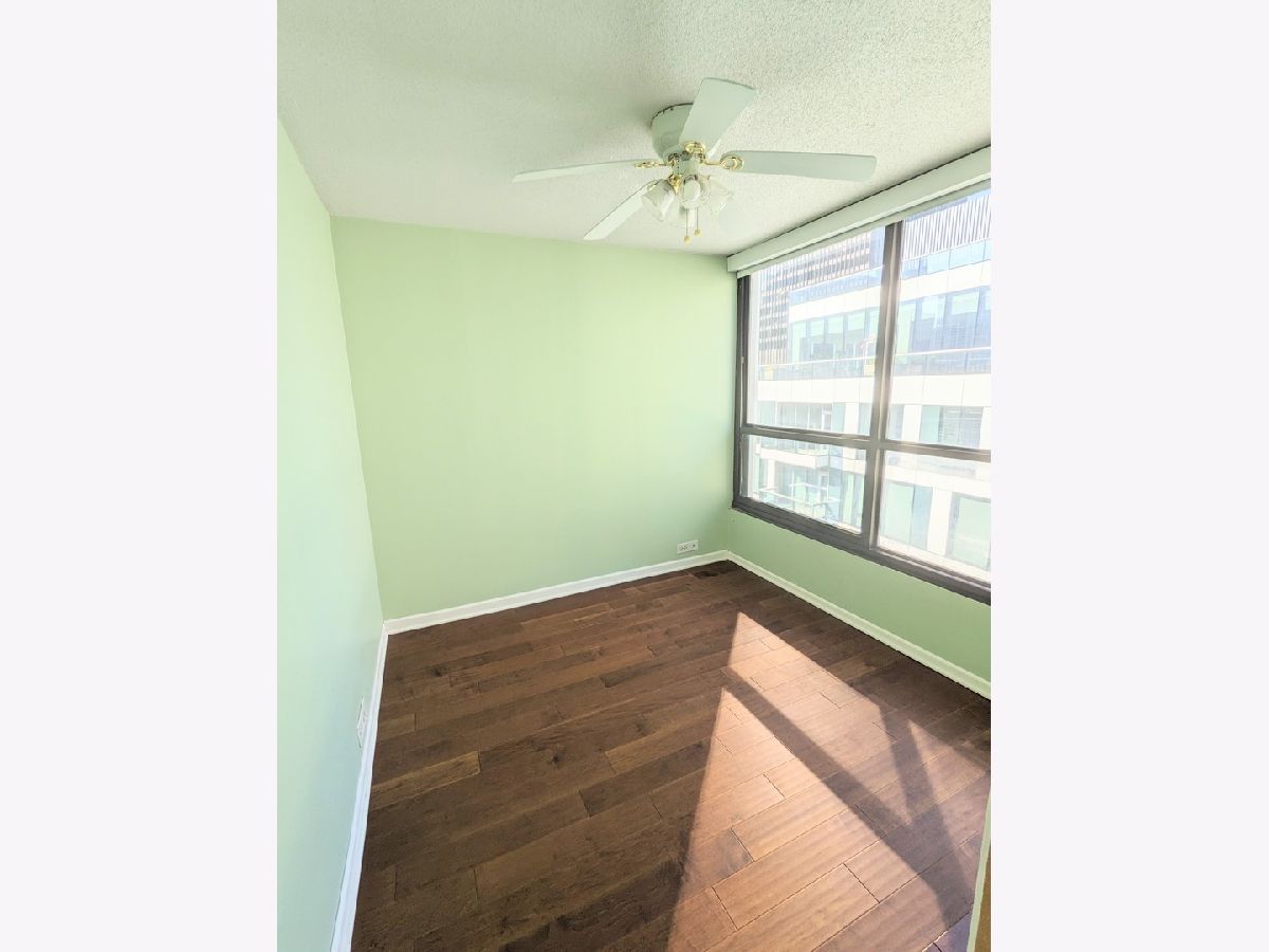 Renovated junior one-bedroom unit is ready for immediate move-in. Enjoy excellent natural light and well-laid-out floorplan, including plenty of storage! Entry has a coat closet, small den space has built-in shelves, and unit has a walk-in closet AND basement storage unit. Features hardwood floors throughout with Hunter Douglas roller blinds, just installed last year. Kitchen upgrades include solid wood cabinets and granite countertops. Location is unbeatable! Walk to the river and Lake Michigan, multiple subway/bus lines, and the city's best shopping and restaurants. Internet and cable TV are included in the monthly assessment and building offers 24/7 doorperson, fitness center, swimming pool and hot tub, terrace, and business center. Parking is currently leased and can be purchased afterward.