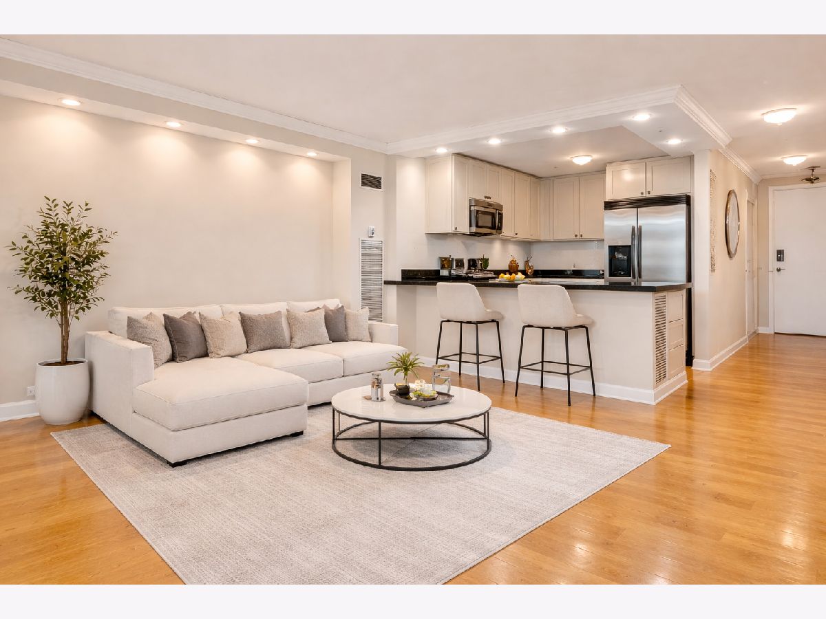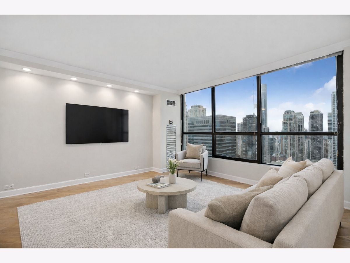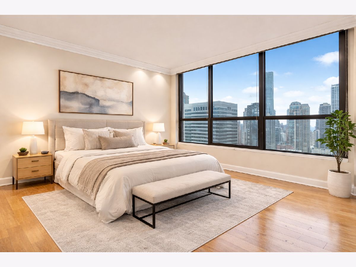 Spectacular high-floor 1-bedroom with a beautifully remodeled kitchen in the full-amenity River Plaza, ideally located along the Chicago River in the heart of River North. Bright and airy with stunning city views, this residence features hardwood flooring throughout and a thoughtfully designed layout. The updated kitchen offers stainless steel appliances, shaker-style cabinetry, granite countertops, breakfast bar, and subway tile backsplash. Spacious living and dining area with excellent natural light. Generous bedroom with ample closet space including a large walk-in entry closet plus additional storage. Well-appointed bath with marble vanity, natural stone tile, and multi-jet shower system. Freshly painted in 2025 and move-in ready. Full-service building with 24-hour door staff, indoor pool, hot tub, sundeck, fitness center, hospitality room, business center, package receiving, valet cleaners, and on-site management. HOA includes heat, A/C, cable, and high-speed internet. Strong reserves at 1,838,000 (2/28/2025) with no planned special assessments. Owner occupancy 64/100. No rental cap. One-year lease minimum. No in-unit laundry permitted. On-site laundry available. Garage parking available for lease or purchase. Prime location steps to the Chicago Riverwalk, Michigan Avenue, dining, shopping, nightlife, and public transportation. Tenant pays 2300 per month, will not be renewing the lease and it is occupied until June 30th.
