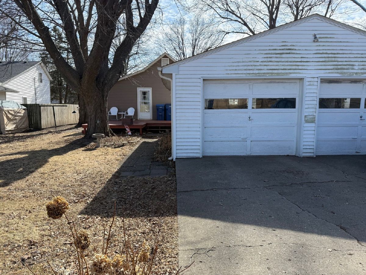 Very nice 2 bedroom, 1 bath home on 2 lots (12 & 13). Great location on a dead-end street at the edge of town. Street access from both the front and rear of the property. 2-car detached garage with access at the rear of the property. Many updates completed in 2012; roof, siding, gutters on home and garage, furnace & central air. Water heater replaced in the last 6 months. Large eat-in kitchen with newer stove and refrigerator. Access to deck from the kitchen with a step down to the adjacent garage. The extra lot is partially fenced. This is a very comfortable home with many outdoor features.