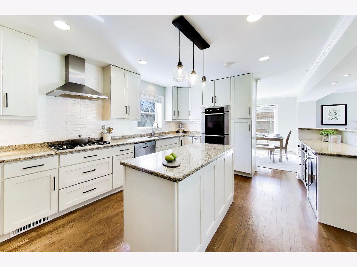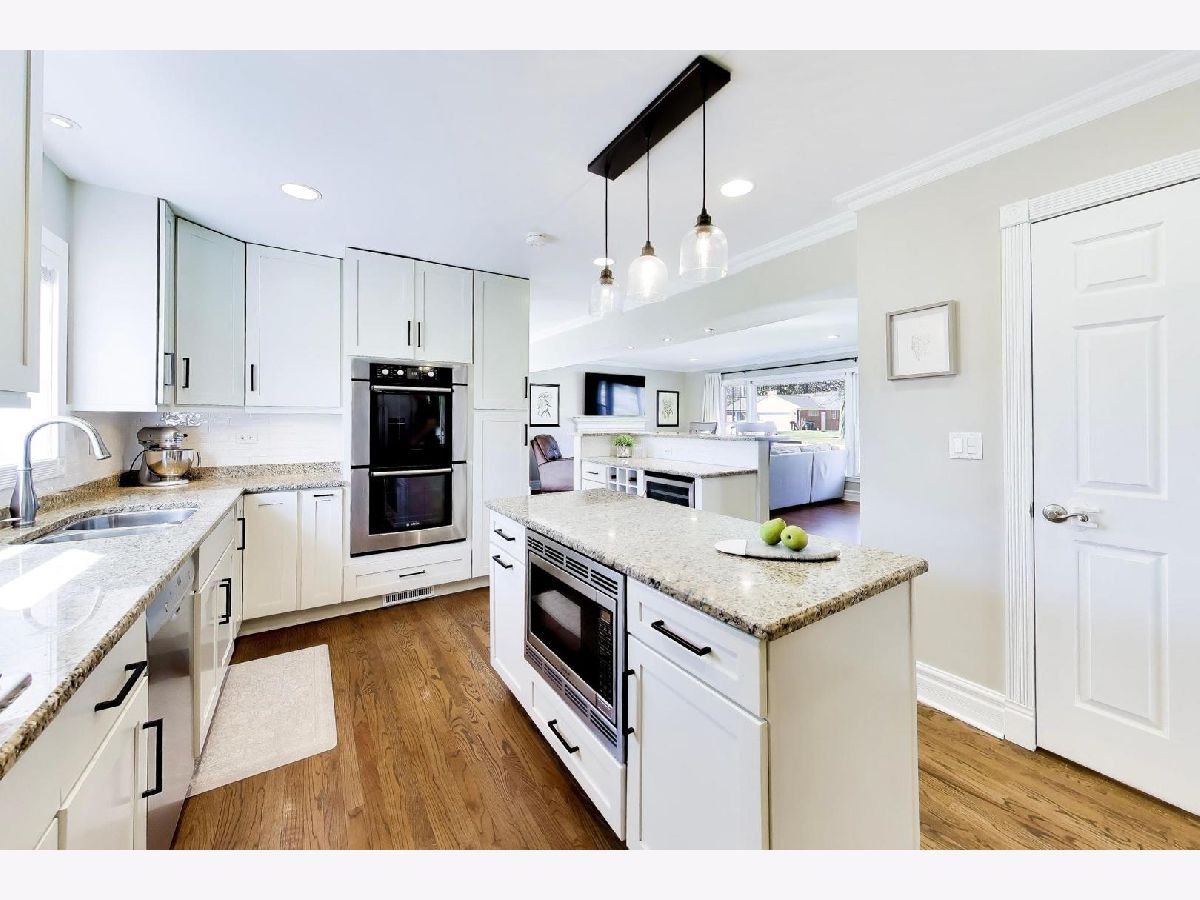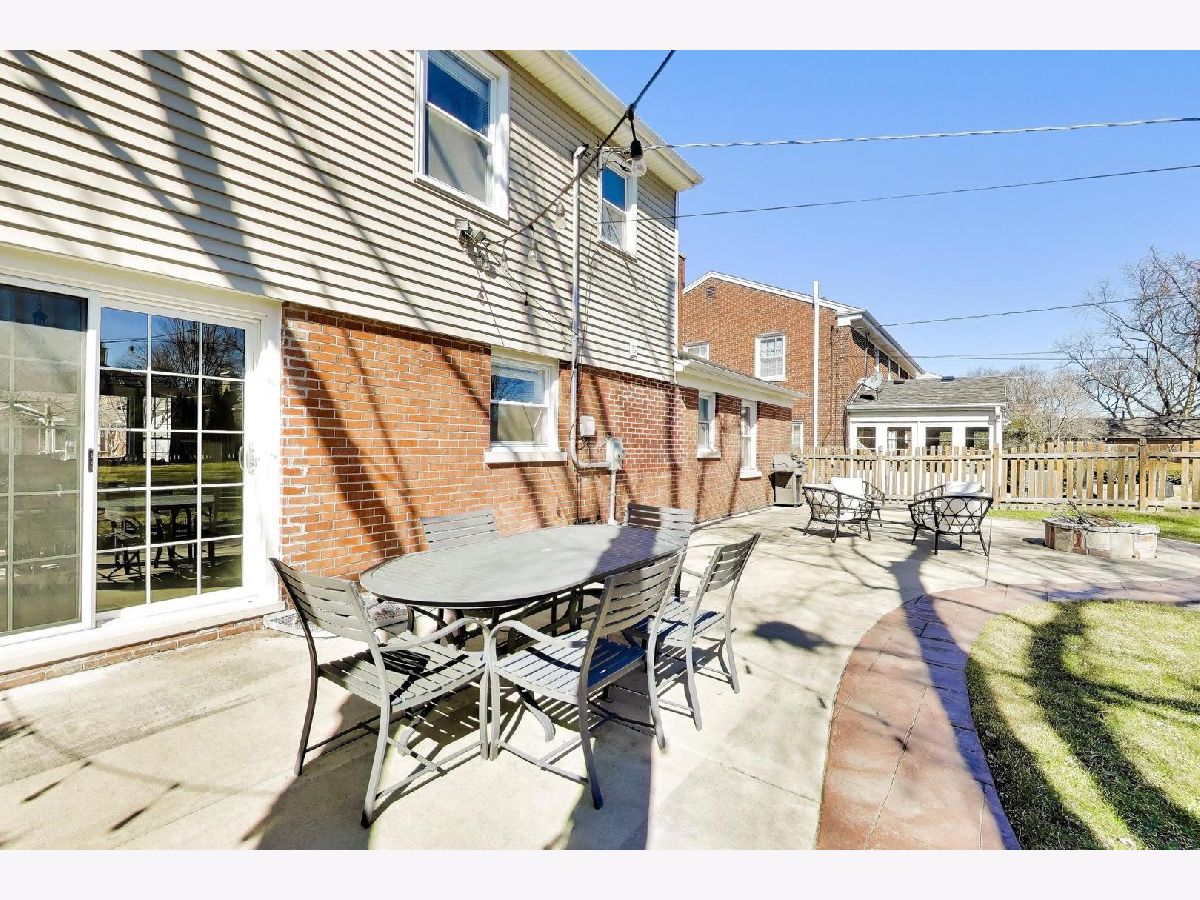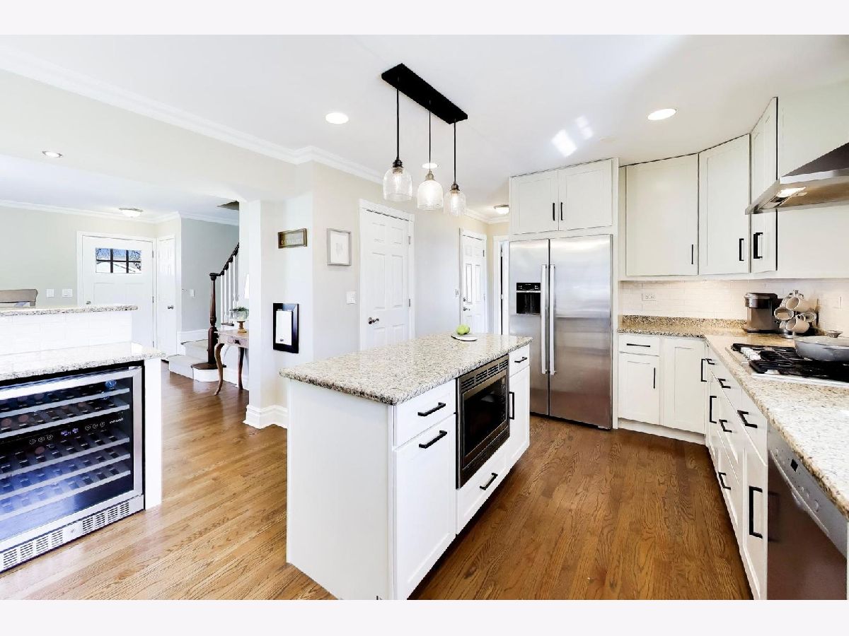 An exceptional opportunity to own this beautifully updated 4-bedroom colonial with coveted two car attached garage in one of Mount Prospect's most desirable neighborhoods. From the moment you step inside, the bright and open first floor with gleaming hardwood floors creates a warm and inviting atmosphere designed for both everyday living and effortless entertaining. The stunning kitchen is truly the centerpiece of the home, featuring abundant cabinetry, expansive granite countertops, stainless steel appliances (including double oven), a versatile island, and a breakfast bar with beverage refrigerator perfect for gathering. The kitchen flows seamlessly into the living and dining rooms, where sliding glass doors open to the backyard, creating a natural connection between indoor and outdoor living. Floorplan also includes flexibility of a first floor bedroom and full bathroom. Upstairs, three spacious bedrooms offer generous closet storage and continued hardwood flooring. The well-appointed second floor bathroom features a double vanity and tub, combining style and functionality. The finished basement adds valuable additional living space with a cozy second fireplace and convenient half bath, ideal for a recreation room, media space, or playroom. Outside, the oversized fully fenced yard offers a true backyard retreat with a large patio, firepit, and storage shed. All of this just one block from Mount Prospect Golf Club and minutes from parks, top-rated schools, and vibrant downtown Mount Prospect. Nothing to do here but move in and enjoy!