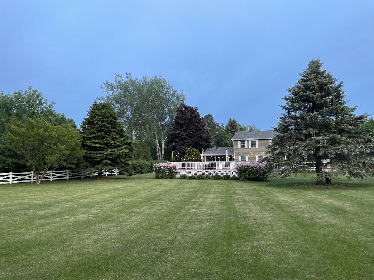 ABSOLUTELY GORGEOUS GEORGIAN ON 1.37 ACRES OF HORSE-FRIENDLY PROPERTY! Fully updated with a custom kitchen featuring oak cabinets, Corian countertops, an island, and hardwood floors. The great room's vaulted ceiling and walls of windows offer stunning views. All bathrooms are beautifully updated, including the luxurious primary suite with whirlpool tub, double sinks, and a private balcony for morning coffee or quiet evenings. Recent upgrades: new roof and gutters, freshly painted exterior, and fenced backyard. Enjoy a huge entertaining deck and a finished basement ideal for a rec room, office, or gym. This exceptional home will not last-bring your buyers soon!