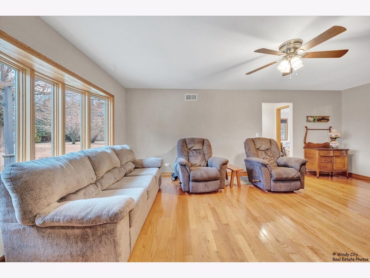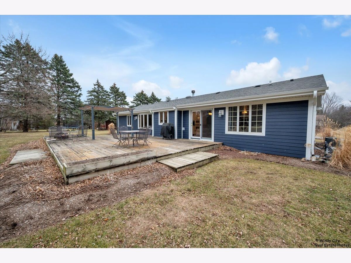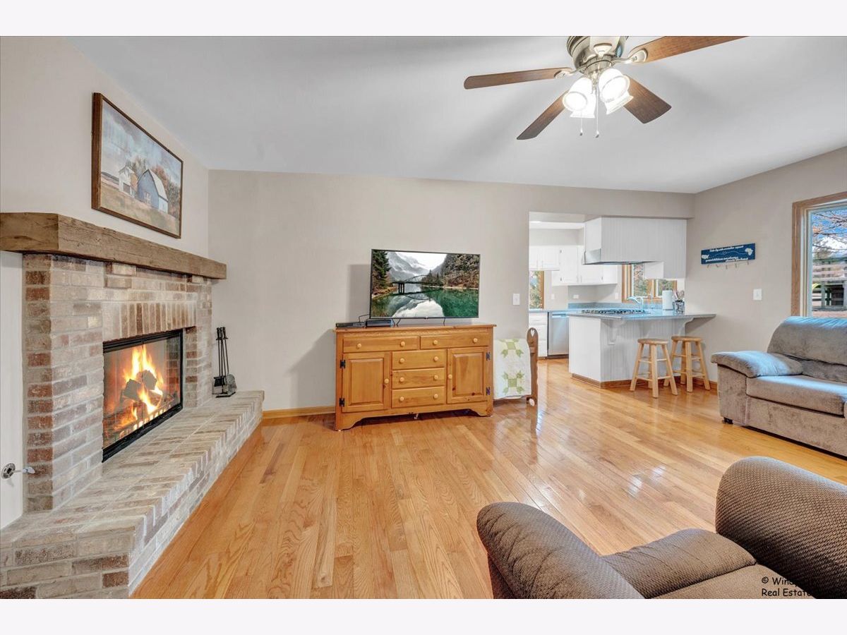 Space like this is hard to find! Set on nearly an acre and perched on a gentle hill, this beautifully updated Hampshire ranch offers privacy, views, and room to truly enjoy the outdoors. Step inside to warm hardwood floors throughout the main level and a bright, welcoming layout designed for everyday living. The living room is centered around a cozy wood-burning fireplace with a custom insert, gas starter, brick surround, and mantle (fully updated in 2019)-creating the perfect place to gather on cool evenings. The kitchen features a stainless steel refrigerator and dishwasher, while the breakfast bar and separate eating area provide comfortable space for everyday meals and gatherings. Step outside and you'll immediately notice what makes this property so special. The home sits up on a hill and is surrounded by nearly an acre of land, offering beautiful views and space both in the front and the backyard. A deck that runs the full length of the house overlooks the expansive backyard-perfect for summer barbecues, gardening, or simply enjoying the peaceful setting. In the winter, the hill can even offer a great sledding spot-one of those simple seasonal joys that makes a house truly feel like home. The main level offers three bedrooms, including a primary suite with a walk-in closet and private bath, along with the convenience of first-floor laundry. Downstairs, the basement expands your living space with a finished fourth bedroom, bonus room, and full bathroom. The spacious recreation area offers plenty of room for entertaining, hobbies, or additional living space, while the utility and storage areas add valuable functionality. Thoughtful updates throughout provide peace of mind, including new siding, soffits, gutters, and downspouts (2024), bay windows (2024), a new brick paver front entrance and front door (2024), water softening system (2025), sump pump (2022), well water storage tank (2020), fresh interior paint (2026), and the beautifully updated fireplace (2019). The home also includes a new washer and dryer. With space inside and out, meaningful updates, and a picturesque setting that's becoming harder to find, this Hampshire ranch is warm, welcoming, and ready for its next chapter!