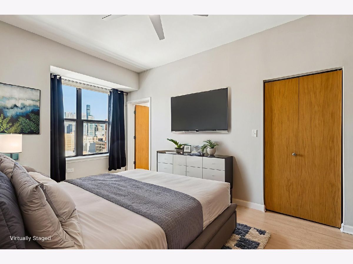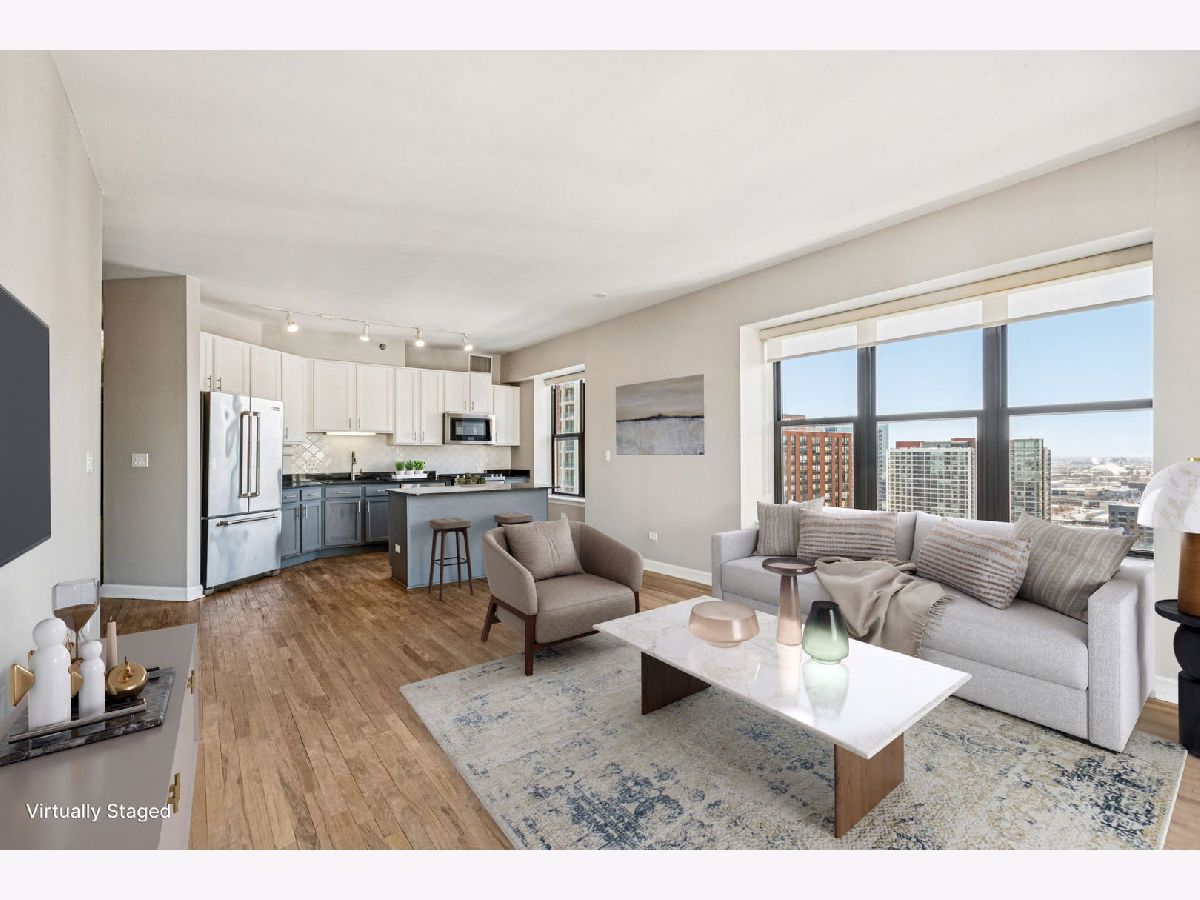 This spacious and open South Loop corner condo truly stands out from other 07-tier units. Over $40,000 in thoughtful upgrades enhance this stunning 2-bedroom, 2-bath residence. Hardwood floors run throughout-no carpet anywhere. The upgraded kitchen features professional-grade stainless steel JennAir appliances, a sleek touch-activated faucet, and a custom-built pantry that adds exceptional storage to the already generous cabinetry. The home is completely move-in ready with upgraded LG Smart washer and dryer. Floor-to-ceiling windows showcase breathtaking Chicago skyline views and unforgettable sunsets. The building has recently completed an extensive lobby renovation and is well managed with strong reserves. Monthly assessments include all utilities except electricity, plus DVR cable and high-speed internet. Residents enjoy full-service amenities including a 24-hour door staff, fitness center, community room, and rooftop terrace. Located in the heart of the South Loop with a Walk Score of 96, everything you need is just steps away. Deeded garage parking available for purchase. Investor friendly building.