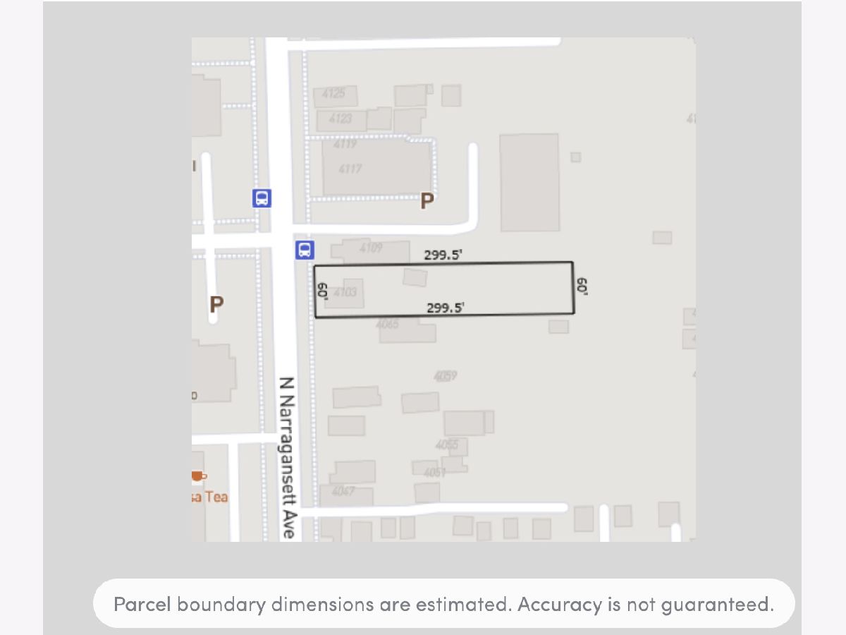 Looking for a Land! This Developer's dream lot alert! Rare .42-acre double-wide lot-60'x299', 17,940 sqft-hits the market on buzzing Narragansett Avenue. Steps from City Colleges of Chicago, this prime parcel features a vacant slab foundation, garage, coach house, and untapped potential. Zoned RS-2, it's flanked by RT-4 zoning-ripe for two-flats, townhouses, or multi-unit magic. Act fast on this 38th Ward standout! property sold as is.