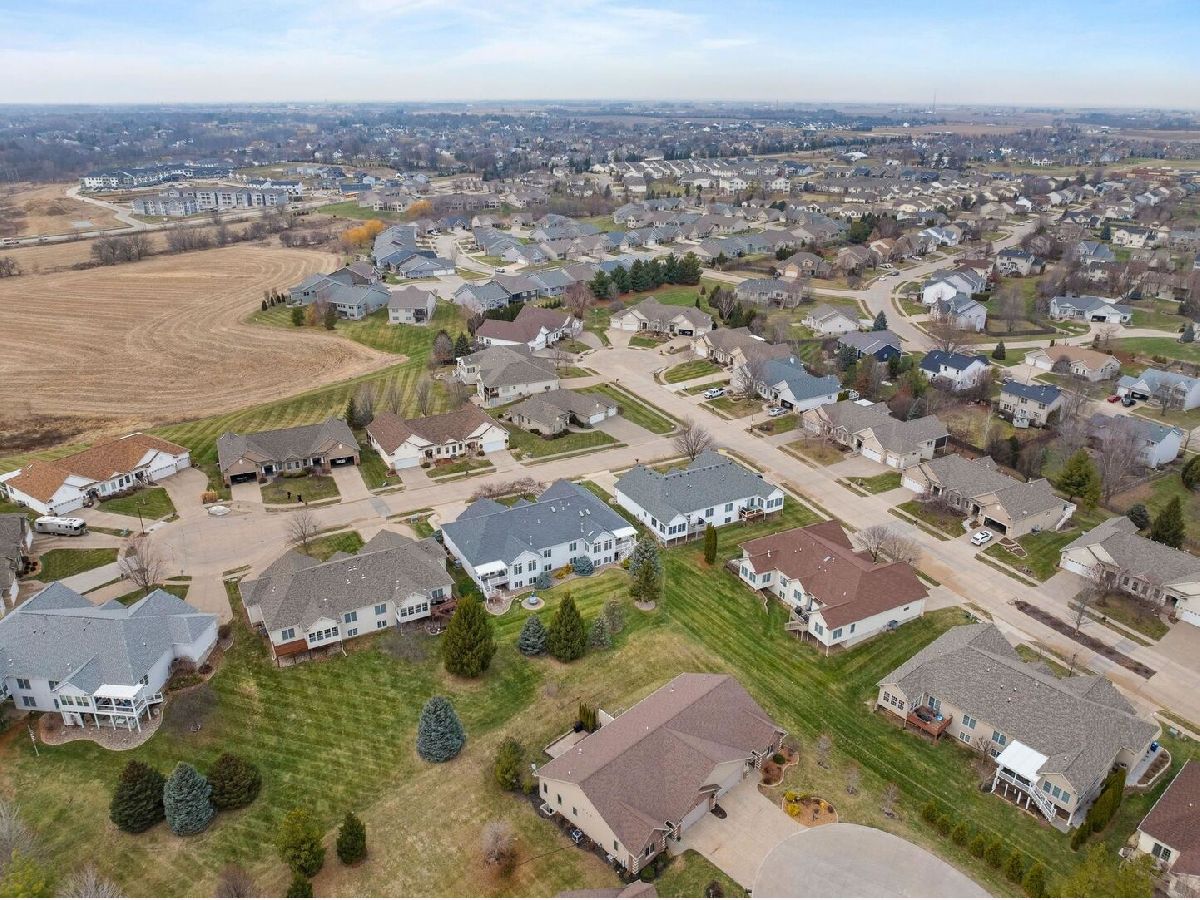 This zero-step entry Bettendorf condo offers effortless living with an open-concept design, 4 bedrooms, 3 baths, and over 2,400 finished square feet! The vaulted ceilings seamlessly connect the living, dining, and kitchen areas! The spacious living room has a gas fireplace. Beautiful kitchen with Custom Cabinets, soft-close doors, a center island with breakfast bar, solid surface countertops, stainless steel appliances, and pantry! The main-level primary suite includes a private bath, and walk-in closet. The finished lower level offers a large rec room, third bedroom & fourth bedrooms, full bath, and abundant storage. Composite deck off the back, Cul-de-sac and backs to a peaceful green space! Convienient location near shopping, schools, parks, & interstate access! HOA covers snow & lawn care!