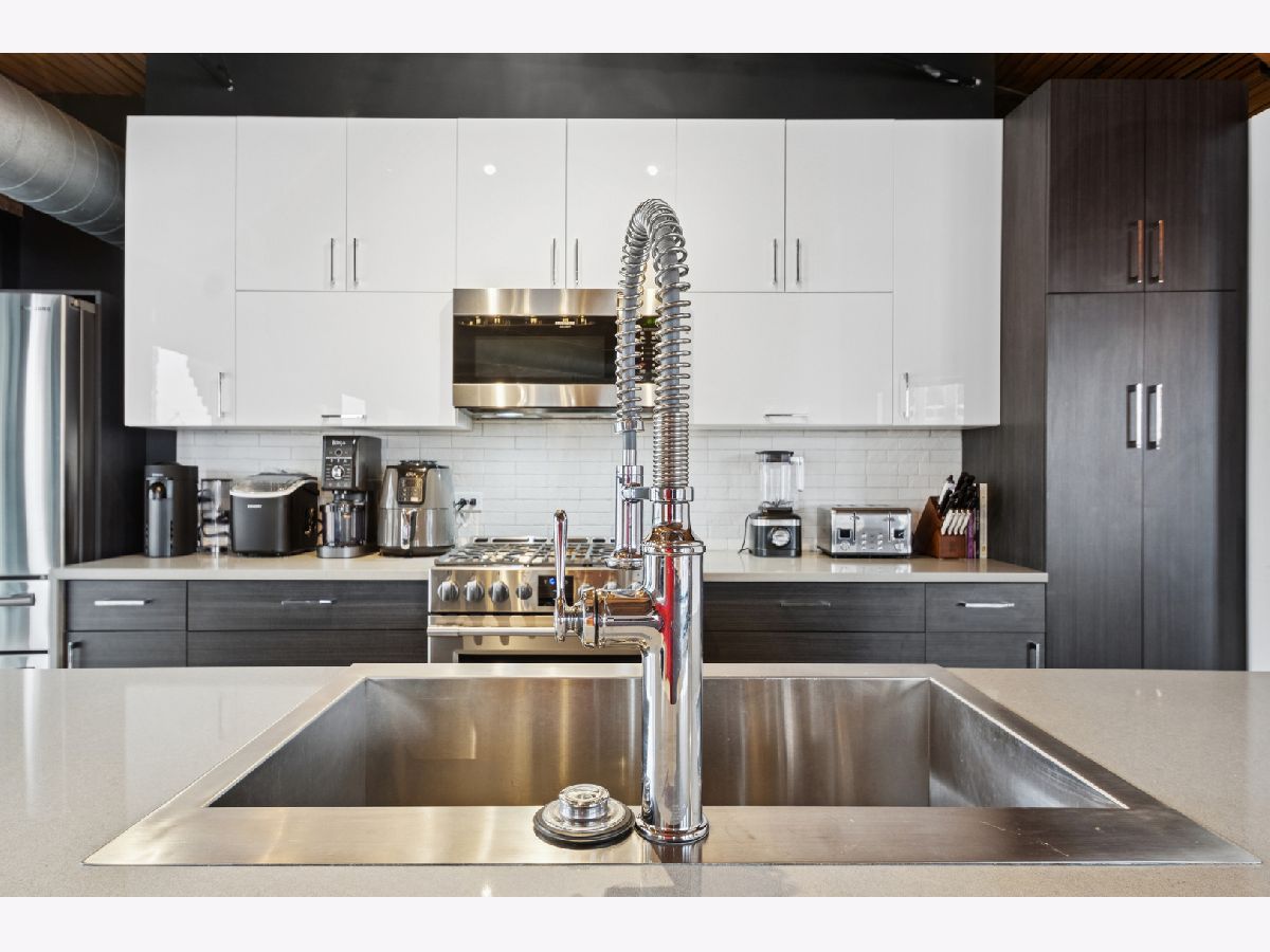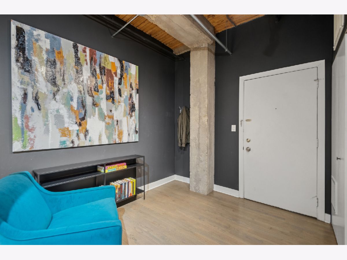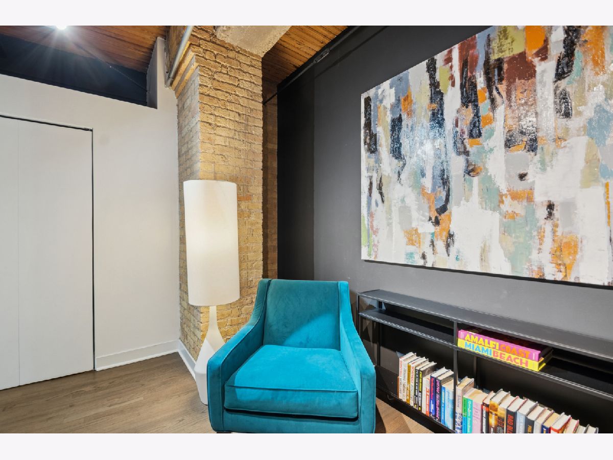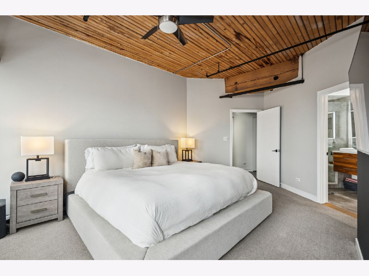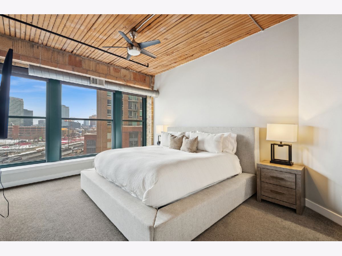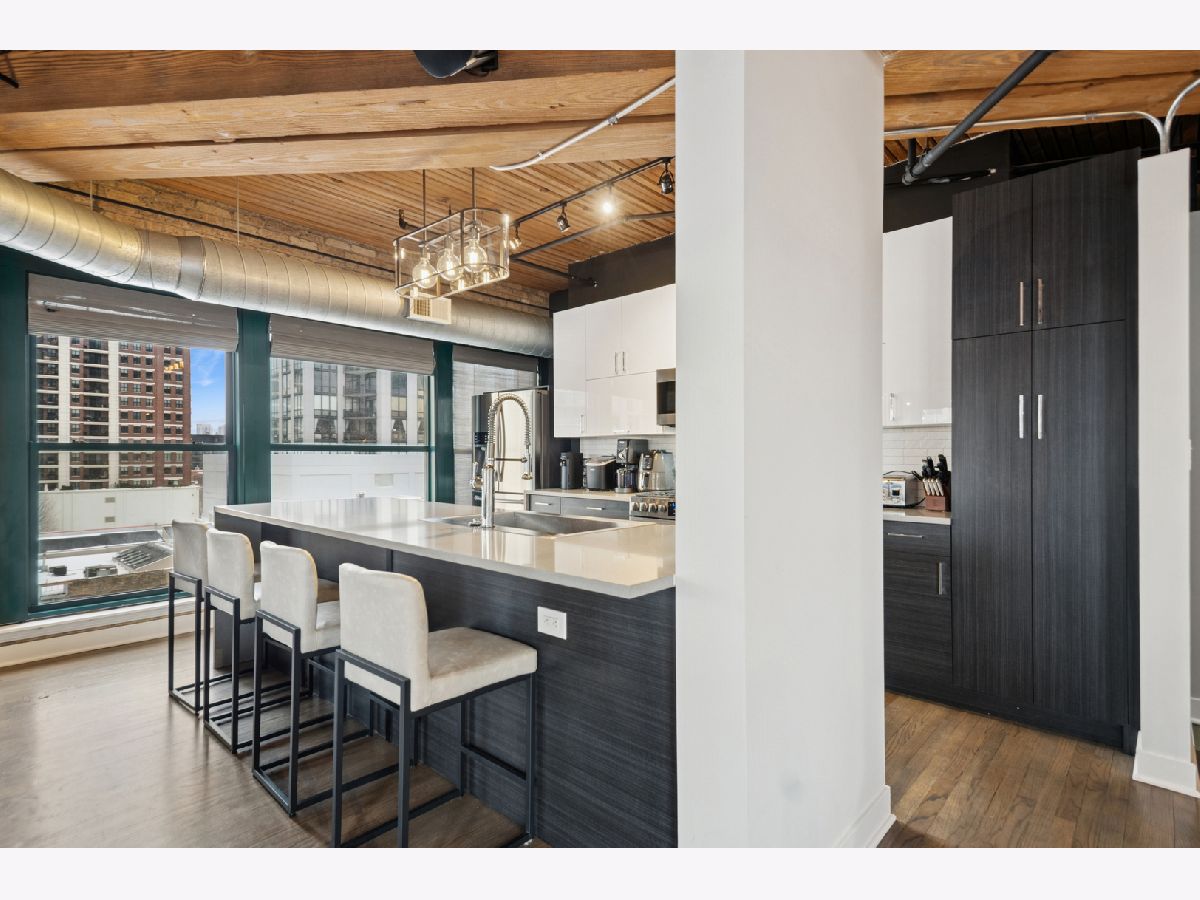 Experience authentic loft living in one of River North's most iconic buildings. This exceptional residence offers a truly stunning and architecturally striking living experience. The expansive open living and dining space fills with natural light from dramatic wall to wall oversized windows , complemented by 10 ft soaring timber ceilings and pillars, exposed brick and a classic wood-burning fireplace with marble surround and finishing, with the room coming to a unique point with dazzling city views in all directions! The beautifully remodeled kitchen features stainless steel appliances and oversized stainless sink, gleaming quartz countertops and a 14 ft breakfast bar, also stunning custom cabinets featuring white gloss uppers and distinctive fluted grey woodgrain lowers. Modern gray stained oak select hardwood floors flow throughout the living space creating a cohesive feel throughout. The thoughtfully designed layout includes two spacious and remodeled baths. The impressive primary suite features electric blinds, a perfectly designed walk-through closet and a luxurious spa-inspired bath with double vanity and oversized walk-in shower. Lastly, a versatile large welcoming foyer- currently styled as a reading nook provides a flexible bonus space and an inviting sense throughout. In unit laundry, abundant storage and closet space also includes indoor heated parking space (no additional tax or assessment on the space) and storage locker. Building amenities include 24-hour door person. on site manager, 7 day a week building maintenance, amazing rooftop deck with 3 BBQ'S for your use, outdoor furniture and professional landscaping in the summer enhanced by spectacular city views, with a very well -equipped gym and separate yoga room, bicycle storage. Pets welcome!