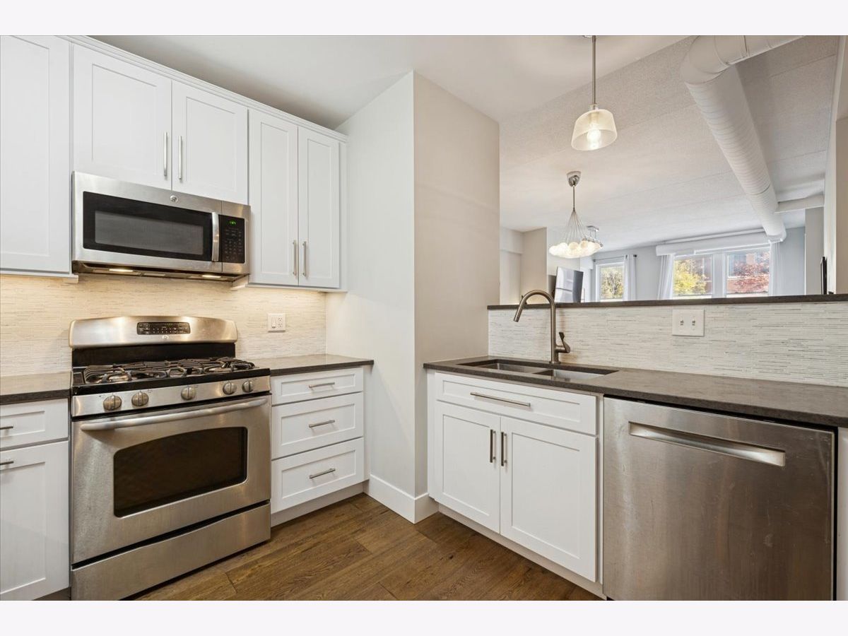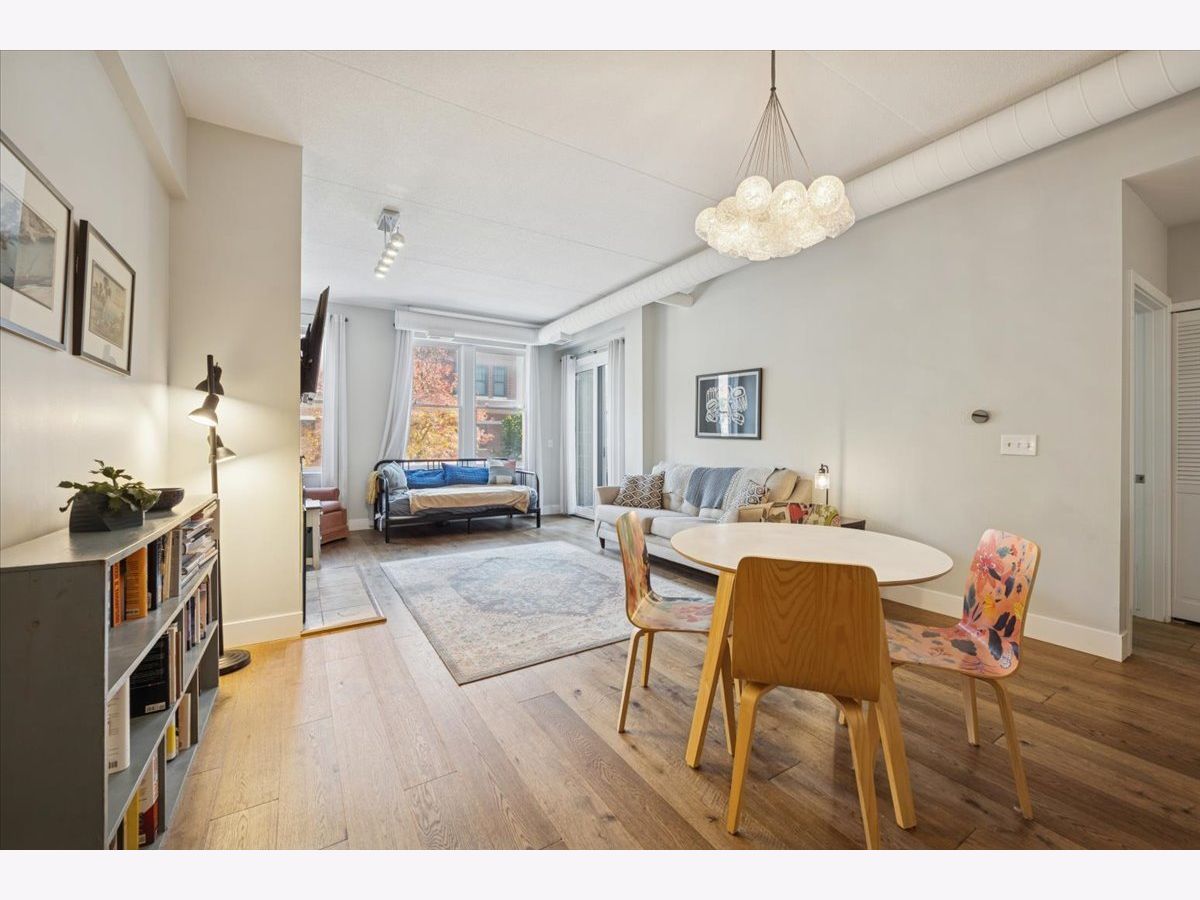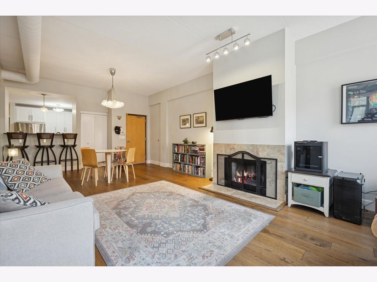 Located in the heart of North Center, this beautiful open-floor-plan 2-bed, 2-bath condo features a large combined living and dining area with a cozy gas fireplace, complemented by an updated kitchen with quartz countertops and stainless appliances. The split-bedroom layout offers generous closet space in each room. The unit includes a private front terrace and a large shared back terrace, along with a heated garage space, which is deeded and included in the price. This boutique elevator building's HOA covers cable/internet and exterior maintenance. Ideally situated near the CTA brown line, Trader Joe's, Jewel-Osco, breweries, and excellent neighborhood dining.
