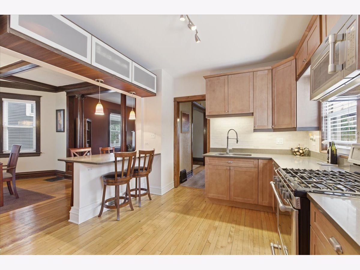 Welcome to this lovely, well-kept Victorian single family home in Old Irving Park! Upon entering, you are met with a charming, serene and updated front porch that includes recessed lighting and is perfect for sitting during the warmer months. The foyer greets you with sightlines to the living room, kitchen and main staircase. This home has tons of character, including ornate wood pillars that separate the living room and dining room. The dining room features wood beams on the ceiling and stained-glass windows. The kitchen, renovated in 2017, includes quartz countertops and a breakfast bar that opens to the dining room. There is also a pantry and powder room on the main level. This home has a very functional layout with 4 good-sized bedrooms and a full bath on the second level. The renovated basement has a second, cozy living space and a full bath. There is a utility room with laundry and plenty of storage. The deck off the kitchen overlooks the backyard, which has a birch tree, trumpet vine along the fence line and blooming flowers in Spring and Summer months. The roof was new in 2019 (full tear-off), Furnace and A/C new in 2022 and HWH new in ~2020. This home is within Belding Elementary school boundaries and the school is only 4 blocks away. Great access to the Blue Line, Metra and 90/94 for easy commuting to the city, O'Hare or suburbs! Many great dining options nearby including Old Irving Brewery, Eris Cider and Brewery, CTA Tacos, Breakfast House, Starbucks, Backlot Coffee...and even more at nearby 6 Corners! Many parks close by including Kolmar Playlot, Mayfair Park, Belding park, and Independence Park (with Farmer's Market).
