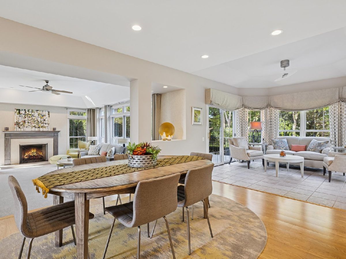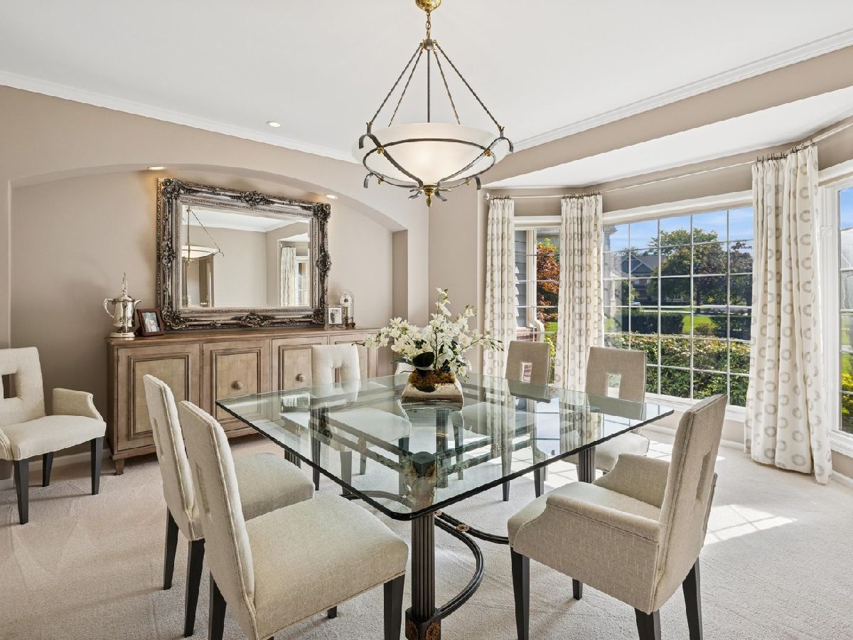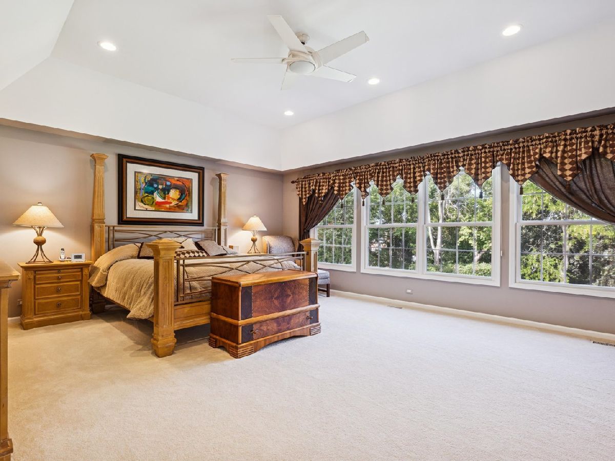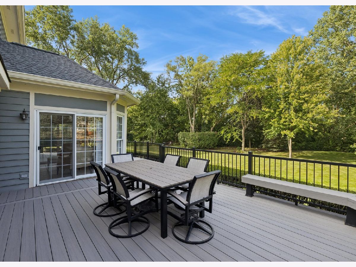 Welcome to this stunning home, on a cul de sac, in the desirable Cherry Creek Subdivision of Prospect Heights. Situated on an expansive lot in a quiet, peaceful setting, this beautifully maintained residence offers 4 + 1 spacious bedrooms, 3.5 baths, and a 3-car garage. Inside, you'll find designer touches throughout including a beautiful formal dining room, elegant living room, and a huge family room with fireplace and windows galore. A bright sunroom/sitting area adds a cozy spot to relax. The huge primary suite features a luxurious spa-like bath that feels like your own private retreat. The home's open and inviting floor plan flows seamlessly to the outdoors, where you'll enjoy a Trex deck overlooking the expansive yard. The finished lower level is a true showstopper-designed with the feel of an Irish pub, it's the perfect space for entertaining. Updates include: Roof 2017, Driveway 2016, Remodel 2017, Washer & Dryer 2024, 400 AMP service, furnace/AC 3 years old. With its blend of comfort, style, and character, this home is truly exceptional.