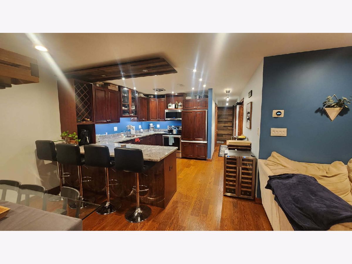 The bright & sunny 6th floor End unit with the largest tier layout in the building, 2 Updated bathrooms and 2 bedrooms, nice open Kitchen, Dining Rm and Living Rm, In Unit Washer/Dryer. You also have laundry on the 1st floor where the storage for unit 601 is. 2 bed/2 bath spacious condo in Old Irving Park! Modern kitchen offers stainless steel appliances, plenty of storage in cherry wood 41"tall cabinets, granite countertops and bar seating area. Open layout with hardwood floors throughout, central AC and updated baths. Move-in ready! Enjoy sunset views on a balcony overlooking beautiful tree lined Keystone ave. Private garage and additional large storage on the main floor. The prime location can't be beat - close to Independence Park, retail and restaurants, 5 mins walk to Blue Line and Metra, easy access to 90/94.