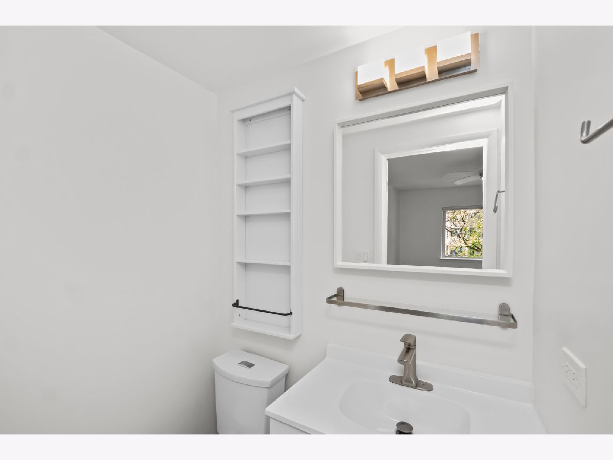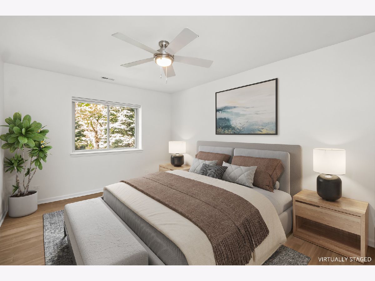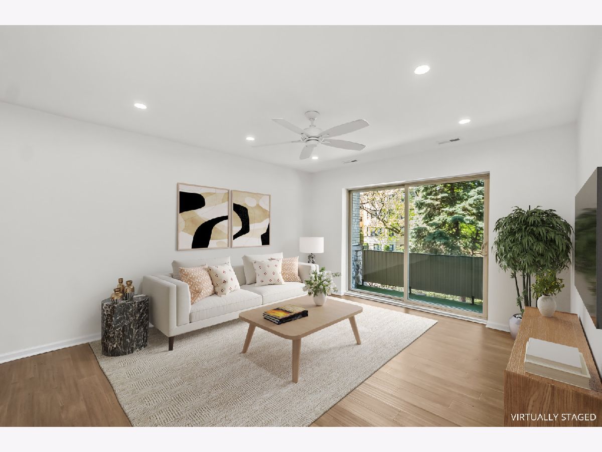 Amazing west facing unit with a peaceful view of the treelined street! Excellent updates have been completed and the entire unit has been freshly painted. The renovated kitchen is complete with quartz counters, stainless steel appliances and an enormous island with storage on both sides! Wood laminate flooring throughout the unit and recessed lighting too. The open living space leads to the balcony to enjoy the summer on! The primary bedroom has 2 closets plus a private half bath. Well thought out and plentiful closet space plus a storage locker on the 1st floor of the building. One garage space is included! Phenomenal location only blocks to the EL, bus stop, expressway and all the conveniences of Old Irving Park.