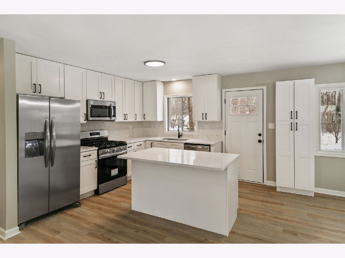 Looking for assistance? This home is IHDAccess Eligible for many buyers! Welcome to this beautifully updated 3-bedroom, 2-bath home on a spacious, nearly half-acre lot in unincorporated Crystal Lake, proudly served by the top-rated Prairie Ridge School District. Completely refreshed with a stunning new kitchen featuring quartz countertops, white shaker cabinets, and stainless steel appliances, plus a newly expanded primary suite with full bath and separate shower. Enjoy all-new luxury vinyl plank flooring, interior paint, fixtures, lighting, and a new electrical panel, along with a new sump pit in the garage for added peace of mind. The walk-out lower level opens to a huge backyard and a spacious family room-perfect for relaxing or entertaining. Just steps from the Fox River and minutes from shopping, dining, and recreation, this move-in-ready gem won't last-view the 3D tour with floor plan and schedule your private showing today!