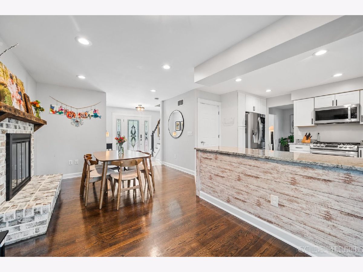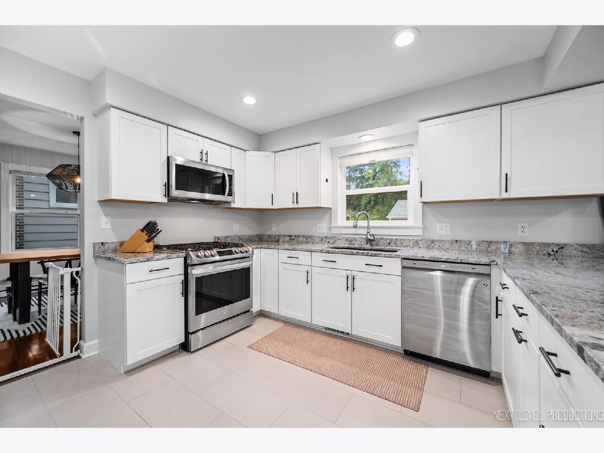 This property consists of a double lot, in one of Geneva's most sought after neighborhoods, steps from the Metra train station, charming shops and fine dining on historic Third Street. Welcoming foyer opens to large living room with wall of windows creating a sun-filled space with hardwood floors that flows into the dining room and stunning kitchen with white shaker soft-close cabinetry, granite, stainless appliances, good workspace and views of the huge yard and mature trees. Kitchen overlooks family room with fireplace (currently used as a breakfast room). Powder room, rounds out the main level. Spacious primary bedroom with amazing office attached and a private bath with dual sinks and walk-in shower. Office attached to the primary bedroom is wonderful flex space for nursery, sitting room or 4th bedroom. Bedrooms 2 and 3 are generously sized with good closet space and share a hall bath. Enormous finished rec room in the basement is a great hang out area when everyone is home. Unfinished section of the basement has tons of storage space. There is also a big detached garage. This is a gorgeous home, on a double lot, that is move-in ready in the heart of beautiful downtown Geneva.