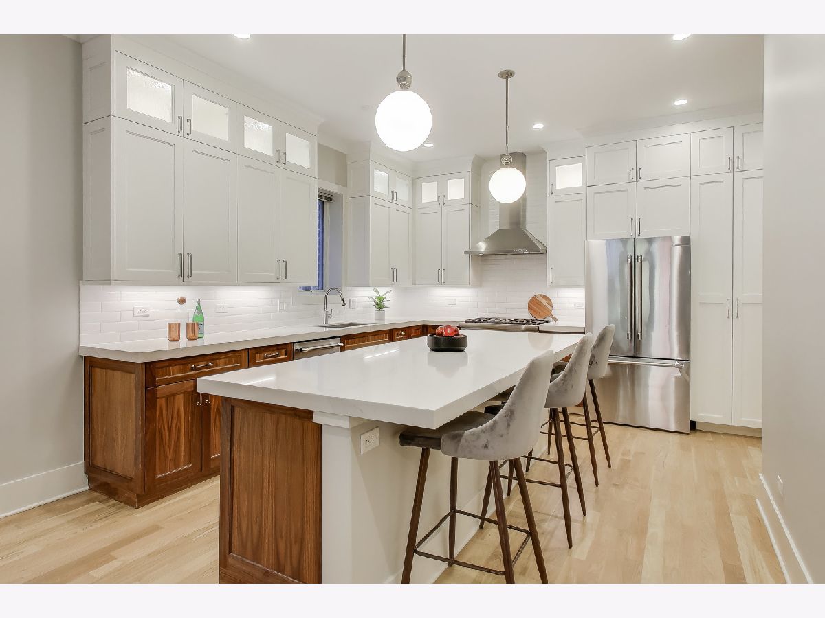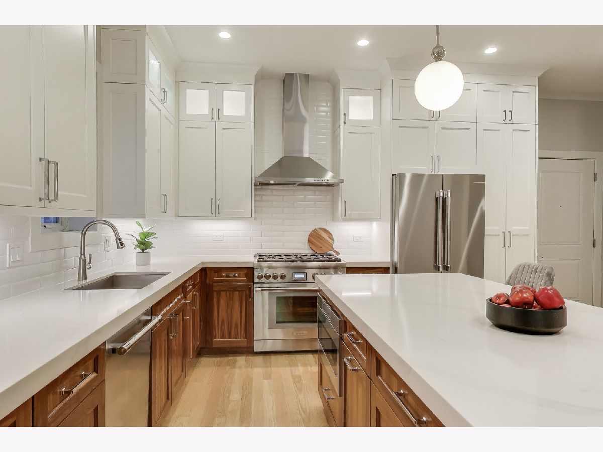Stunning 3 Bed/2.1 Bath duplex-up unit with three private outdoor spaces! The first level features an open floor plan complete with a front terrace off the living room w/ gas fireplace and spacious dining area. The kitchen boasts quartz countertops, sleek two toned cabinets, Thermador/Bosch appliances, a large pantry, and an oversized central island with barstool seating. The second level features 3 large bedrooms, two full bathrooms, laundry, and lots of storage. The spacious primary suite includes a walk-in closet and dual vanity bathroom. A private roof deck adds additional outdoor space to this unit. Garage parking space included. Located on tree-lined Kenmore, this unit is blocks from the Sheridan Red Line, neighborhood dining & shopping, Buena Circle Park and multiple schools.