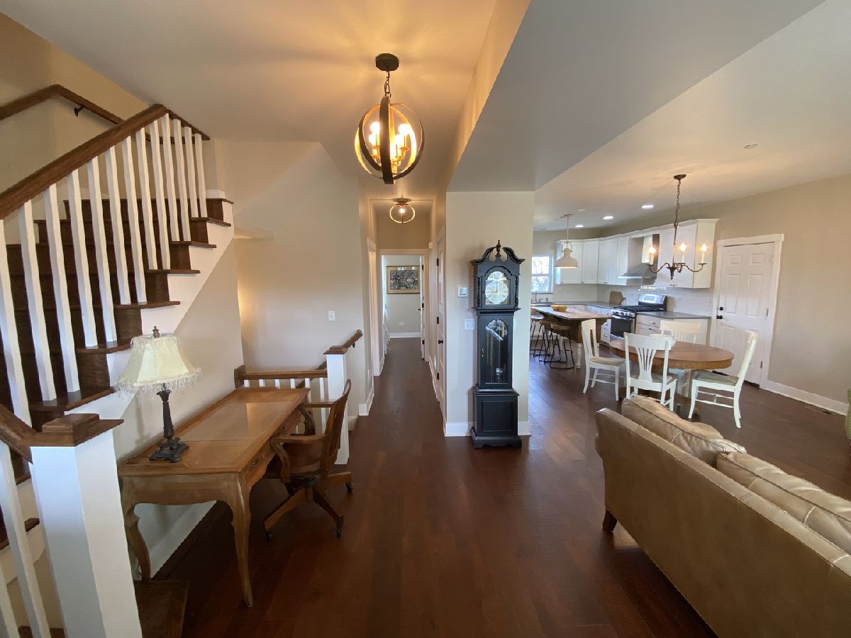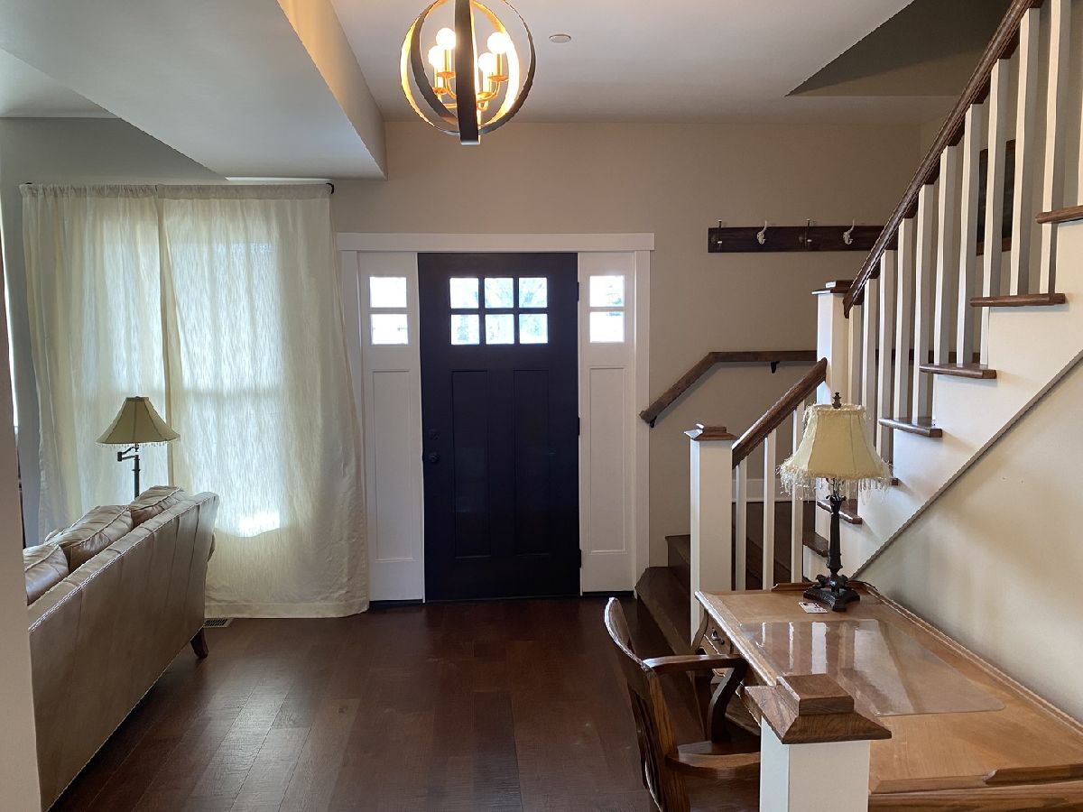 New custom build in 2017 is move in ready! Excellent location in quiet established neighborhood yet easy access to interstate and everything you need that Gurnee has to offer! Home features open kitchen, dining and living area with cozy nook space, high ceilings, hardwoods throughout both levels, first floor bedroom and full bath, upstairs has two bedrooms and spacious full bath with separate shower, also a bonus room that could be a 4th bedroom/office, currently used as an art room. Full basement waiting for your finishing touches, oversized attached garage, inviting front porch to relax on those summer evenings or on your brick paver patio in back. Everything still newer in this one and no HOA.