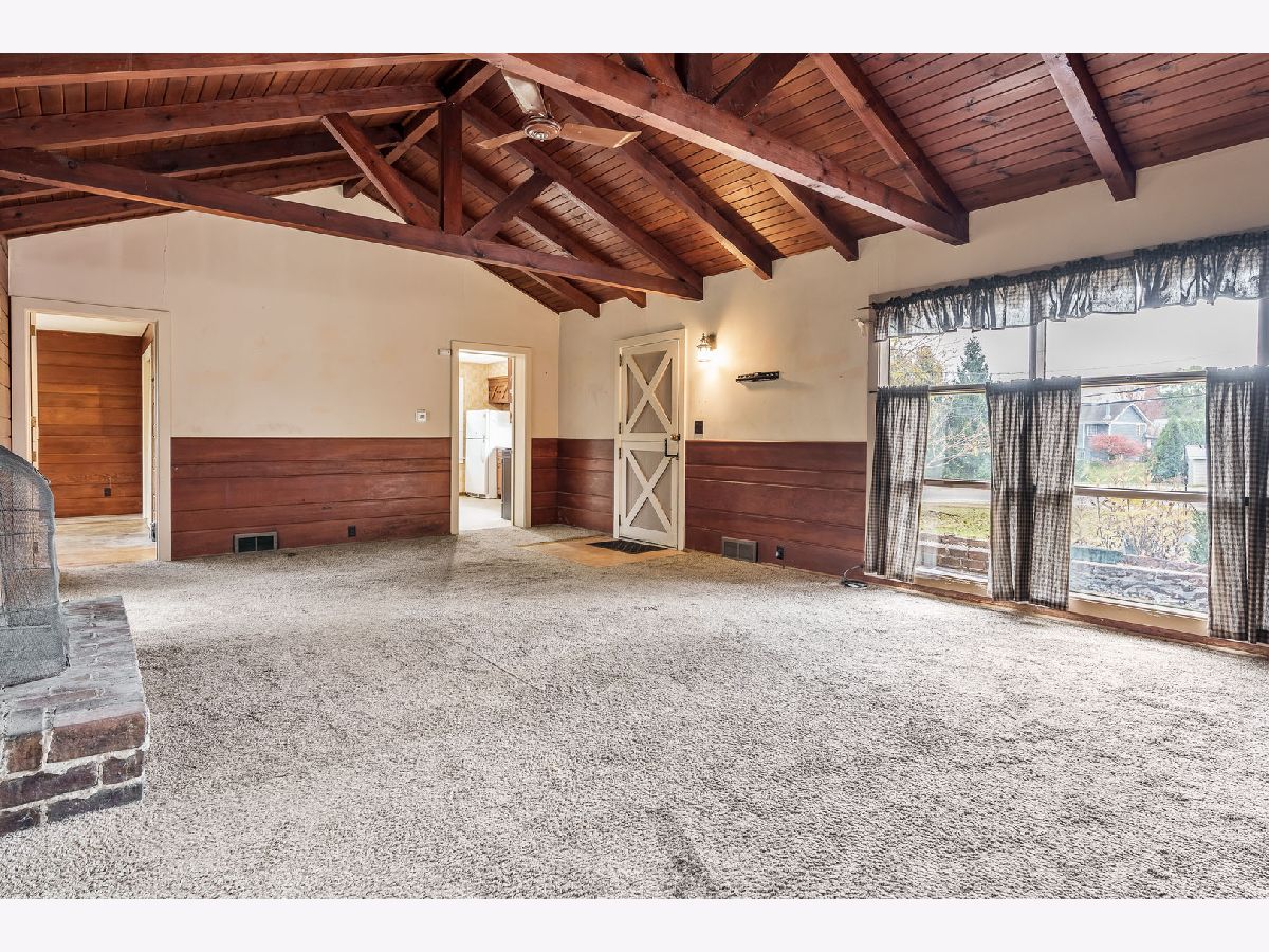 This quaint and inviting ranch home is full of character and thoughtful updates throughout. Step inside to a spacious living room featuring vaulted ceilings with exposed wood beams and wood accents overhead, creating a warm, rustic feel. A beautiful stone fireplace serves as the centerpiece, while pony doors add a unique touch of charm and personality. The layout flows nicely to the backyard, with double doors leading to a fenced-in yard-perfect for relaxing or entertaining. Enjoy peace of mind with major updates already done for you, including a new roof (2024), new siding (2019), updated electrical (2019-2020), new furnace (2020), new AC (2019), new water heater (2020), new well pump (2021), and new leaf guards. The kitchen features a new stove, and the bathroom has been refreshed with a new vanity and toilet (2020). A newer fence and water softener (2018) add to the home's appeal and functionality. Located in the highly desirable Rockton School District, this home is just a short walk to downtown Rockton, where you can enjoy local shops, restaurants, and community events. If you're looking for a home that blends vintage charm with modern updates in an unbeatable location, this one is a must-see!