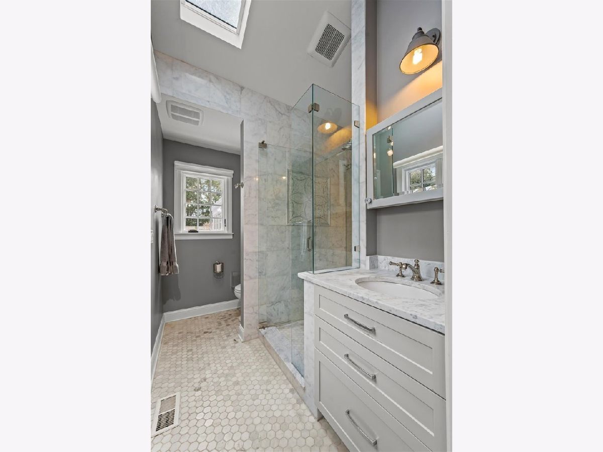 Lovely, stylish Lannon stone home on a quiet cul de sac in Mckenzie! Comprehensively renovated in '14 this property, combines ease of living with surprising luxury features, including his and her bathroom split and downstairs kitchen. The open floor plan includes a generous, sunny, living room with wood burning fireplace adjacent to the dining room with built-in marble, multi use service bar. Opening to the kitchen and dining room, the family room, with view of the back garden, features a Jotul stove which creates a cozy atmosphere for games, media or just a respite from your busy day. The kitchen, which has been upgraded to perfection, has beautiful light cabinetry, upscale stainless steel appliances and marble countertops. In addition there is a built-in pantry and beautiful hardwood floors! The primary suite offers a comfortable bedroom and gorgeous spa-like, white and marble, his and her split bathroom with soaring ceiling height and skylights and large easily accessible closet space. Two other family bedrooms on this level are a comfortable size with generous closets and built-in bookcases. Awaiting below is a wonderful full size, high ceilinged and fully renovated lower level, which has a large family rec room with fireplace and adjoining play room for entertaining or relaxation. The large white and marble kitchen expands the possibility of usage for this amazing space. In addition there is also a generous bedroom and full bath, and an office. The triangle shaped lot creates a wide welcoming outdoor garden that is private and serene. With plenty of space for kids play area and comfortable patio for lounging and entertaining.