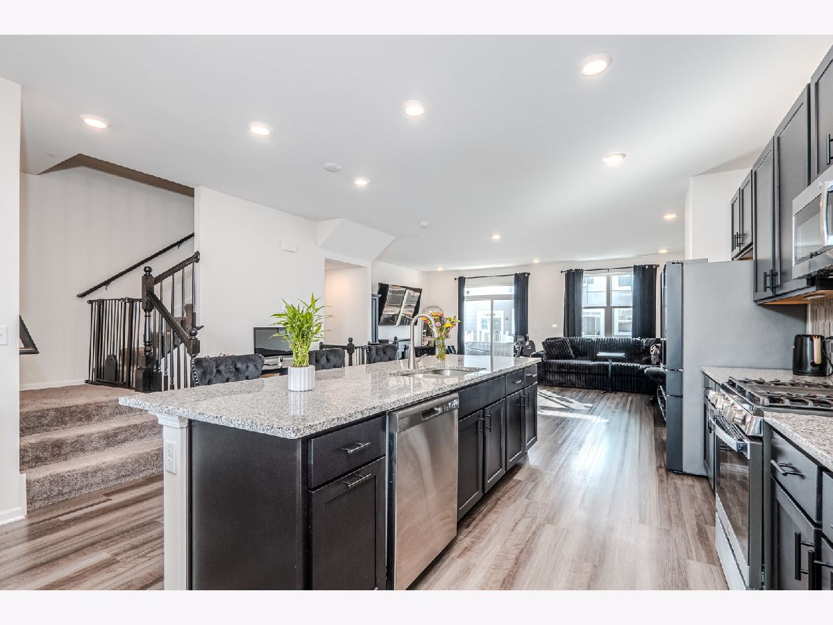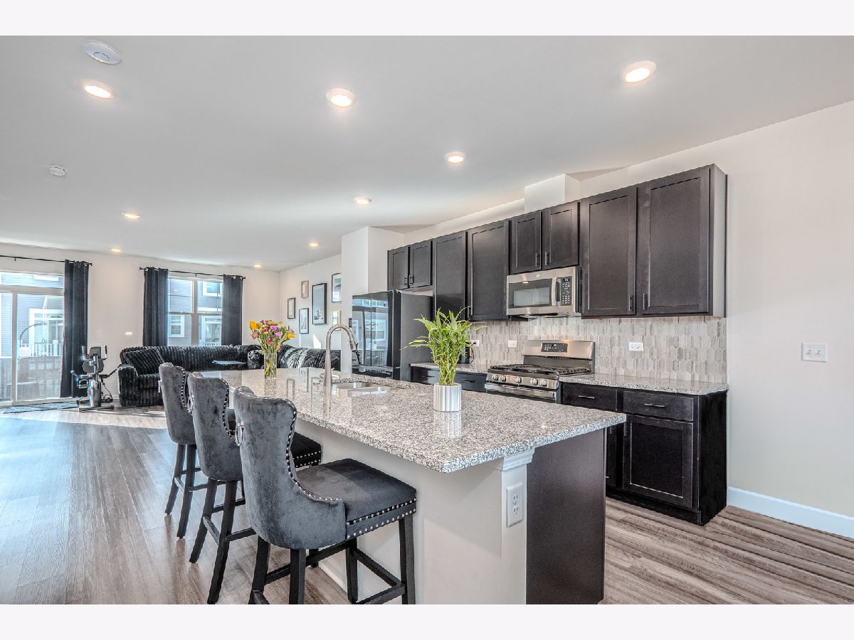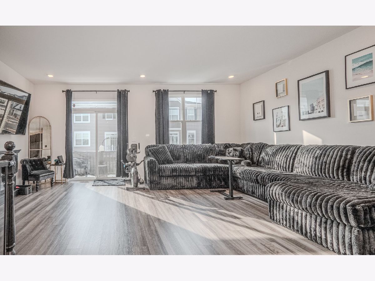 Welcome to this exceptional three-story townhome in the desirable Chelsea Manor subdivision of Aurora, located within the highly acclaimed Naperville School District. This beautifully designed residence offers 3 bedrooms, 2.5 bathrooms, and a 2-car attached garage, combining luxury finishes with a functional, open-concept layout ideal for today's lifestyle. The ground level welcomes you with a spacious foyer and a bright, versatile flex room perfect for a home office, playroom, fitness space, or additional family room, along with convenient access to the attached garage. The main living level features an open floor plan filled with natural light, enhanced by neutral wood laminate flooring , and elegant design details throughout. The gourmet kitchen serves as the heart of the home, showcasing striking granite countertops, an elongated island with seating overhang, stainless steel appliances including an upgraded Samsung Bespoke Refrigerator w/ Smart technology, dual sink with SS pull-down faucet, Attractive Matte black cabinetry and hardware, a stylish tile backsplash, and an expansive walk-in pantry. The kitchen flows seamlessly into the spacious dining area and light-filled family room, where large windows and sliding glass doors lead to a private balcony-perfect for grilling or relaxing outdoors. A conveniently located powder room completes this level. Upstairs, the top floor offers a thoughtfully designed layout with three generously sized bedrooms and two full bathrooms. The luxurious primary suite features a large window providing tons of natural light, oversized walk-in closet, and a spa-like en-suite bath with dual sinks, sleek cabinetry, and a beautifully tiled walk-in shower. Two additional bedrooms offer ample closet space and share a well-appointed full bath. A loft area provides additional flexibility for a second office or study nook, and the upper-level laundry room with LG Washer/Dryer w/ Steam technology , is conveniently tucked away with added storage. Attached 2 car Garage. Enjoy fast internet connection as AT&T has run Fiber to these townhomes. Ideally situated near shopping, Costco, dining, and major expressways, this home offers both comfort and convenience in a thriving community. Must see...