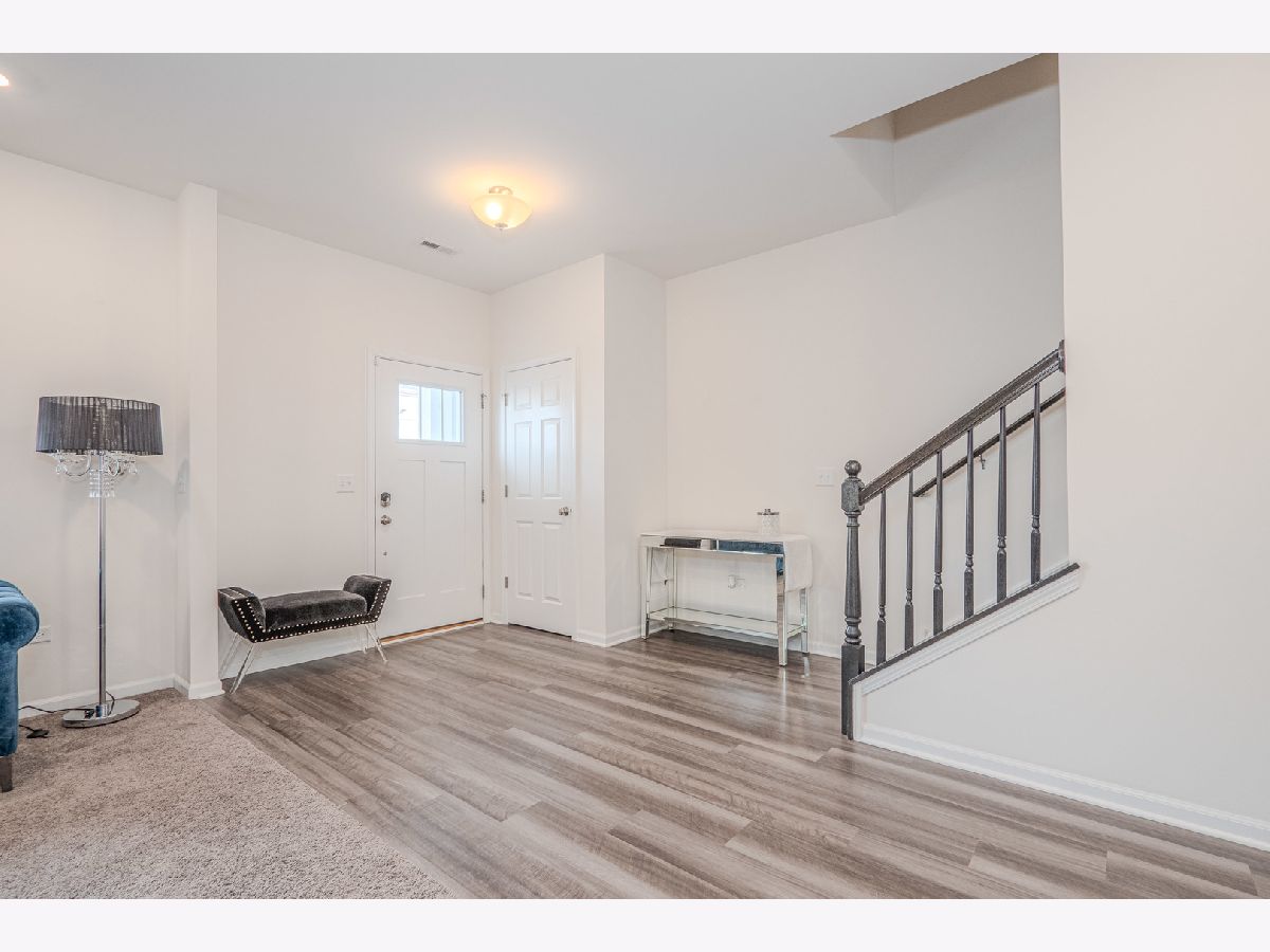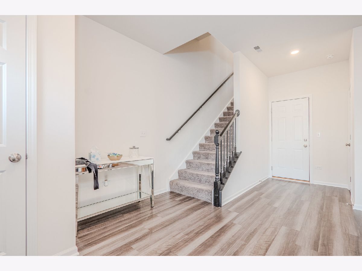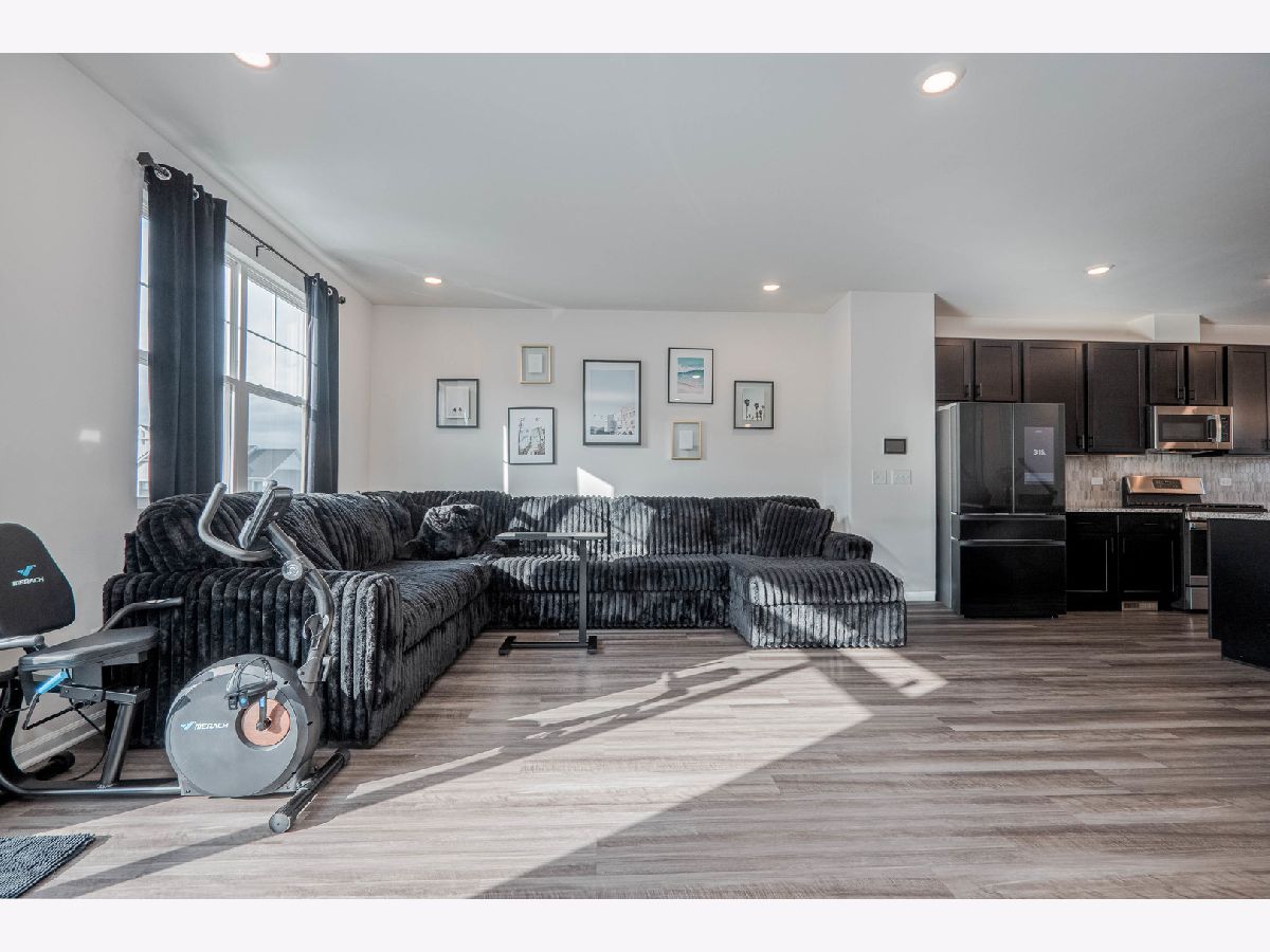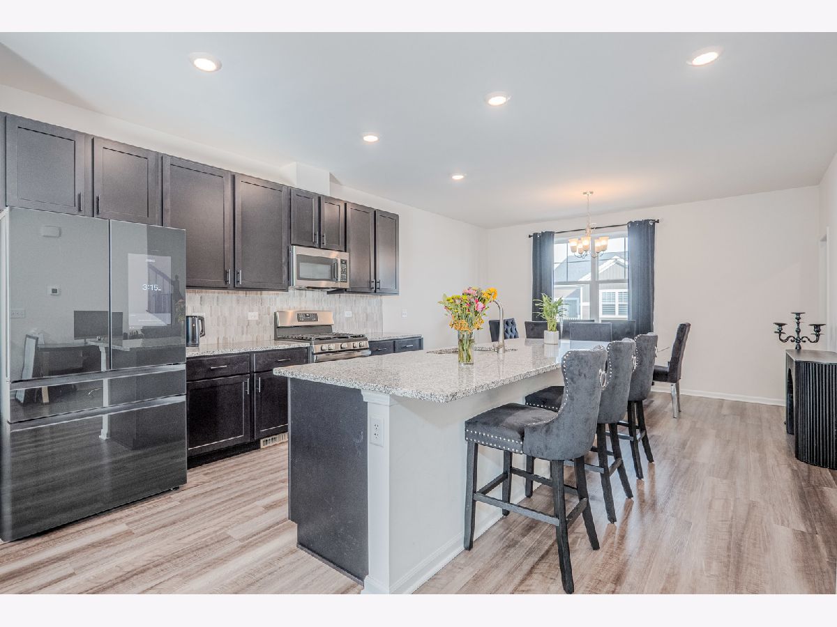 Welcome to this exceptional three-story townhome in the desirable Chelsea Manor subdivision of Aurora, located within the highly acclaimed Naperville School District. This beautifully designed residence offers 3 bedrooms, 2.5 bathrooms, and a 2-car attached garage, combining luxury finishes with a functional, open-concept layout ideal for today's lifestyle. The ground level welcomes you with a spacious foyer and a bright, versatile flex room perfect for a home office, playroom, fitness space, or additional family room, along with convenient access to the attached garage. The main living level features an open floor plan filled with natural light, enhanced by neutral wood laminate flooring , and elegant design details throughout. The gourmet kitchen serves as the heart of the home, showcasing striking granite countertops, an elongated island with seating overhang, stainless steel appliances including an upgraded Samsung Bespoke Refrigerator w/ Smart technology, dual sink with SS pull-down faucet, Attractive Matte black cabinetry and hardware, a stylish tile backsplash, and an expansive walk-in pantry. The kitchen flows seamlessly into the spacious dining area and light-filled family room, where large windows and sliding glass doors lead to a private balcony-perfect for grilling or relaxing outdoors. A conveniently located powder room completes this level. Upstairs, the top floor offers a thoughtfully designed layout with three generously sized bedrooms and two full bathrooms. The luxurious primary suite features a large window providing tons of natural light, oversized walk-in closet, and a spa-like en-suite bath with dual sinks, sleek cabinetry, and a beautifully tiled walk-in shower. Two additional bedrooms offer ample closet space and share a well-appointed full bath. A loft area provides additional flexibility for a second office or study nook, and the upper-level laundry room with LG Washer/Dryer w/ Steam technology , is conveniently tucked away with added storage. Attached 2 car Garage. Enjoy fast internet connection as AT&T has run Fiber to these townhomes. Ideally situated near shopping, Costco, dining, and major expressways, this home offers both comfort and convenience in a thriving community. Must see...