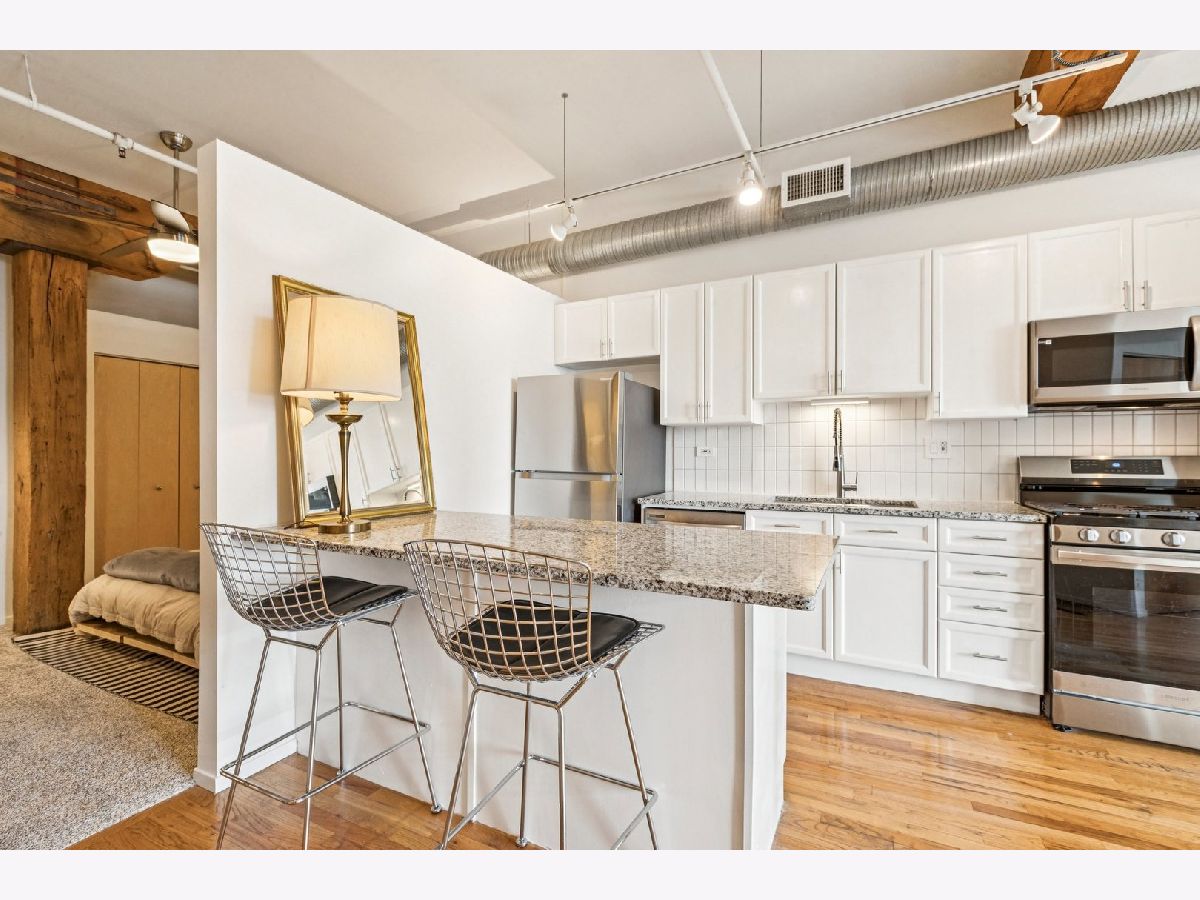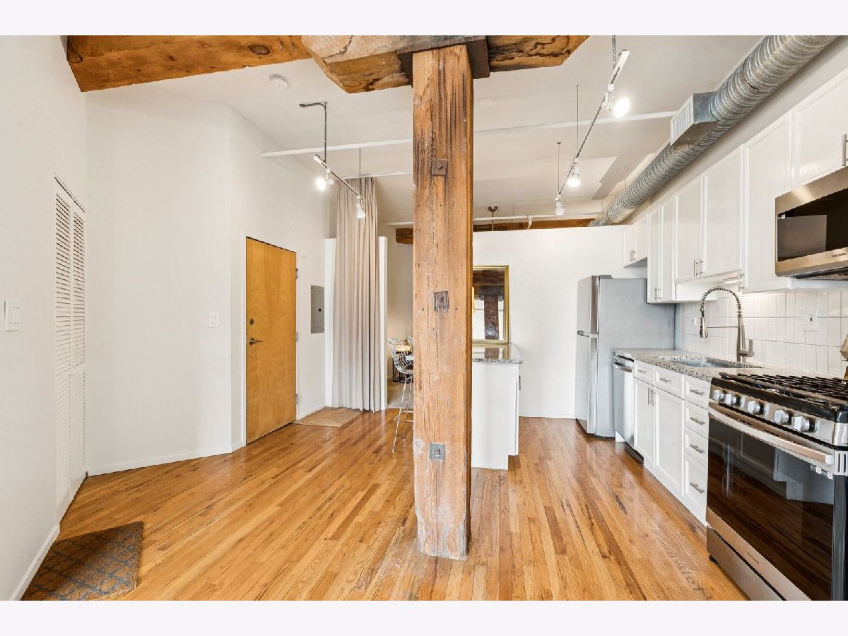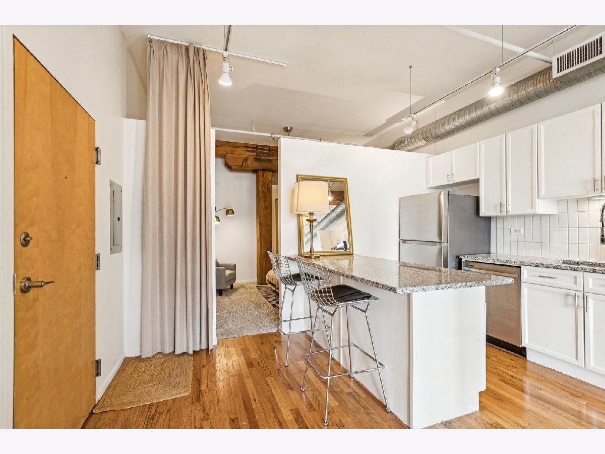 Move right into this beautifully refreshed 2-bedroom, 1-bathroom condo in the 417 S Jefferson building in Chicago's sought-after West Loop. Offering a smart layout with generous living space, a fireplace, a private balcony, and a versatile second bedroom perfect for guests or a home office, this home combines comfort and convenience in an unbeatable location. The updated kitchen shines with new granite countertops, tile backsplash, a deep sink, and newer stainless-steel appliances, while the bathroom and bedrooms have also been thoughtfully improved. With recent upgrades this home is packed with value, including a new washer/dryer, new bedroom carpeting with upgraded padding, updated lighting and smart outlets, fresh paint throughout, repainted cabinetry, new window coverings, a smart thermostat, and updated bath fixtures. The building also offers excellent amenities and recent capital improvements, including an updated fitness room, a new butterfly entry system, completed roofing, and completed tuckpointing. Includes a designated storage locker and an outdoor parking space.