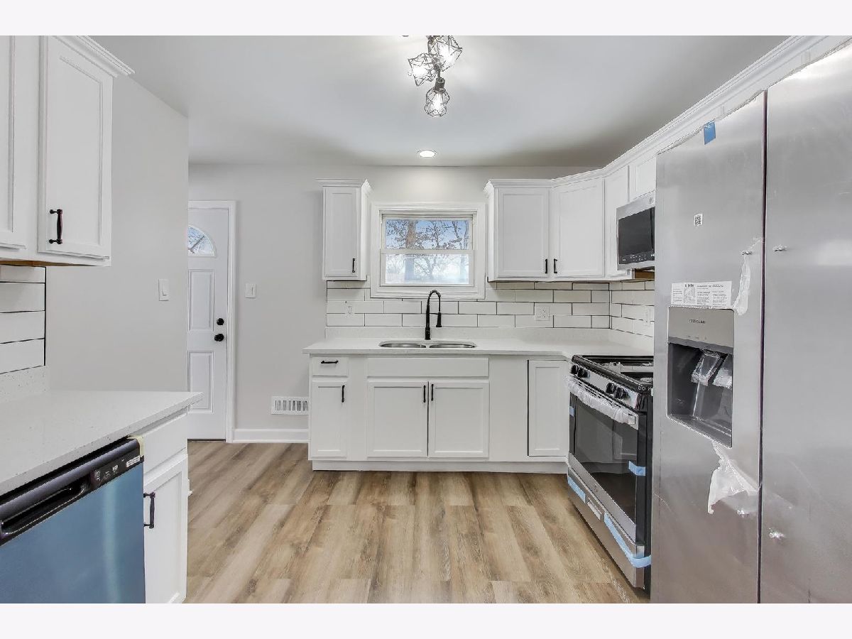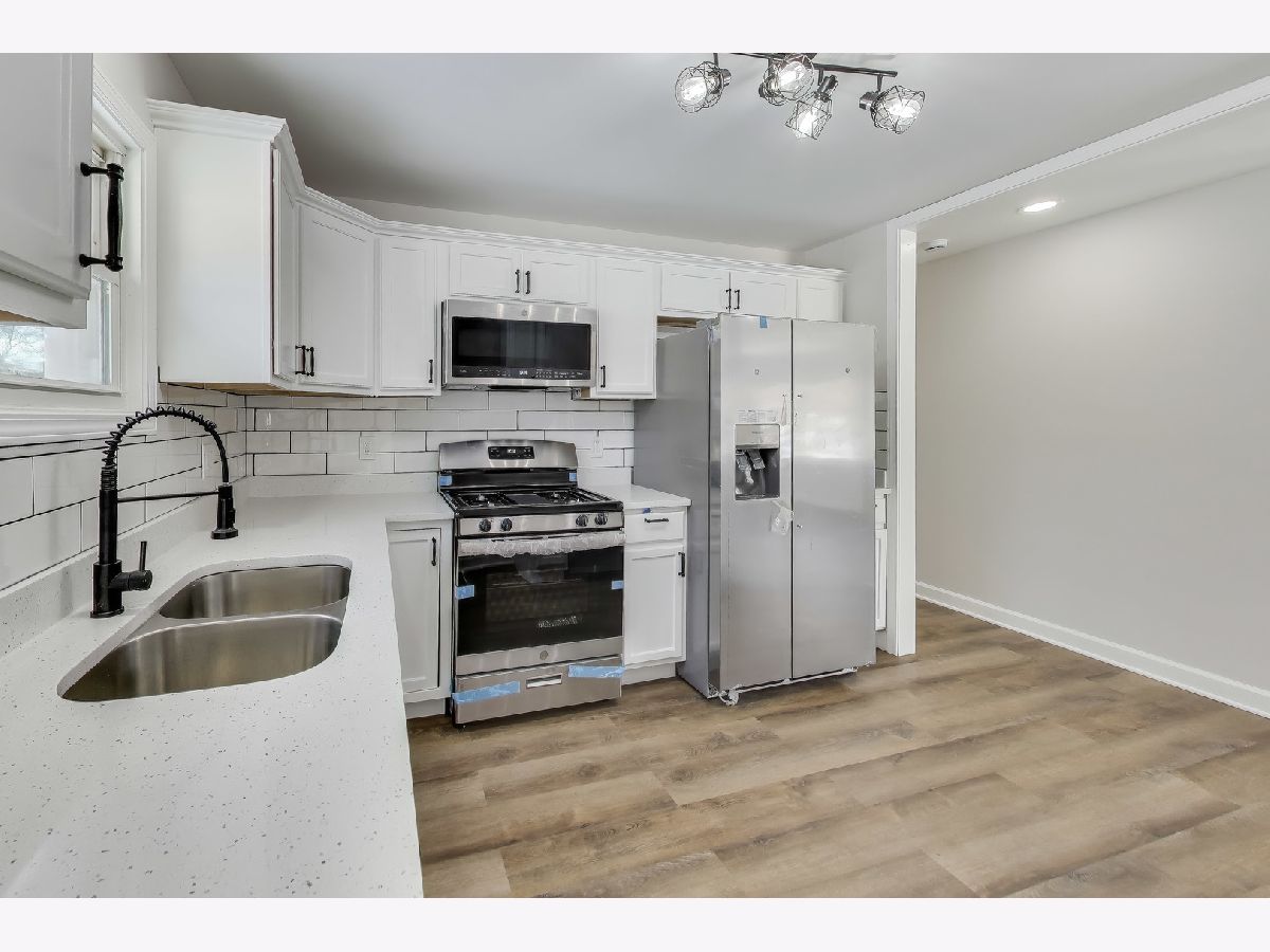 Newly renovated 4-bedroom, 2-bath home offering modern updates and versatile living space with nicely sized bedrooms throughout. The main level features new luxury vinyl flooring, quartz countertops, stainless steel appliances, and fresh, contemporary finishes. The finished basement adds exceptional value, featuring a private bedroom, full bath, and a cozy fireplace-perfect for related living, guest space, or an inviting secondary living area. A detached 2-car garage provides convenient parking and additional storage. Move-in ready with a functional floor plan and thoughtful upgrades throughout.
