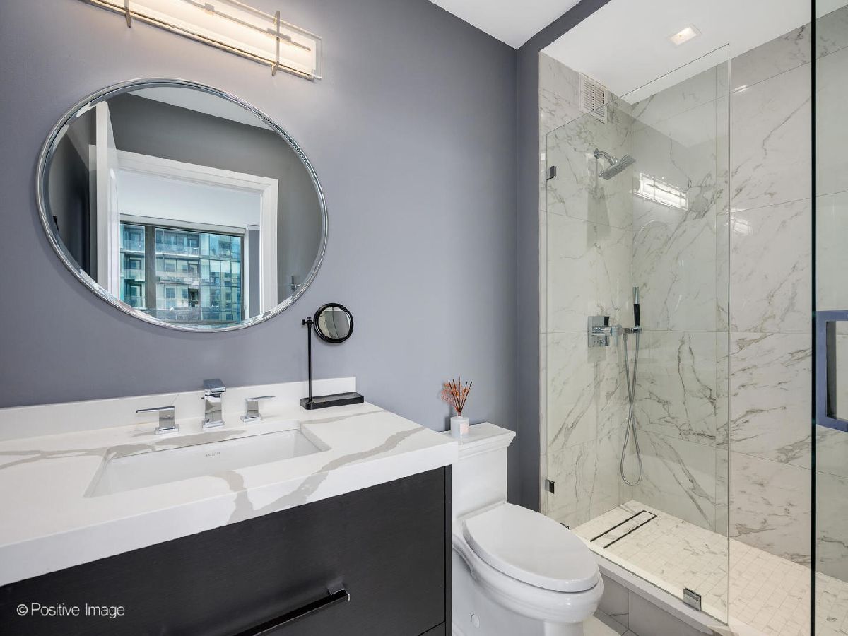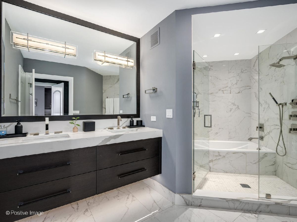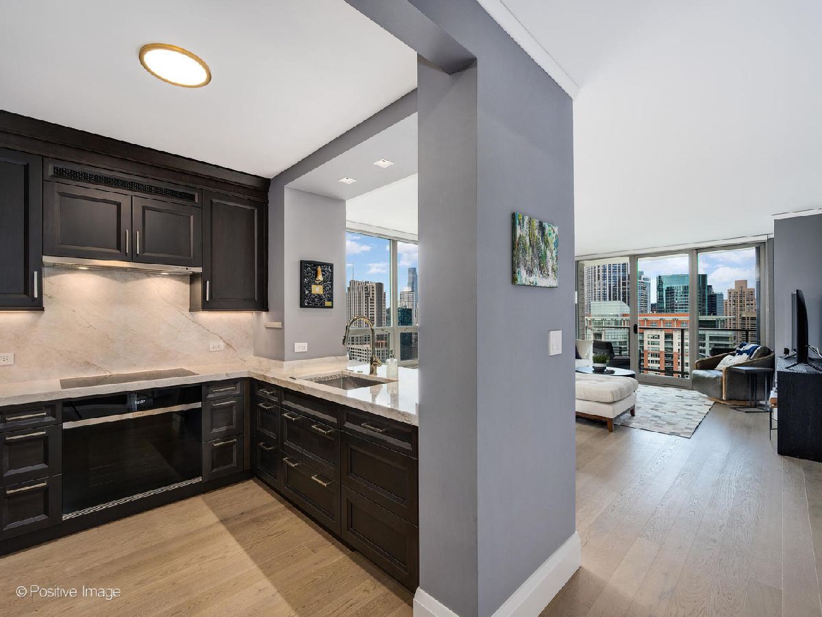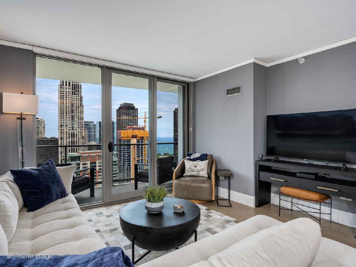 Luxury Living with Unmatched Views in the Iconic Regatta Condominiums. Experience refined city living, complete privacy, and breathtaking panoramic views of the lakefront, skyline, and Navy Pier from this masterfully customized 2-bedroom, 2.5-bathroom residence in the highly coveted Regatta. Every detail of this extraordinary home has been curated with sophistication and craftsmanship, offering a rare blend of elegance, function, and location. Upon entry, you're welcomed by a dramatic gallery foyer with upgraded designer lighting and rich wide-plank white oak flooring that flows seamlessly throughout the home. The expansive living and dining area is wrapped in North, East, and West exposures, delivering stunning natural light, iconic views, soaring ceilings, and direct access to a private balcony-perfect for entertaining or quiet reflection. The state-of-the-art chef's kitchen is a true showpiece, featuring top-tier appliances including a Wolf built-in oven, induction cooktop, and microwave, Sub-Zero refrigerator/freezer, ultra-quiet Bosch dishwasher, and a Kallista designer faucet. Custom cabinetry, sleek under-cabinet LED lighting, and striking 2-inch Bianca Perla quartzite countertops with full-height backsplash complete this exceptional culinary space. The grand primary suite is a serene retreat with a walk-in closet and a spa-inspired en-suite bath featuring Calacatta quartz countertops, double Kallista sinks, a Kohler soaking tub, and exquisite Italian-imported Calacatta tile on both floor and walls. Floating custom cabinetry with integrated LED lighting elevates the luxury experience. Additional features include a sophisticated powder room, high-end finishes throughout, and thoughtful custom storage solutions. Set within one of the city's most desirable lakefront residences, Regatta Condominiums offers full-service amenities including 24-hour door staff, indoor and outdoor pool, fitness center, sun deck, party room, and valet service. All situated in a peaceful enclave along the Riverwalk with a 4-acre park, Mariano's, and fine dining at your doorstep-just moments from Michigan Avenue, Navy Pier, and Lake Michigan. Parking spaces available for $45,000.